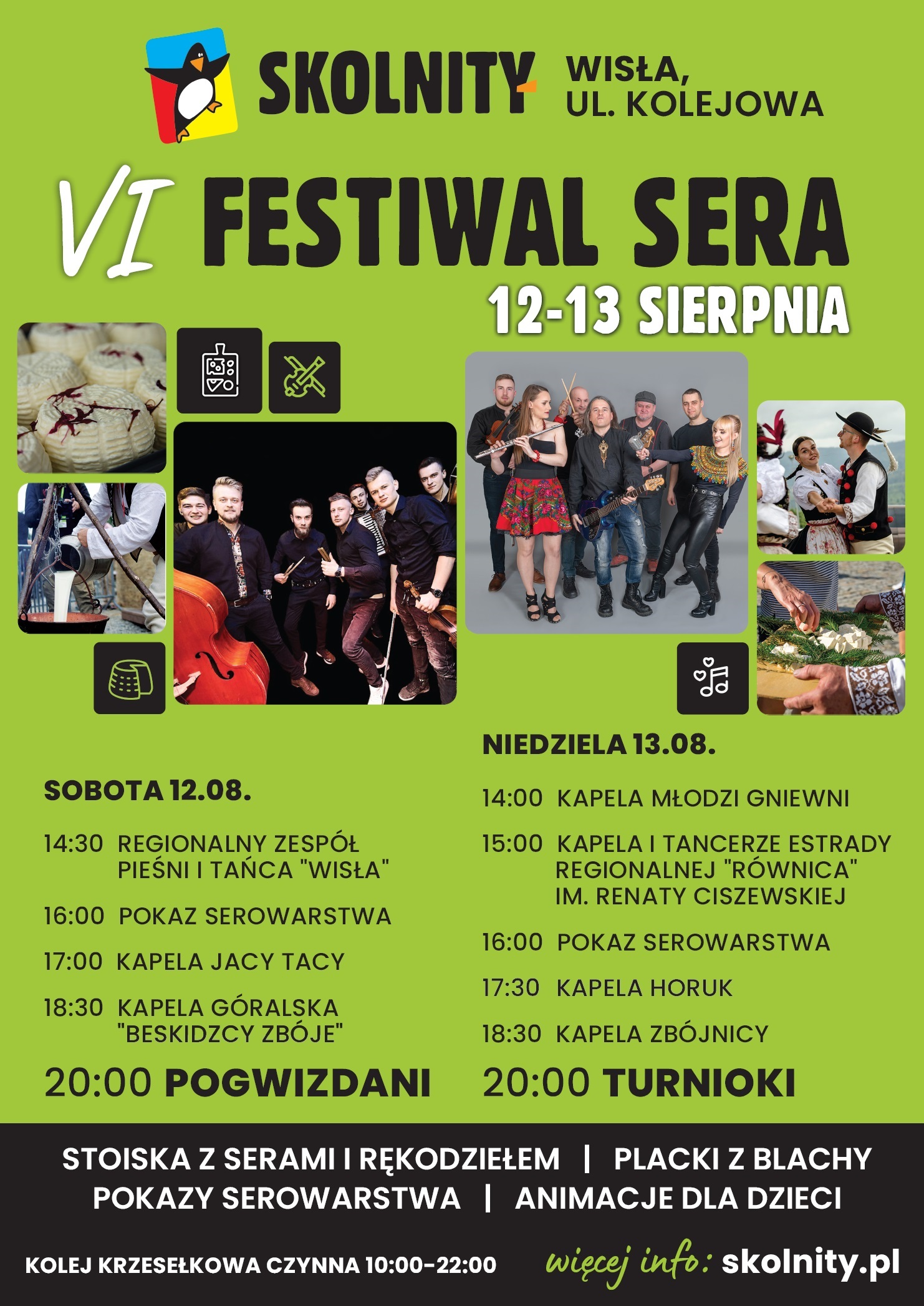 Na Skolnitym odbędzie się najsmakowitsza impreza sezonu. 12 i 13 sierpnia na górnej stacji kolei linowej Skolnity Ski & Bike Park zagości Festiwal Sera. Na jego szóstą edycję są zaproszeni wszyscy spragnieni kulinarnych i kulturalnych wrażeń. Na górę można się dostać na piechotę, rowerem czy też (czynnym od 10.00 do 22.00) wygodnym czteroosobowym wyciągiem kanapowym z samego centrum Wisły (naprzeciw targowiska obok kompleksu Skoczni Narciarskich Centrum). Co ważne, darmowy komfortowy parking mieści się bezpośrednio przy dolnej stacji kolei – wzdłuż kas i nad nimi.
