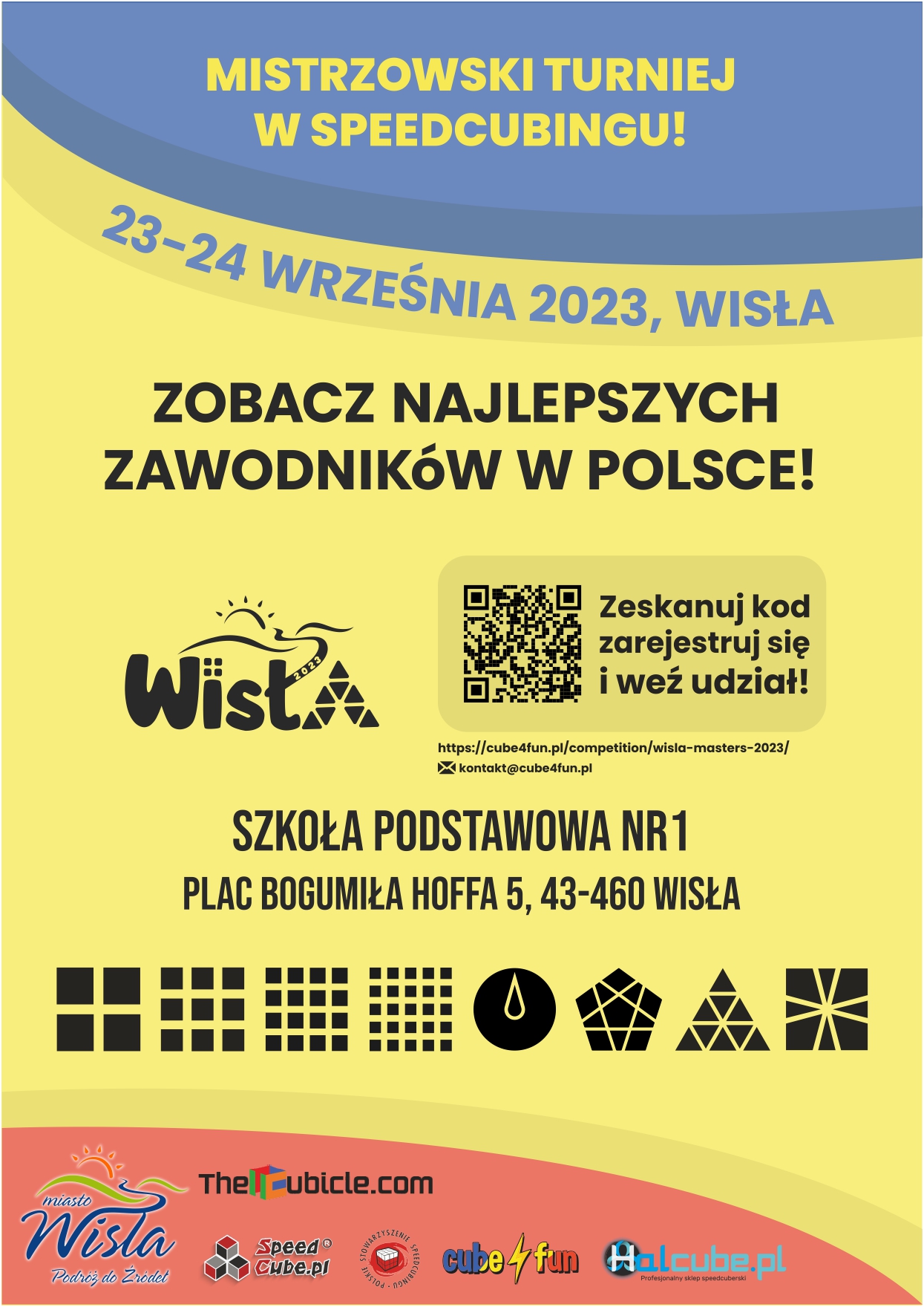 Szczegółowe informacje na temat zawodów, regulamin oraz zapisy można znaleźć na oficjalnej stronie wydarzenia: https://cube4fun.pl/competition/wisla-masters-2023