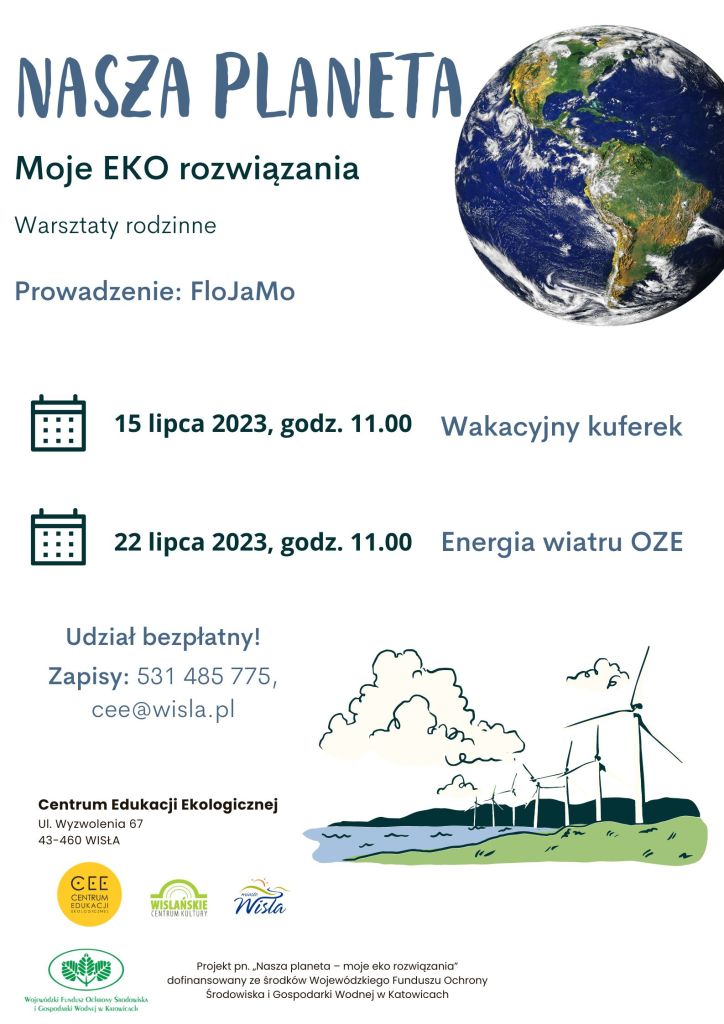 Udział we wszystkich warsztatach jest bezpłatny, jednak obowiązują zapisy: 531 485 775, cee@wisla.pl.