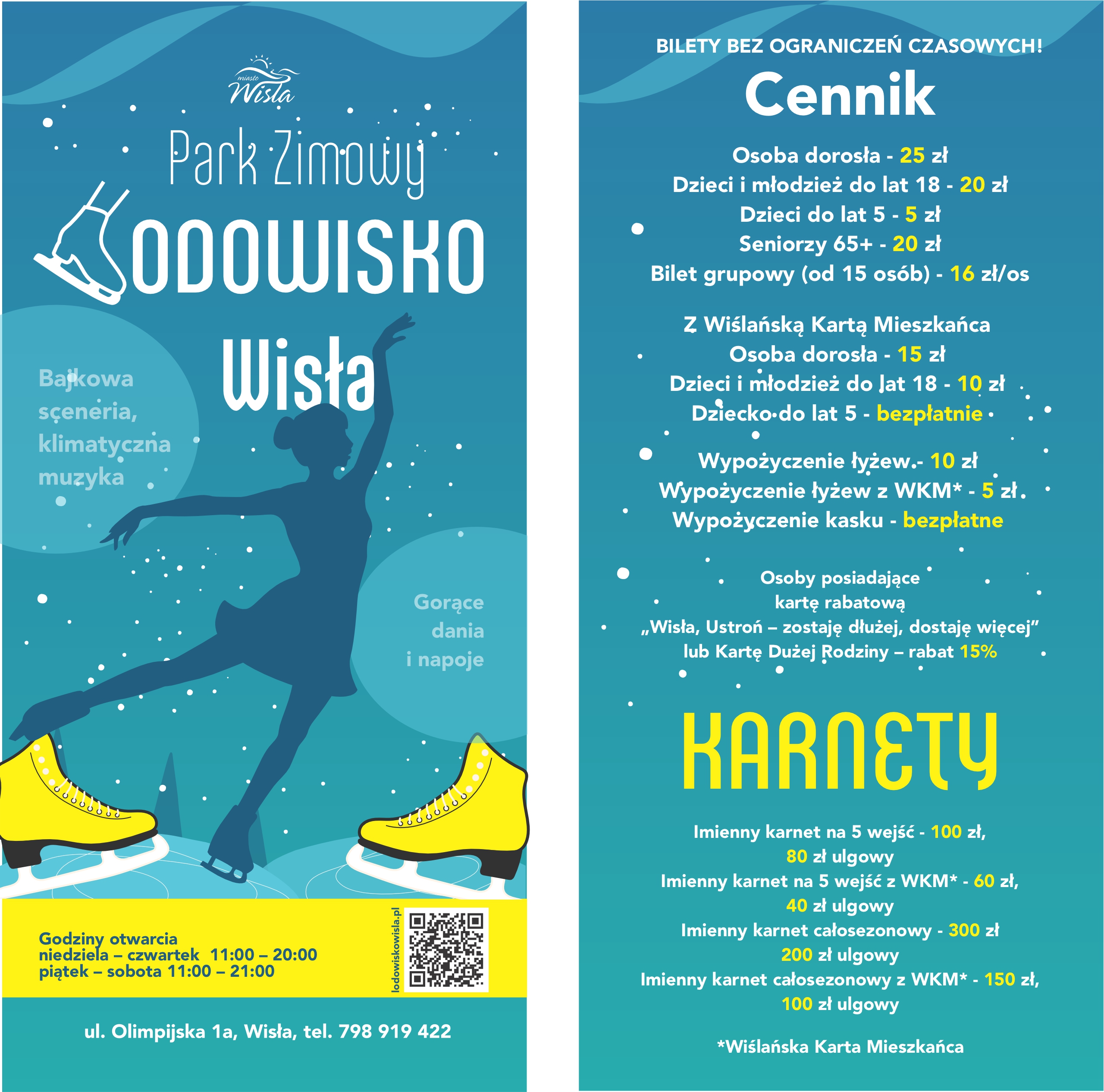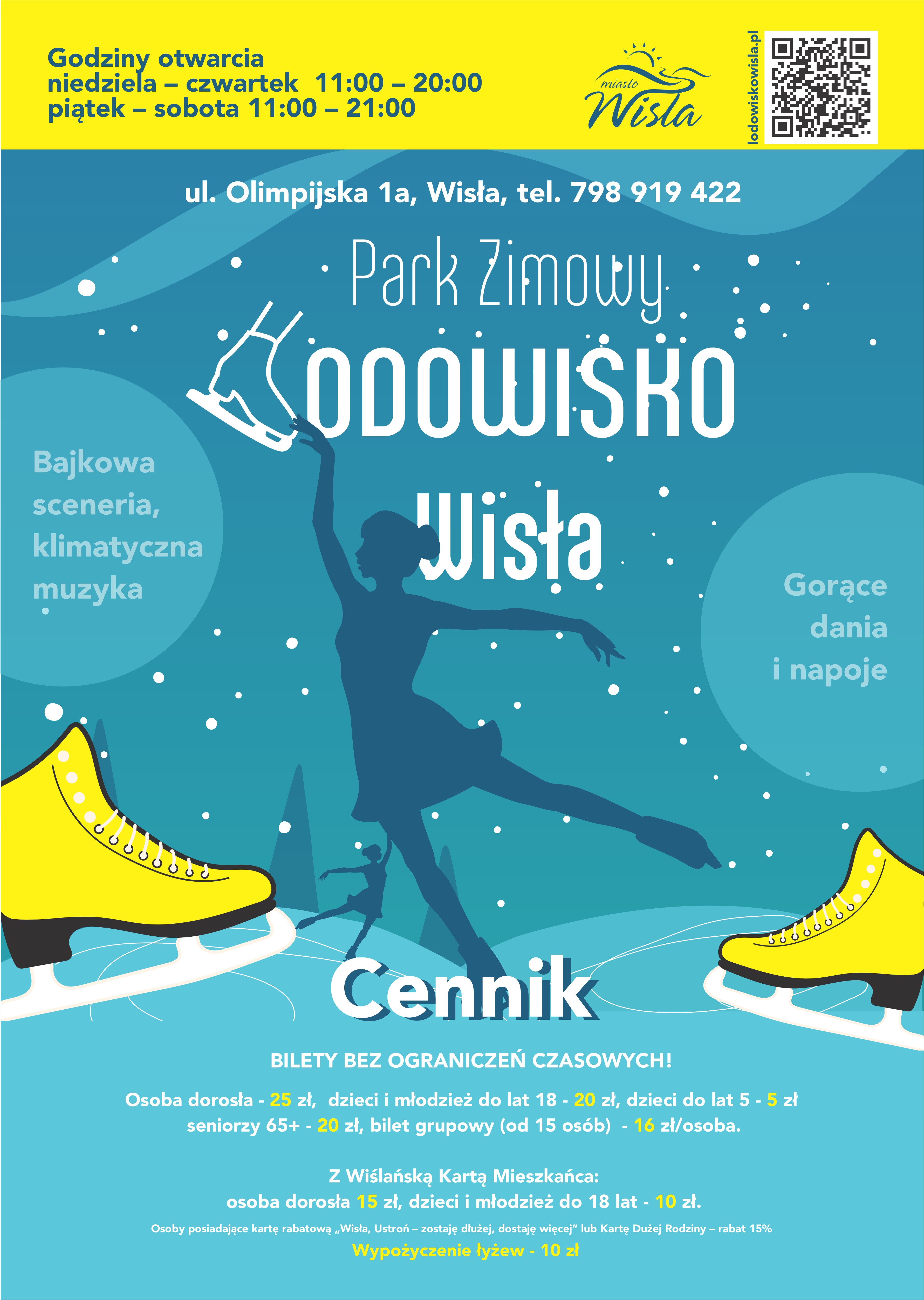 Lodowisko czynne będzie codziennie (od niedzieli do czwartku w godzinach 11:00-20:00, a w piątki i soboty 11:00-21:00). Koszt biletu normalnego to 25 zł, ulgowy dla dzieci, młodzieży i seniorów to 20 zł. Znacznie taniej mają wiślanie posiadający kartę mieszkańca. Nabyć można także specjalne karnety całosezonowe oraz karnety na 5 wejść. Co ważne, na lodowisku w Wiśle bilet nie ma żadnych ograniczeń czasowych. Pełny cennik znajduje się na www.lodowiskowisla.pl