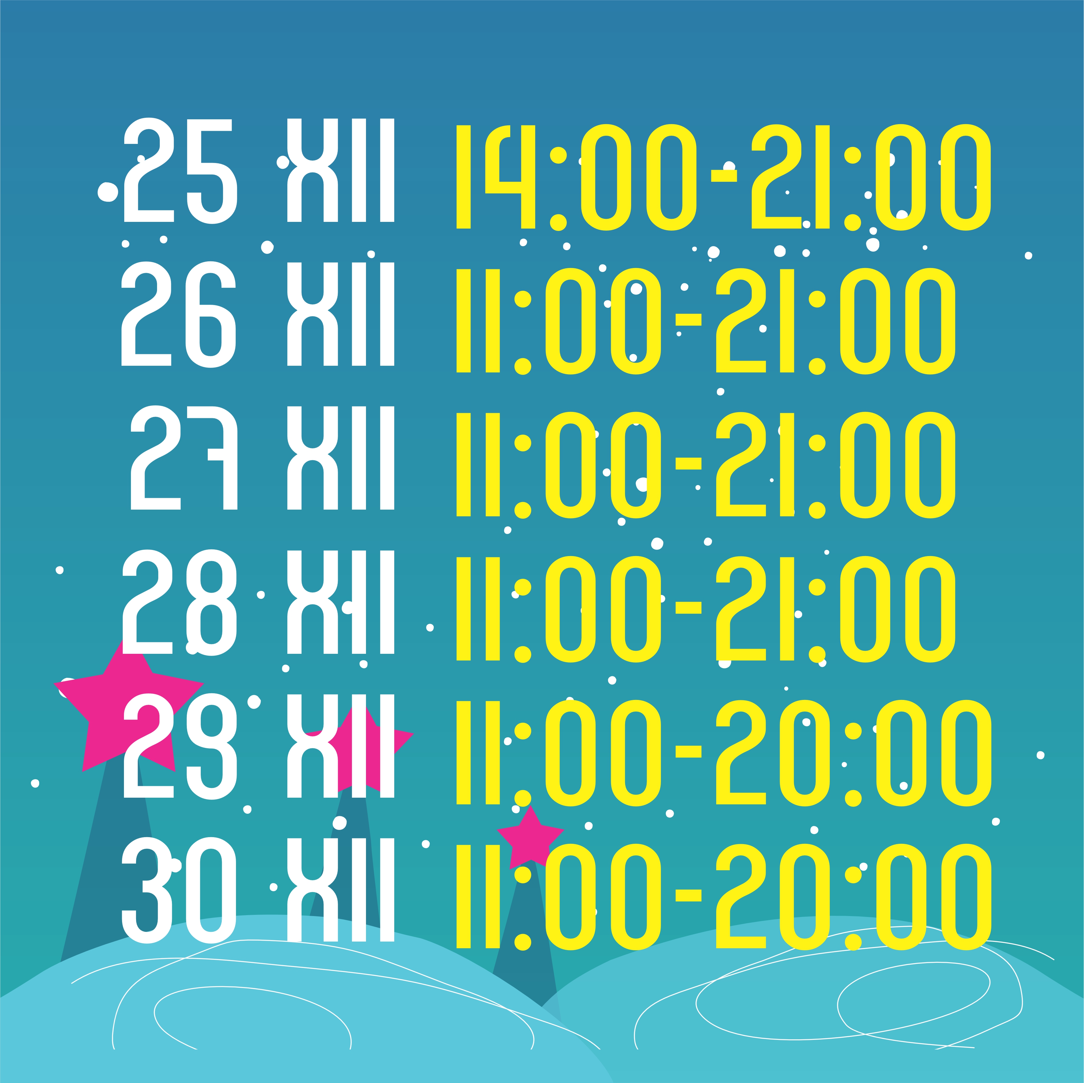 26.12 (Drugi dzień świąt) – 11:00-21:00