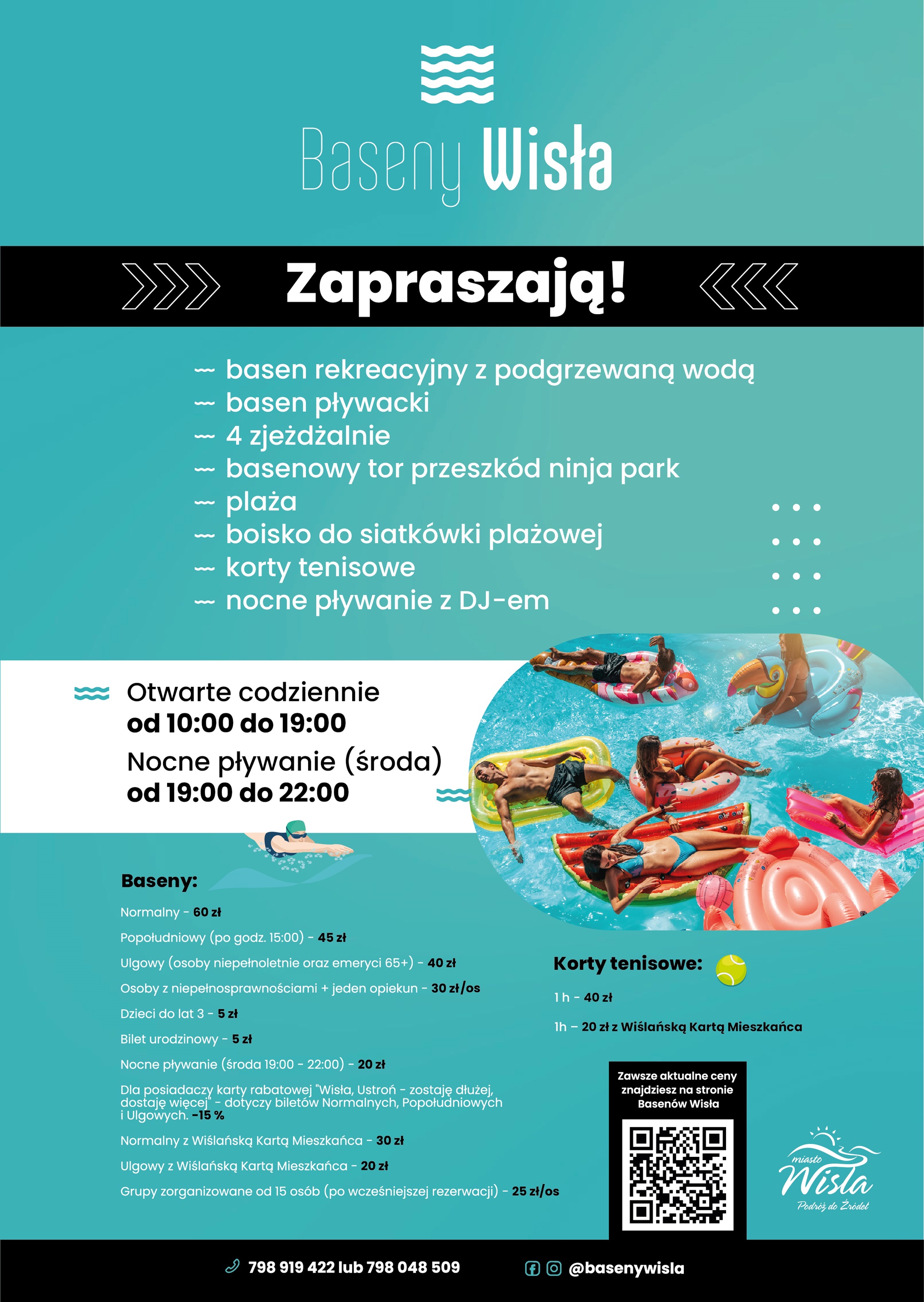 Zapraszamy na otwarcie Basenów Wisła w sezonie 2024! Kompleks zrobił nam wszystkim niespodziankę i wykorzystując letnią pogodę otworzy się dla gości wcześniej, bo już w środę 19 czerwca! Od tego dnia będzie można pływać i korzystać ze wszystkich atrakcji obiektu.