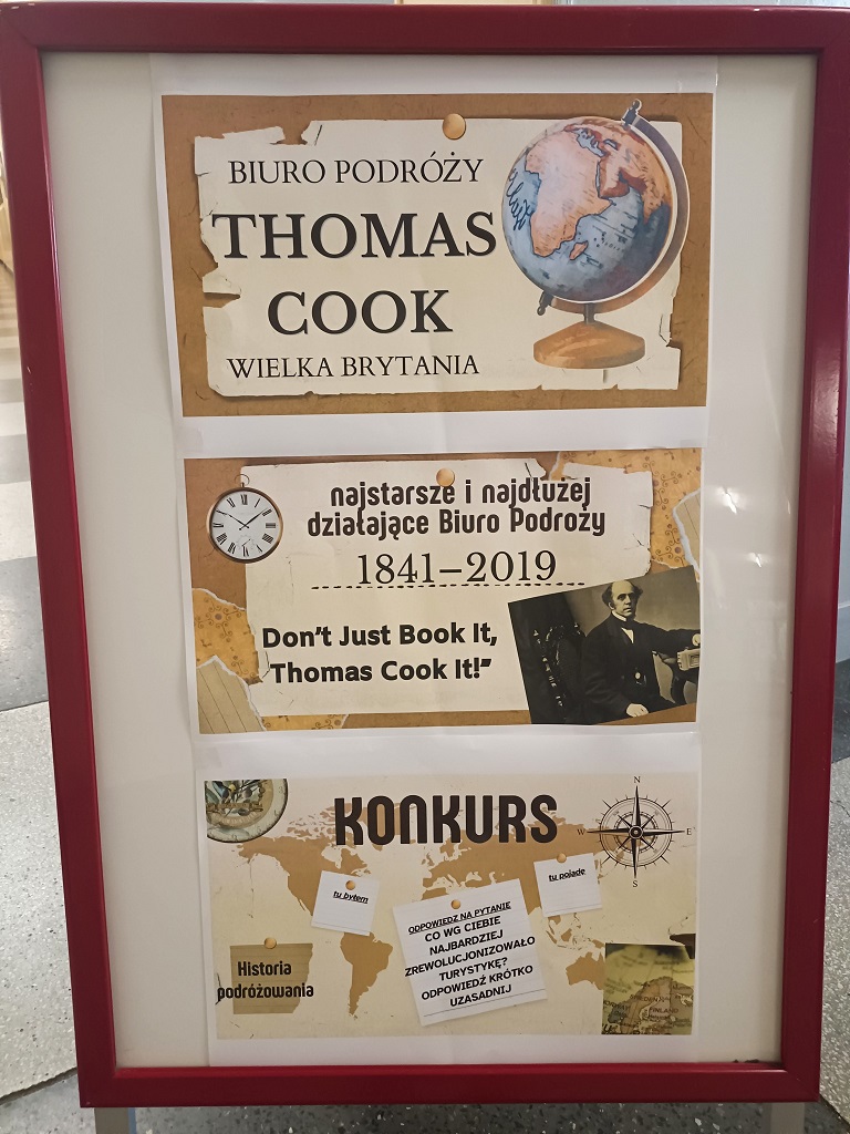 W tym dniu uczniowie mieli okazję odwiedzić pierwsze biuro podróży, którego inicjatorem w 1841 r. był Thomas Cook. To właśnie ten człowiek zdecydowanie ułatwił podróżowanie. Biurem sprawnie zarządzały uczennice klasy 2T.