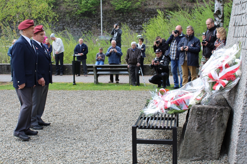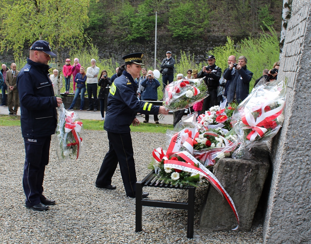 Po modlitwie, przy werblach orkiestry, nastąpiło tradycyjne złożenie wiązanek kwiatów pod Pomnikiem Poległym i Walczącym o Polskość i Wolność Ojczyzny. Kwiaty składały delegacje: Urzędu Miejskiego w Wiśle, Rady Miasta Wisła, Rezydencji Prezydenta RP, Zarządów Osiedli w Wiśle, Związku Polskich Spadochroniarzy, Związku Żołnierzy Narodowych Sił Zbrojnych, Posła na Sejm RP Stanisława Pięty, Uczestników Rajdu Bartka, Policji i Straży Miejskiej, Ochotniczych Straży Pożarnych, Wiślańskiego Centrum Kultury, Towarzystwa Miłośników Wisły, Zespołu Szkół nr 1 Wisła Centrum, Szkoły Podstawowej nr 2 Wisła Czarne, Zespołu Szkolno–Przedszkolnego nr 2 Wisła Malinka, Zespołu Szkolno-Przedszkolnego nr 1 Wisła Głębce, Szkoły Podstawowej nr 5 Wisła Jawornik, Liceum Ogólnokształcącego im. P. Stalmacha, Zespołu Szkół Gastronomiczno–Hotelarskich im. W. Reymonta oraz Stowarzyszenia „Wdzięczni za Ojczyznę”.