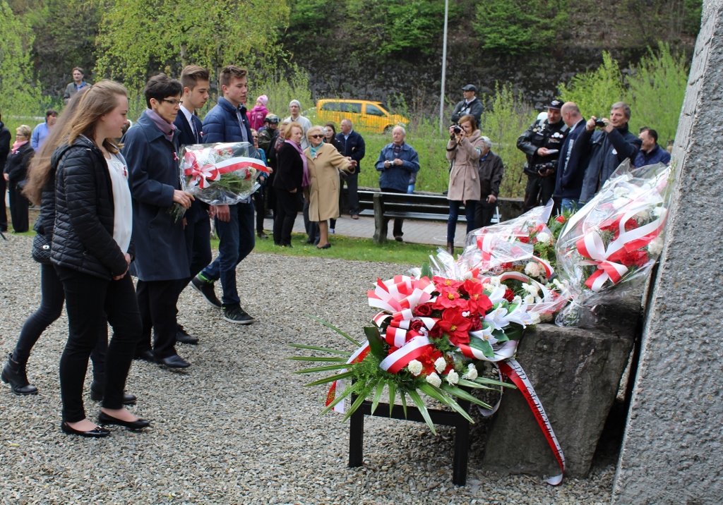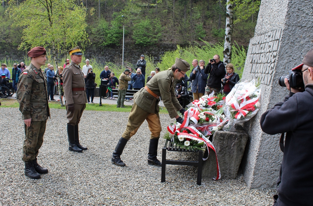 Zanim rozpoczęła się część oficjalna, gromadzący się pod pomnikiem uczestnicy obchodów mogli wysłuchać koncertu orkiestry dętej pod kierunkiem Henryka Itnera, która zadbała o oprawę muzyczną wydarzenia. Punktualnie o 12:00 zabrzmiał hymn państwowy, a następnie sekretarz miasta Jan Cieślar odebrał meldunek od wiślańskich harcerzy i odczytał list burmistrza Wisły Tomasza Bujoka, który w tym czasie, na zaproszenie prezydenta Andrzeja Dudy, uczestniczył w państwowych obchodach Święta Konstytucji 3 Maja w Warszawie.