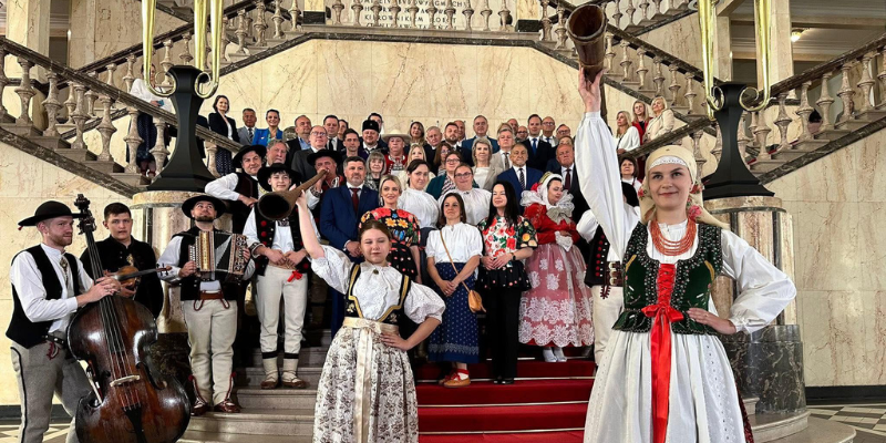 W poniedziałek, 26 maja, Urząd Marszałkowski Województwa Śląskiego w Katowicach stał się przestrzenią pełną beskidzkiego ducha. Wszystko za sprawą wyjątkowej prezentacji Tygodnia Kultury Beskidzkiej – jednego z najbardziej barwnych i radosnych wydarzeń folklorystycznych w kraju. W wydarzeniu udział wzięli Burmistrz Miasta Wisła Tomasz Bujok, Zastępczyni Burmistrza Miasta Wisła Katarzyna Czyż-Kaźmierczak oraz Dyrektorka Wiślańskiego Centrum Kultury Anna Łupieżowiec, wspólnie promując tegoroczną edycję festiwalu.