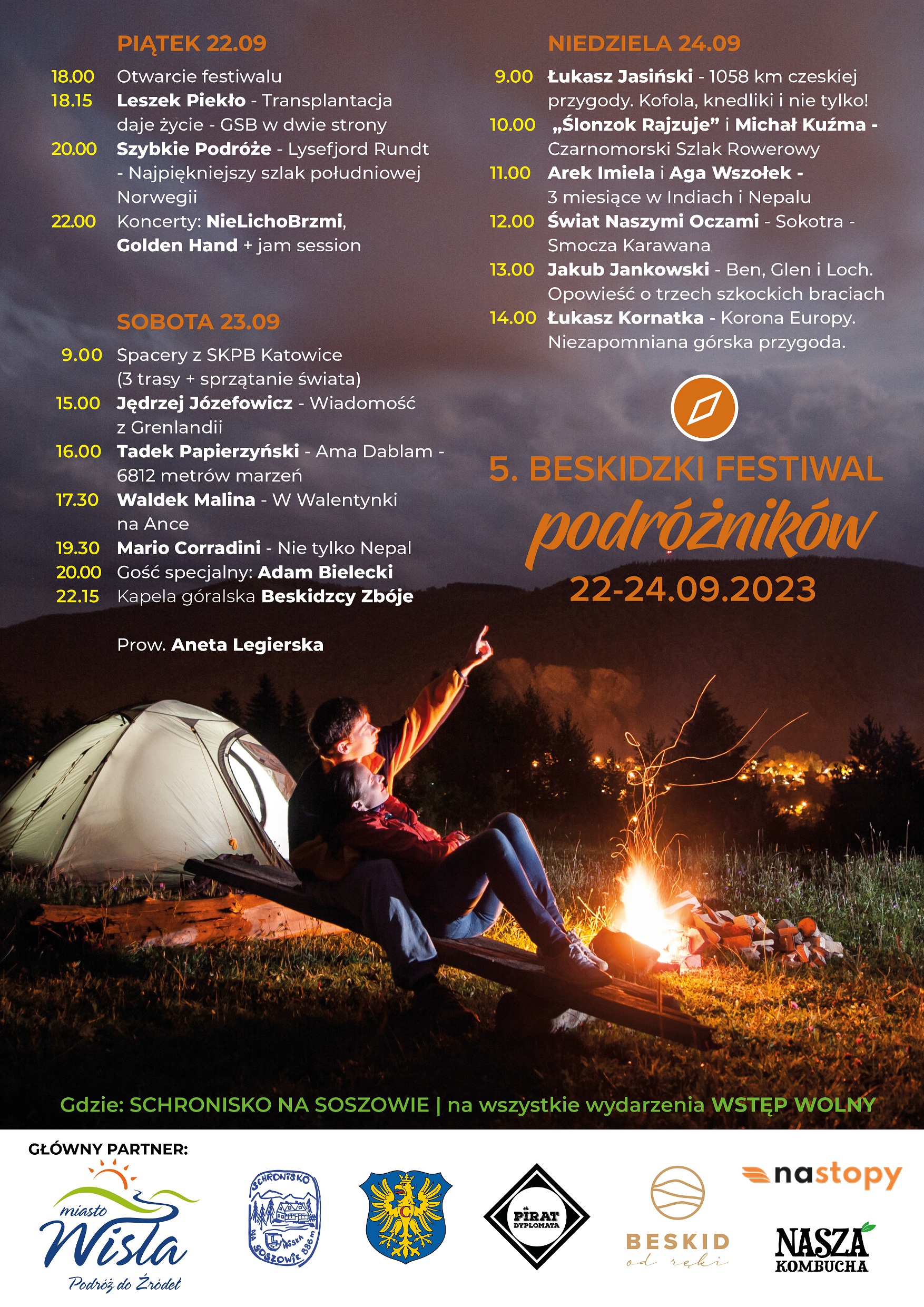 Spotkania rozpoczną się w piątek od godziny 18:00, natomiast najwięcej podróżniczych prelekcji będzie w sobotnie popołudnie i w niedzielę od samego rana. Dodatkowo w sobotę z rana będzie można wziąć udział w górskich spacerach i akcji sprzątania świata wspólnie ze Studenckim Kołem Przewodników Beskidzkich z Katowic. Nie zabraknie też akcentów muzycznych: w piątkowy wieczór zagrają Nie Licho Brzmi oraz Golden Hand a w sobotę na koniec dnia bawić wszystkich będzie kapela góralska Beskidzcy Zbóje.