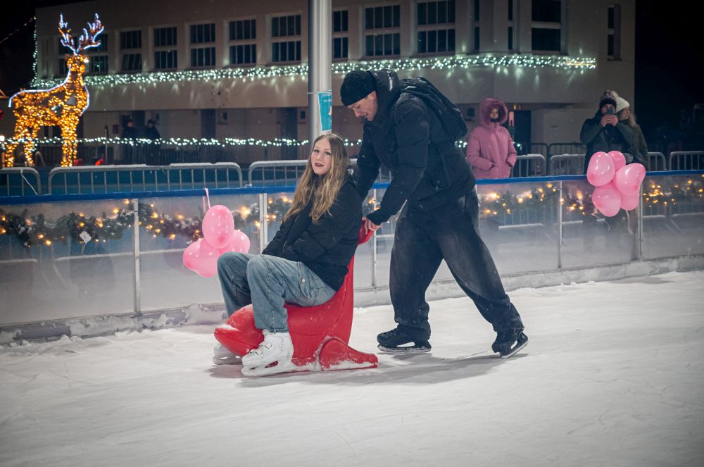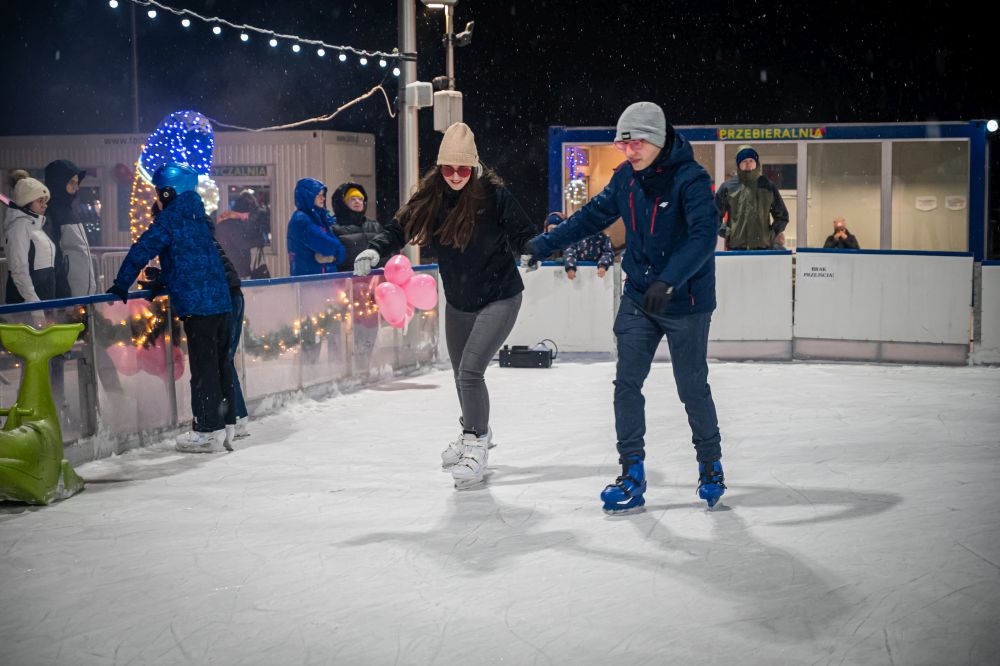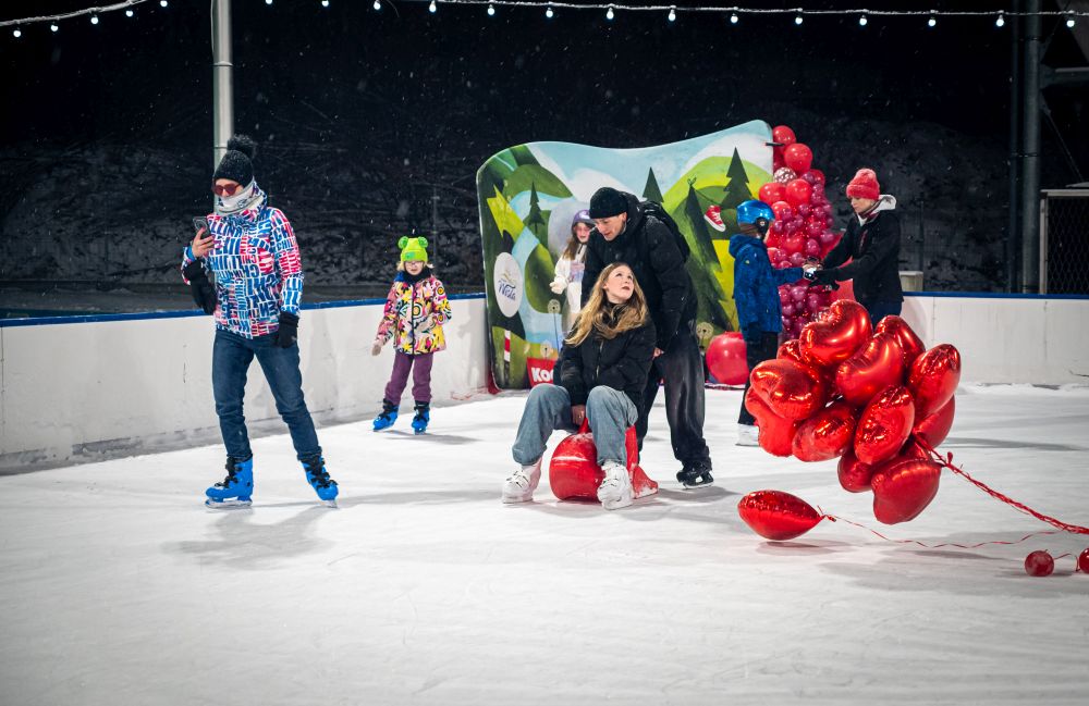 Dla uczczenia święta zakochanych lodowisko wypełniło się balonowymi dekoracjami. Na tafli stanęła też specjalna ścianka do zdjęć, a z głośników wybrzmiewały najpiękniejsze piosenki o miłości. Nie zabrakło też specjalnych pozycji w lodowiskowym punkcie gastronomicznym.
