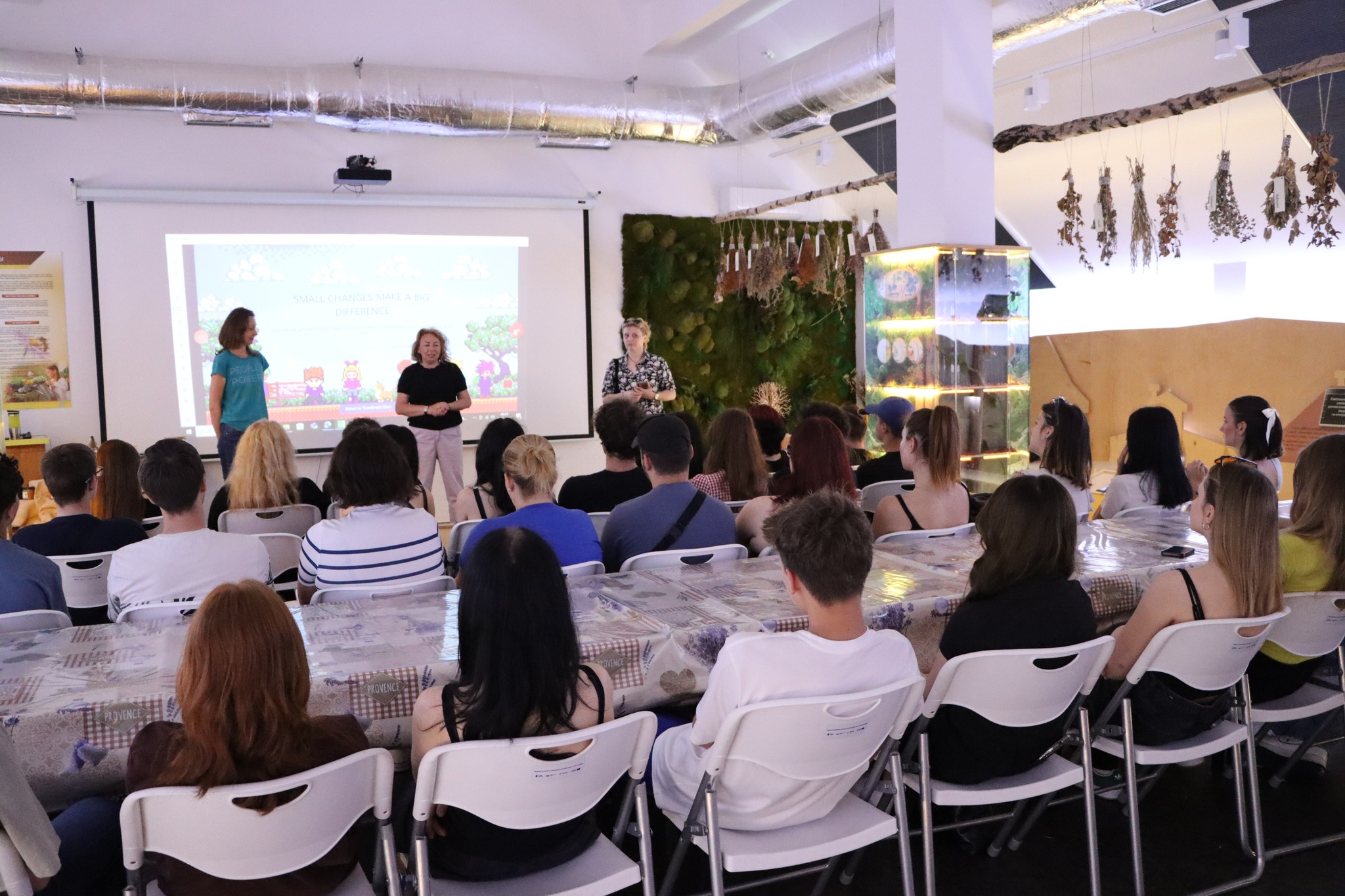 Ważnym punktem programu była wizyta w Centrum Edukacji Ekologicznej w Wiśle. Uczestnicy wzięli tam udział w zajęciach teoretycznych i praktycznych dotyczących zrównoważonego zarządzania odpadami, poznając metody, które można zastosować zarówno w codziennym życiu, jak i w działaniach społecznych. W ramach kreatywnych warsztatów międzynarodowe zespoły pracowały nad innowacyjnymi rozwiązaniami problemu elektroodpadów w swoich lokalnych społecznościach – wymiana pomysłów i wspólne projektowanie sprzyjały twórczemu podejściu i szukaniu realnych, praktycznych rozwiązań.
