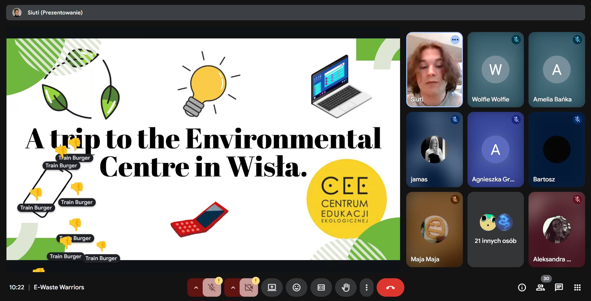 Kulminacyjnym momentem projektu była międzynarodowa konferencja online, podczas której uczestnicy zaprezentowali efekty swojej pracy i podzielili się zdobytymi kompetencjami. Poruszali tematykę odpowiedzialnego zarządzania elektroodpadami, promowali dobre praktyki recyklingowe i podkreślali znaczenie aktywnego zaangażowania społecznego w działania na rzecz środowiska. Konferencja była nie tylko podsumowaniem całego tygodnia, ale również okazją do inspirującej wymiany doświadczeń z rówieśnikami z całej Europy.