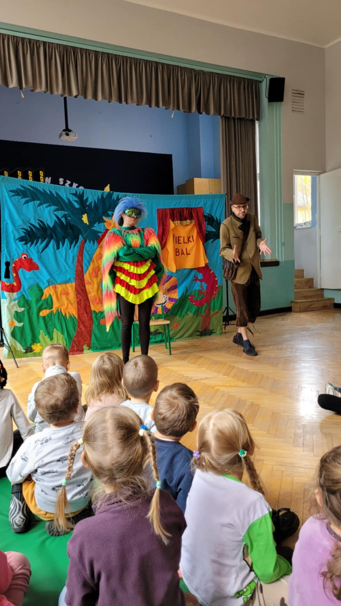Dnia 27 października 2025 r. w szkole dla grup przedszkolnych ( 3,4,5 i 6 latków) odbyło się przedstawienie teatrzyku Skrzat pt „ Z kulturą na Ty”. Aktorzy w ciekawy i zabawny sposób przypomnieli dzieciom zasady kulturalnego zachowania- m. in. używanie zwrotów grzecznościowych, szacunku wobec innych oraz dbanie o porządek. Przedszkolaki z dużym zainteresowaniem oglądały występ, chętnie uczestniczyły w dialogach. Spotkanie było wartościową lekcją dobrych manier połączoną z radosną zabawą.