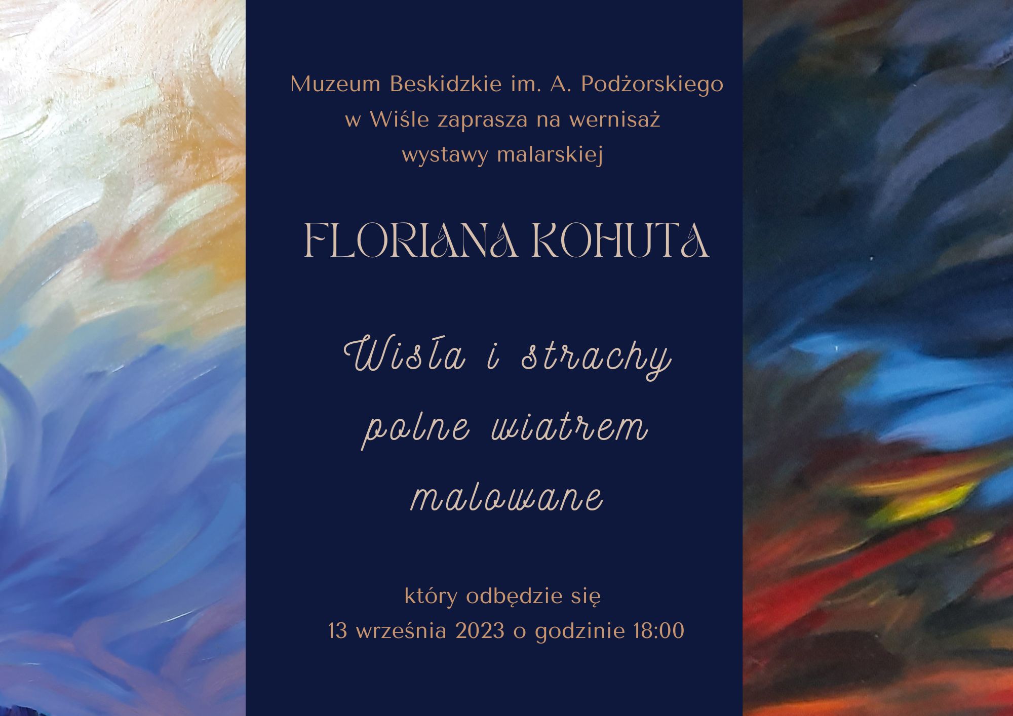Muzeum Beskidzkie im. A. Podżorskiego w Wiśle zaprasza na wernisaż wystawy malarskiej Floriana Kohuta pt. "Wisła i strachy polne wiatrem malowane", który odbędzie się w środę 13 września 2023 r. o godz. 18:00.