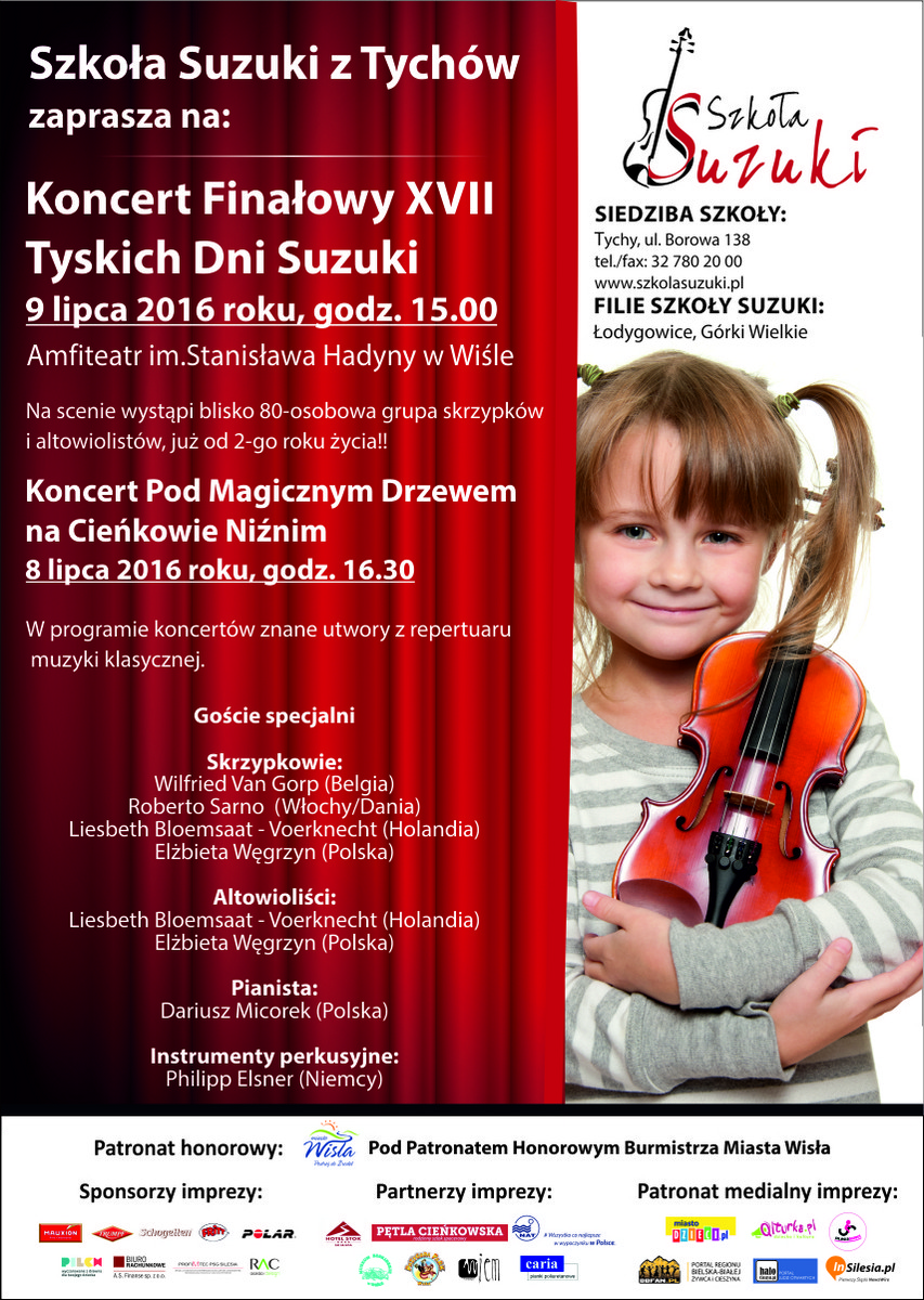 Szczegóły dotyczące XVII Tyskich Dni Suzuki będą się pojawiały na stronie internetowej www.szkolasuzuki.pl