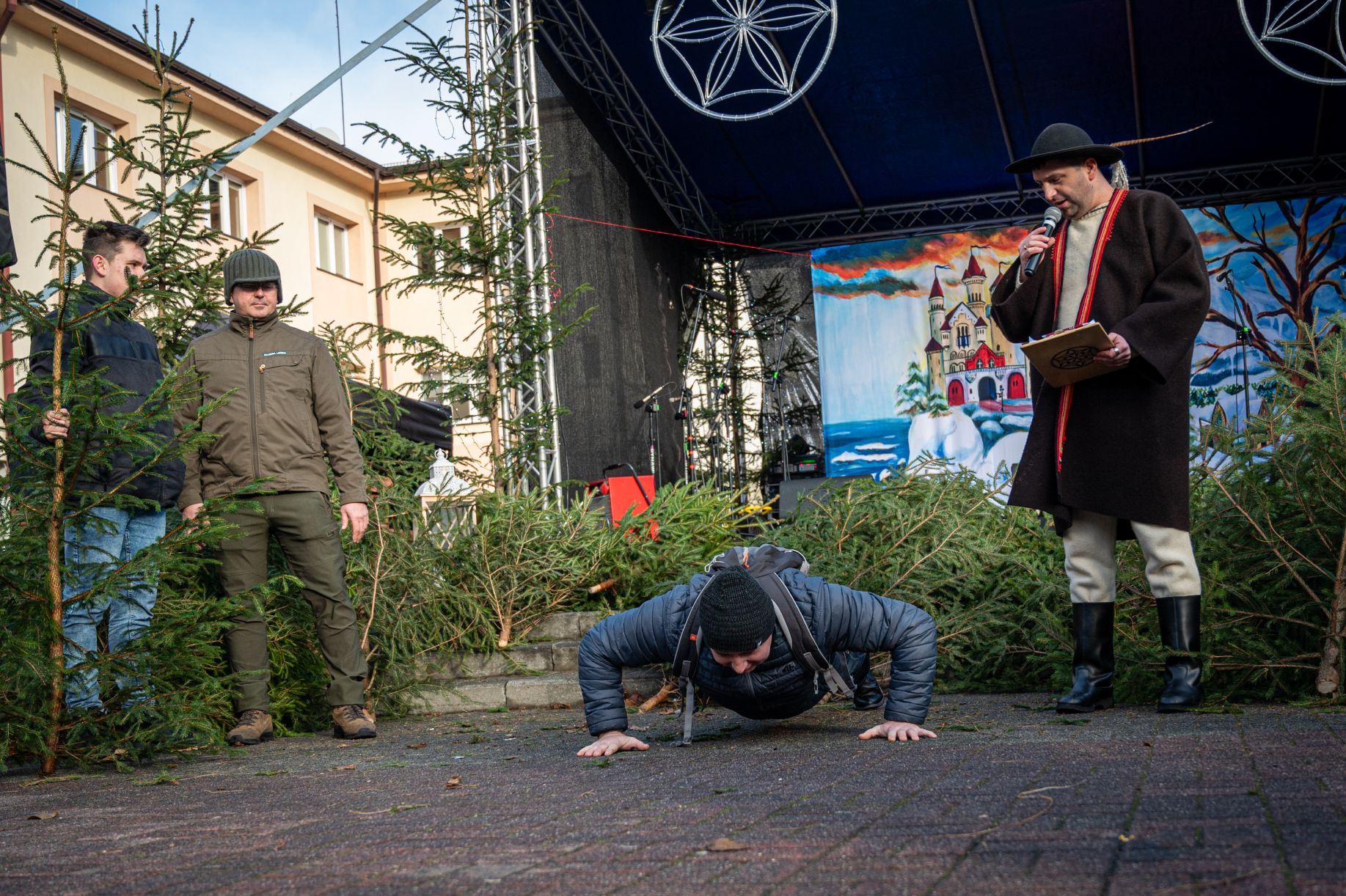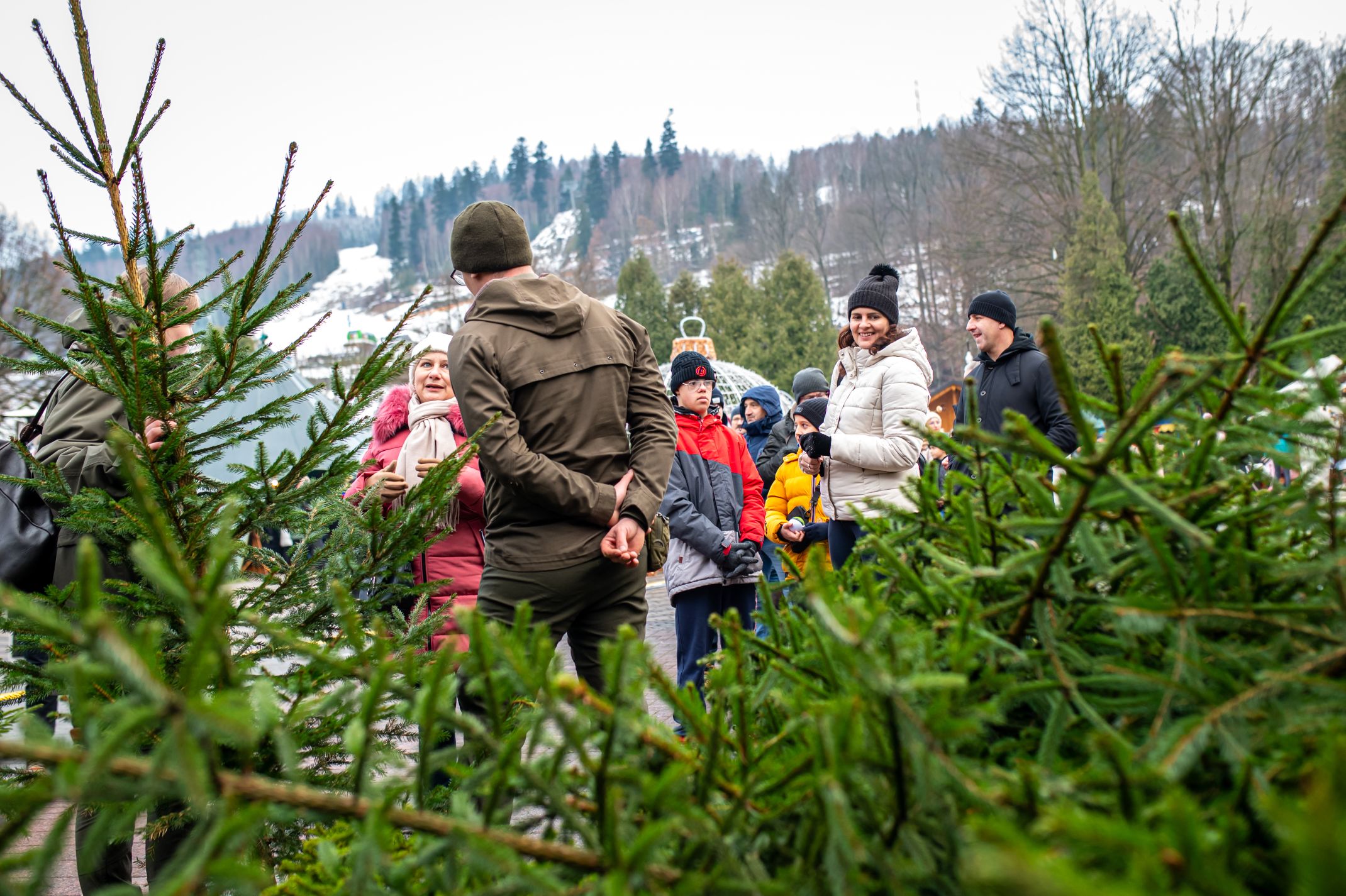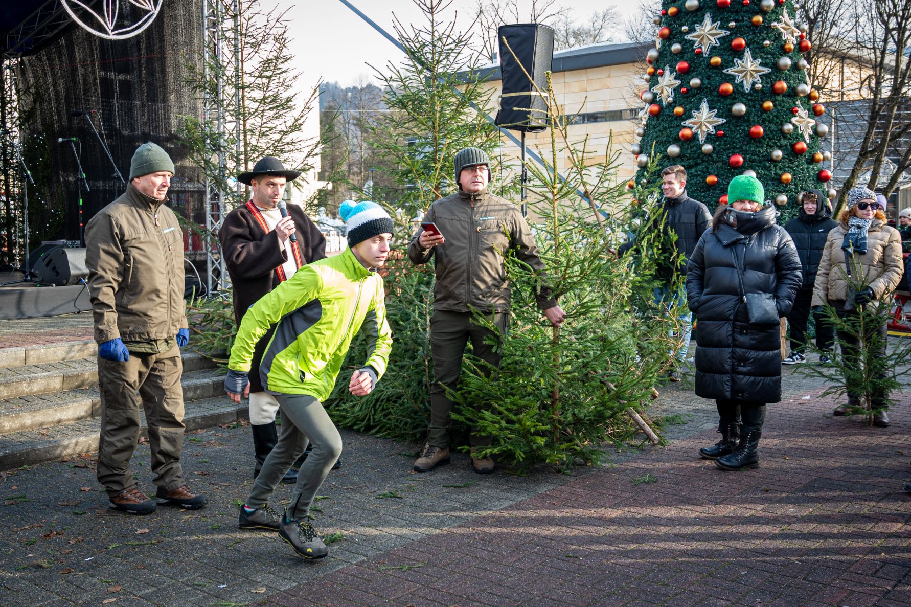 Nadleśnictwo Wisła, Lasy Państwowe rozdawało piękne choinki, a zebrani wykazali się rewelacyjną kreatywnością w wymyślaniu "ceny" za prezent. Były wiersze, winszowanie, śpiewy, opowiadanie dowcipów, bieg na czas, pompki, a nawet jazda z choinką na rowerze. Dziękujemy za tę zabawę!