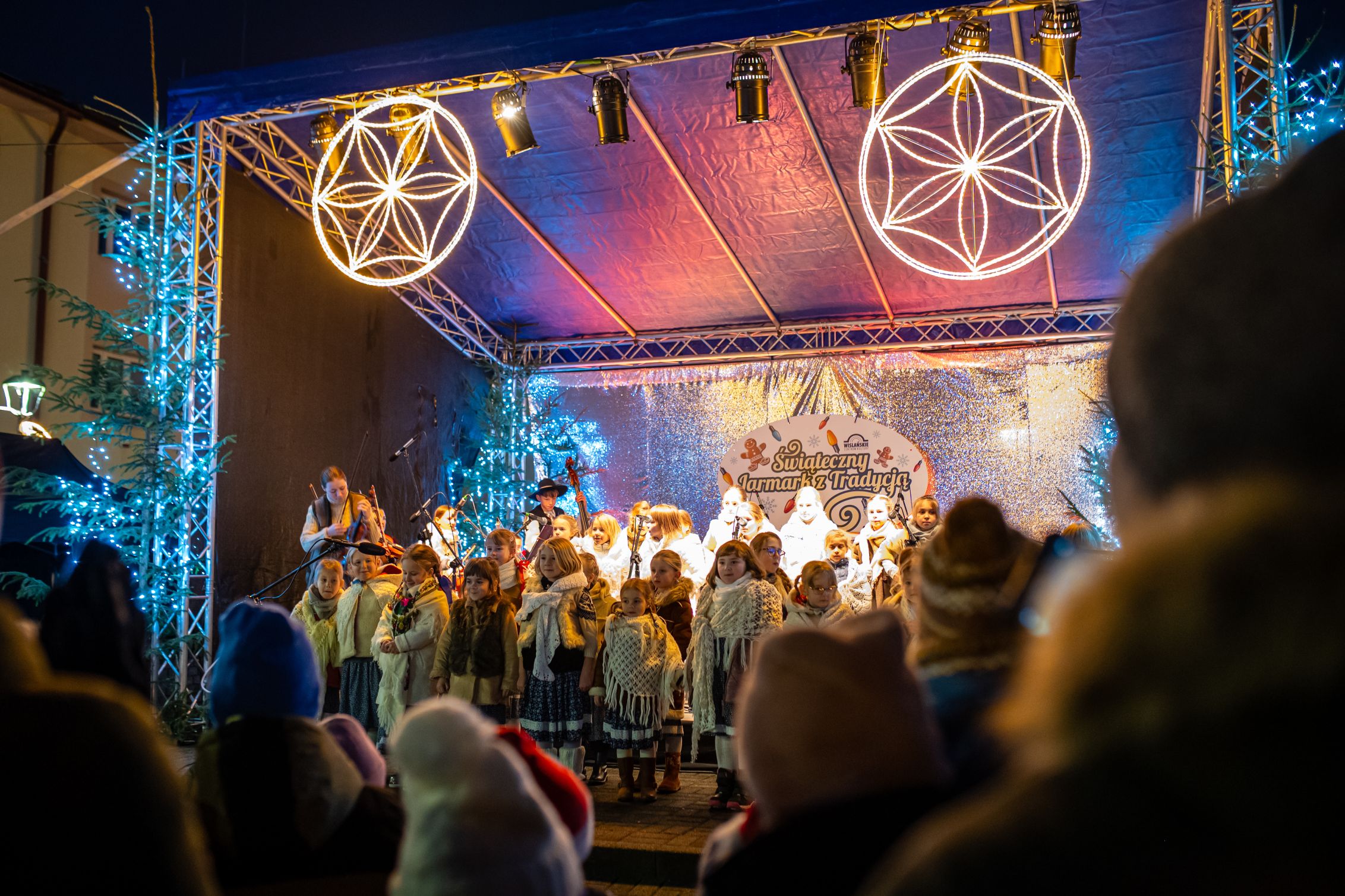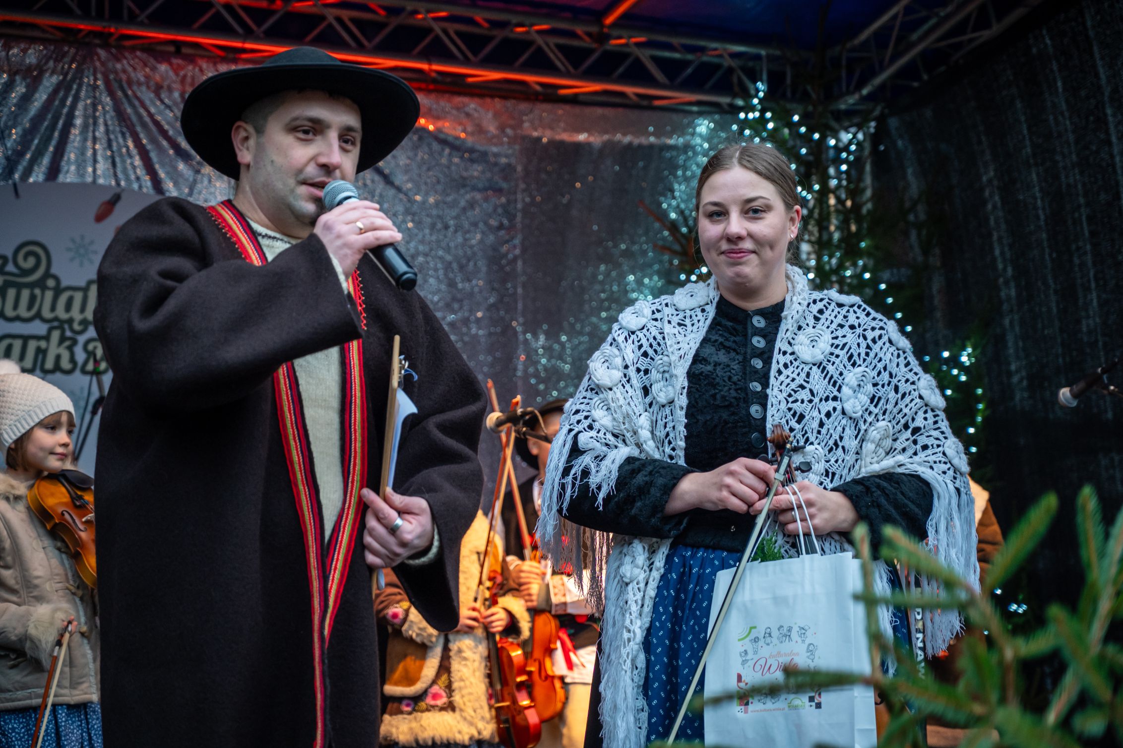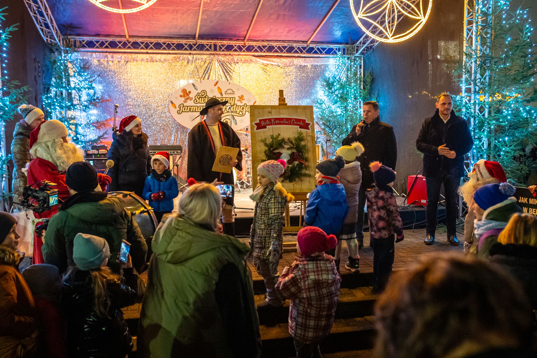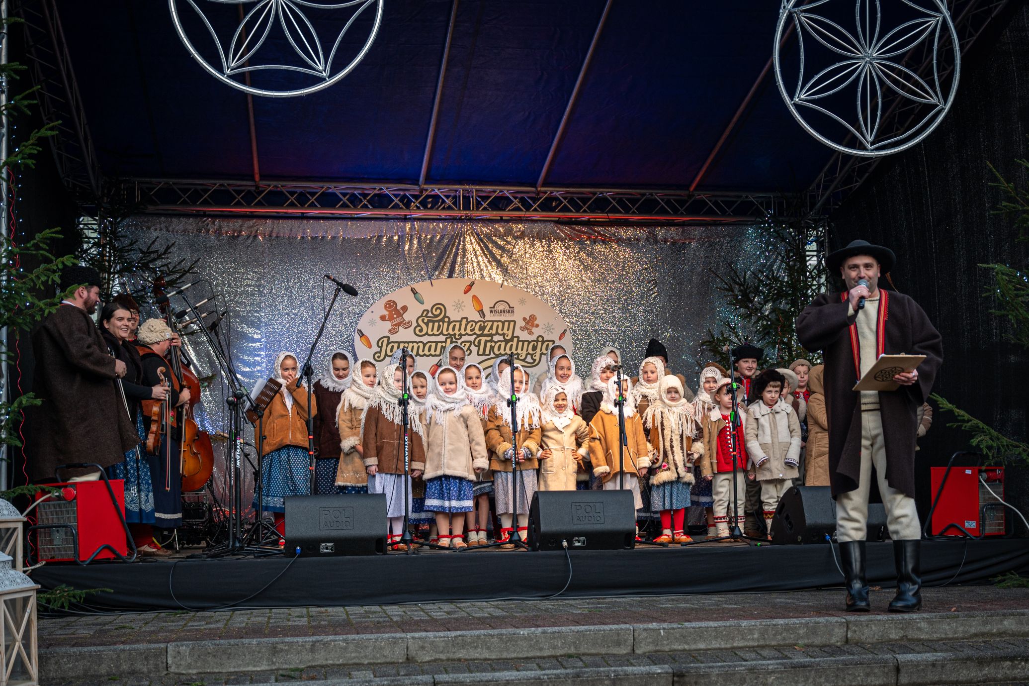 Przez całe dwa dni wydarzeniom na scenie towarzyszył jarmark rękodzieła, ozdób, ciasteczek i stroików. Pomiędzy stoiskami przygrywały przed rozpoczęciem programu na głównej scenie kapele Wisła i Istebna, tworząc piękny świąteczny, góralski klimat. Całość prowadził jedyny w swoim rodzaju i niezastąpiony Rafał Cieślar. Dziękujemy wiślańskim szkołom i stowarzyszeniom za przygotowanie pięknych stoisk. Dziękujemy również Nadleśnictwo Wisła za cykliczną już akcję rozdawania choinek.