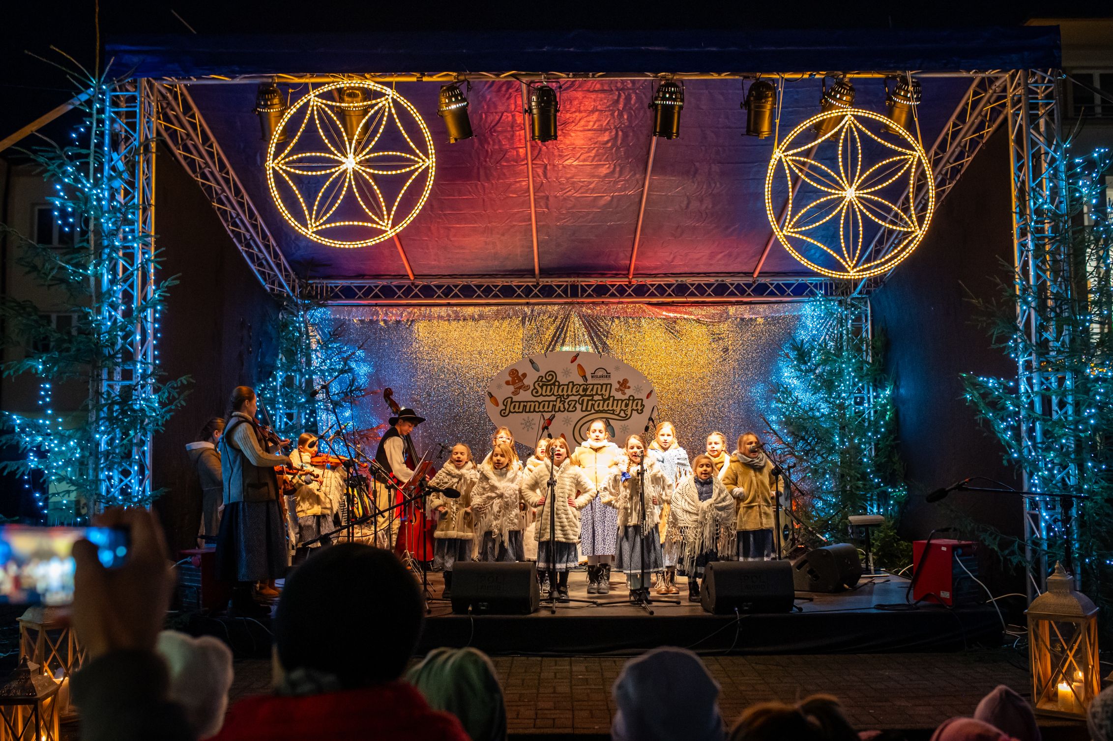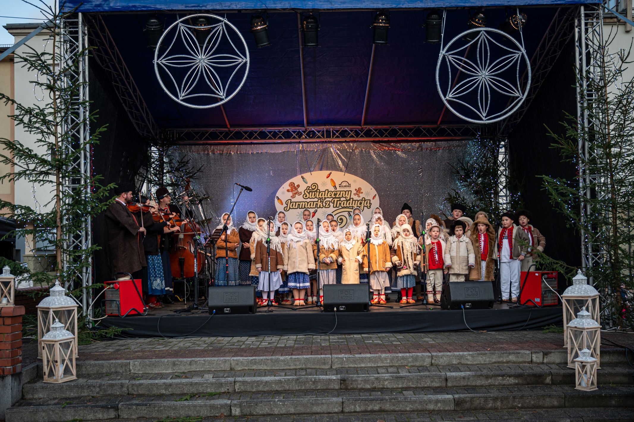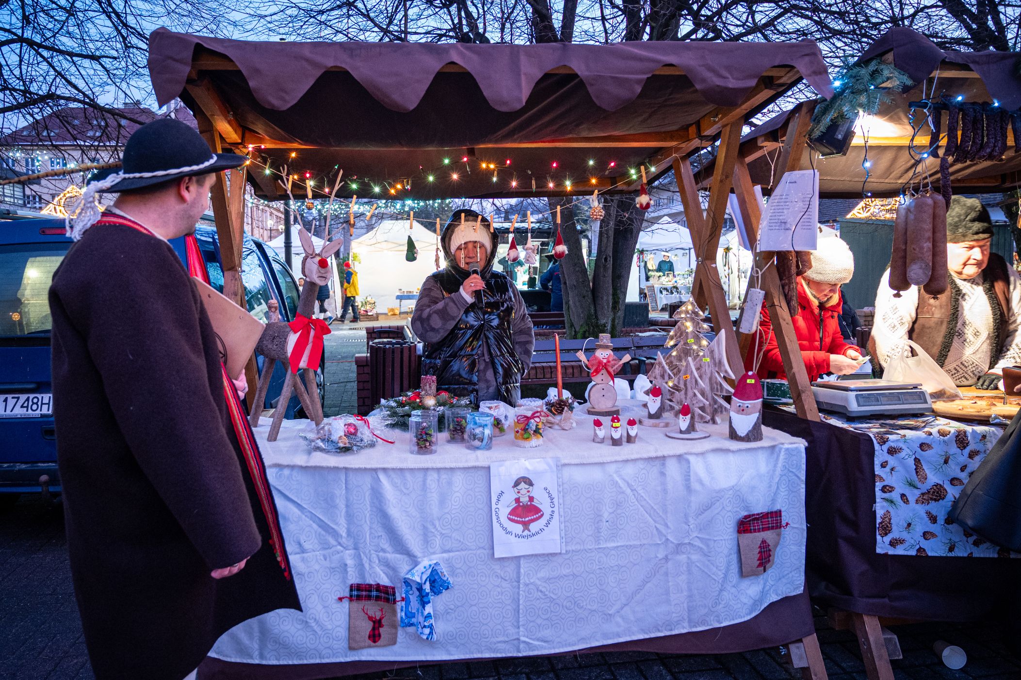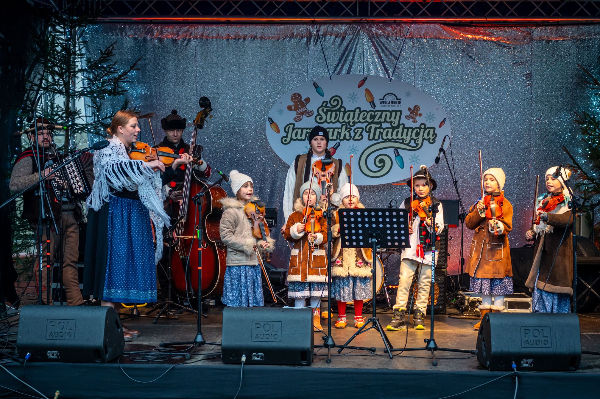 Przez całe dwa dni wydarzeniom na scenie towarzyszył jarmark rękodzieła, ozdób, ciasteczek i stroików. Pomiędzy stoiskami przygrywały przed rozpoczęciem programu na głównej scenie kapele Wisła i Istebna, tworząc piękny świąteczny, góralski klimat. Całość prowadził jedyny w swoim rodzaju i niezastąpiony Rafał Cieślar. Dziękujemy wiślańskim szkołom i stowarzyszeniom za przygotowanie pięknych stoisk. Dziękujemy również Nadleśnictwo Wisła za cykliczną już akcję rozdawania choinek.