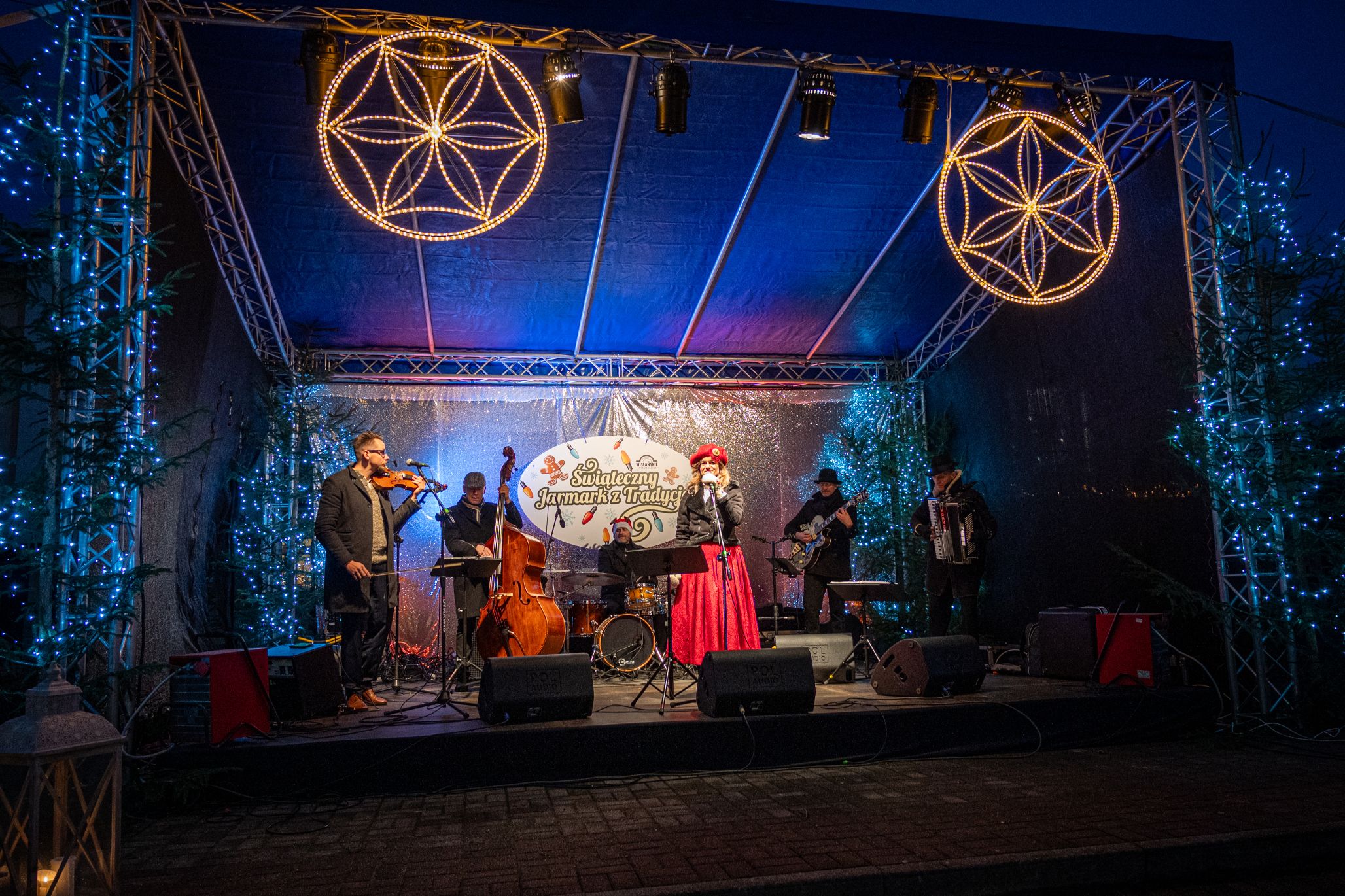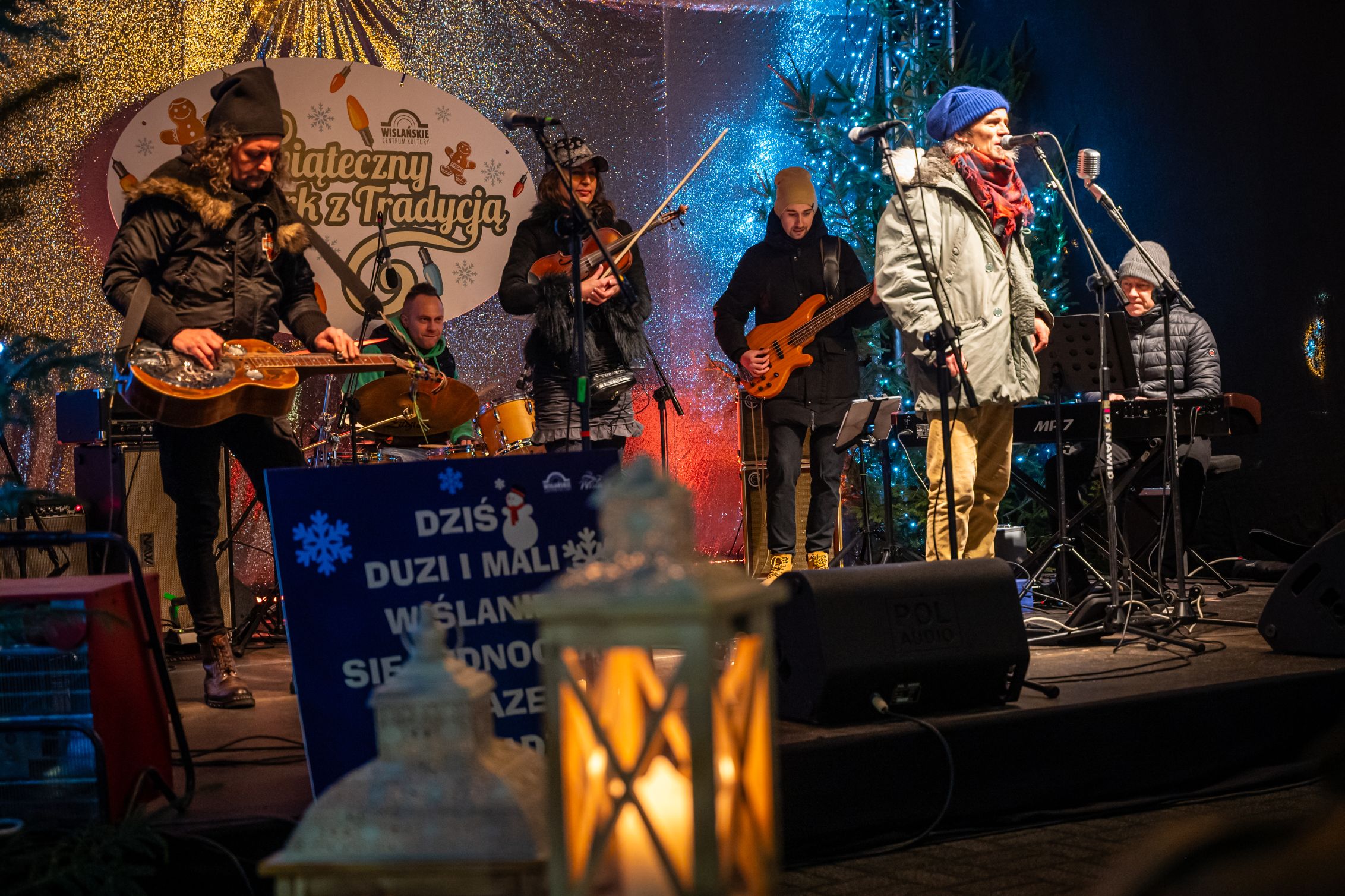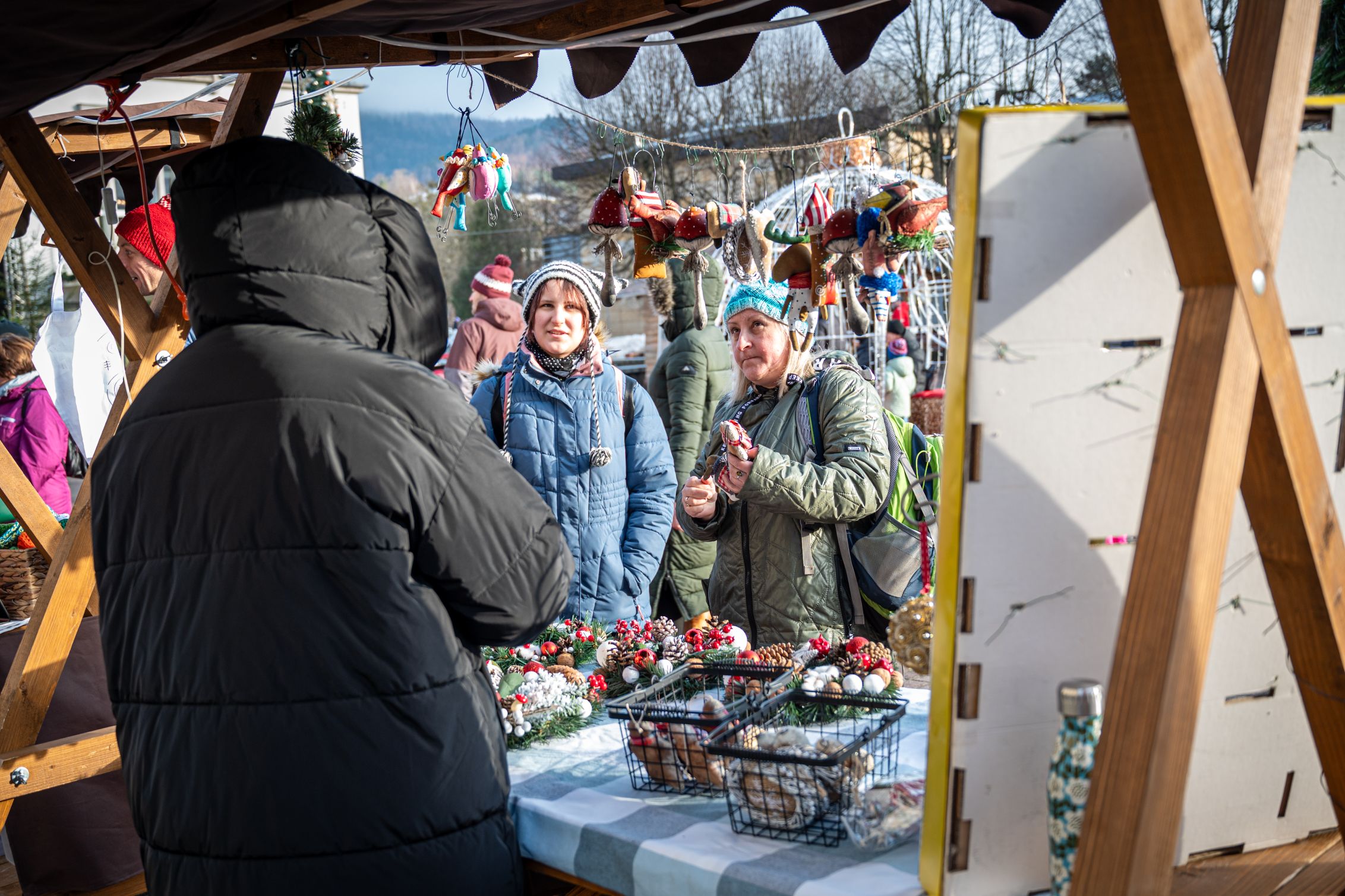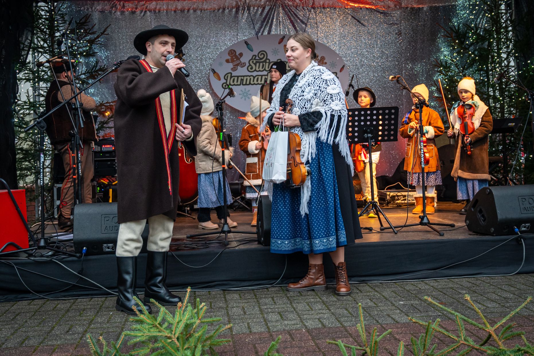 Przez całe dwa dni wydarzeniom na scenie towarzyszył jarmark rękodzieła, ozdób, ciasteczek i stroików. Pomiędzy stoiskami przygrywały przed rozpoczęciem programu na głównej scenie kapele Wisła i Istebna, tworząc piękny świąteczny, góralski klimat. Całość prowadził jedyny w swoim rodzaju i niezastąpiony Rafał Cieślar. Dziękujemy wiślańskim szkołom i stowarzyszeniom za przygotowanie pięknych stoisk. Dziękujemy również Nadleśnictwo Wisła za cykliczną już akcję rozdawania choinek.