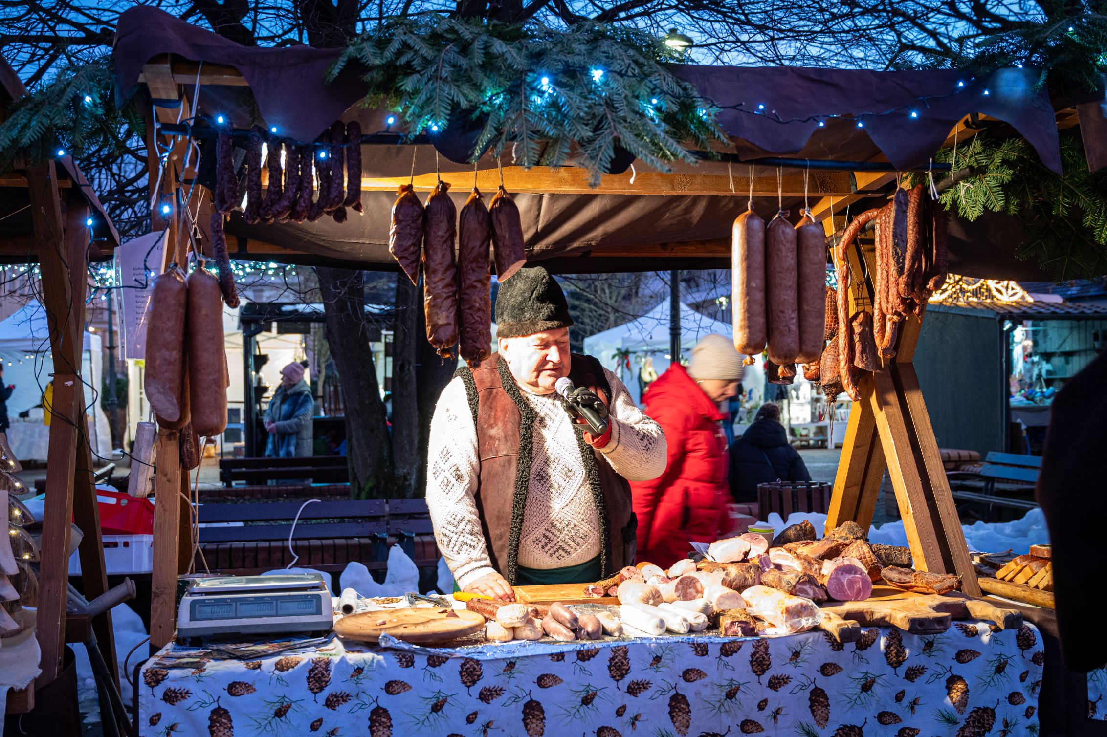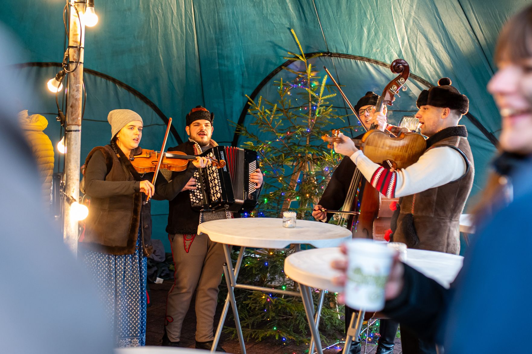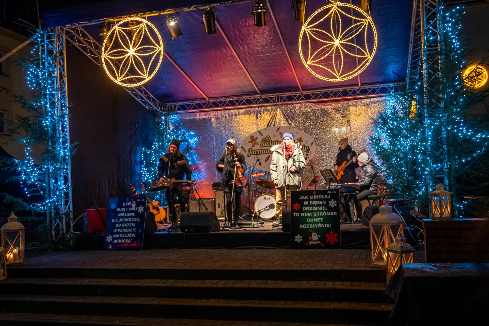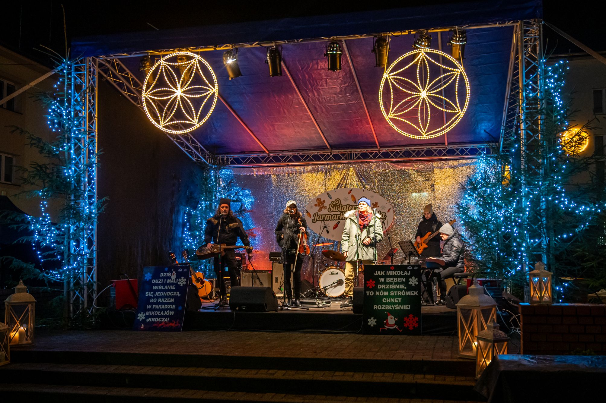 Przez całe dwa dni wydarzeniom na scenie towarzyszył jarmark rękodzieła, ozdób, ciasteczek i stroików. Pomiędzy stoiskami przygrywały przed rozpoczęciem programu na głównej scenie kapele Wisła i Istebna, tworząc piękny świąteczny, góralski klimat. Całość prowadził jedyny w swoim rodzaju i niezastąpiony Rafał Cieślar. Dziękujemy wiślańskim szkołom i stowarzyszeniom za przygotowanie pięknych stoisk. Dziękujemy również Nadleśnictwo Wisła za cykliczną już akcję rozdawania choinek.