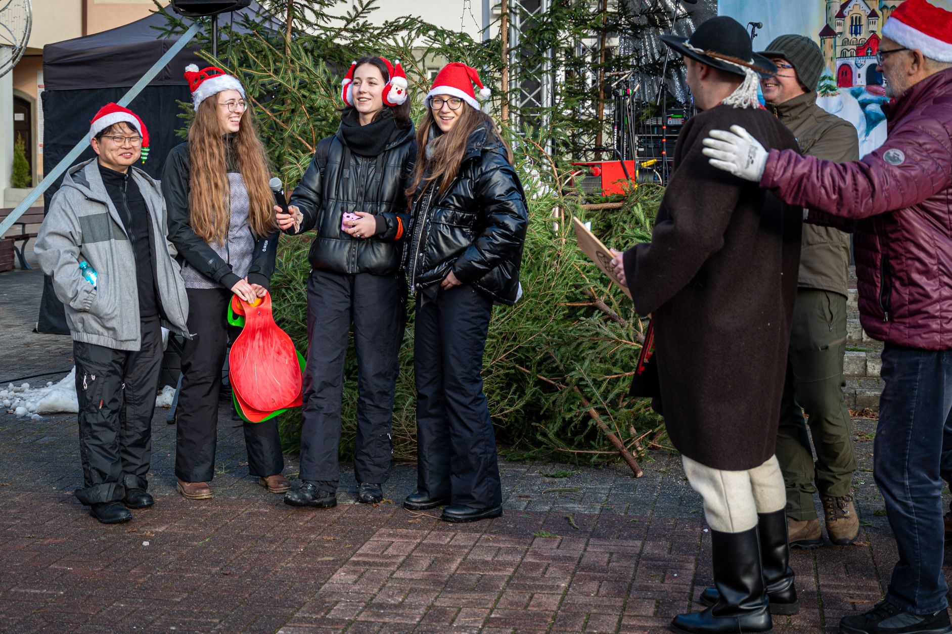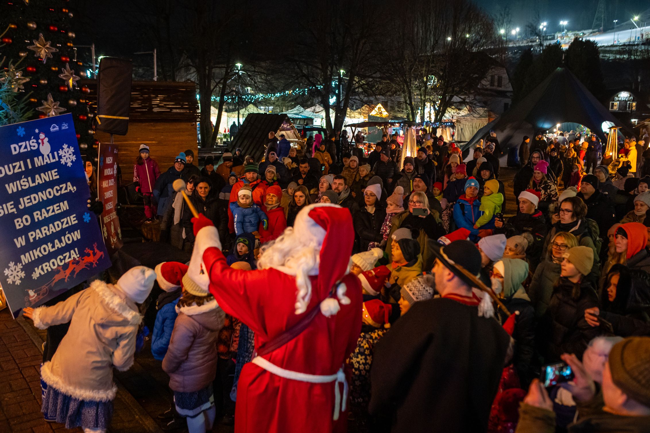 Po raz pierwszy w ten dzień odbyła się w Wiśle Parada Mikołajów. Uczestnicy trochę nieśmiało w niej wystąpili, ale jest ogromny potencjał na przyszłość! Parada zakończyła się wspólnym rozświetleniem choinki, któremu towarzyszyli burmistrz Wisły Tomasz Bujok i sekretarz Sylwester Foltyn. Głównymi rozświetlaczami byli natomiast zwycięscy mikołajowego konkursu.