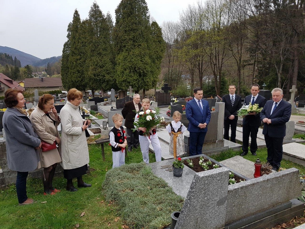 Następnie burmistrz Tomasz Bujok, przewodniczący rady Miasta Wisła Janusz Podżorski, radny Powiatu Cieszyńskiego Janusz Juroszek, przewodniczący Rady Rodziców SOM ks. Waldemar Szajthauer, córki Jerzego Drozda oraz dyrektor SOM Iga Baranowska-Jagiełło, wraz z najmłodszymi uczniami (Lena Pustówka, Tomasz i Krzysztof Cieślarowie), udali się na cmentarz na „Gróniczku” i złożyli kwiaty na grobie Jerzego Drozda.