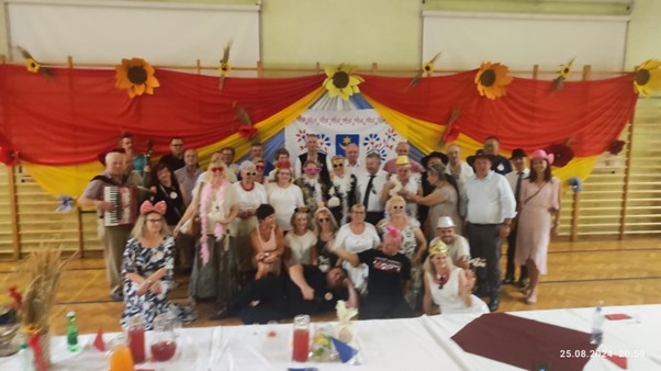 Następnie udaliśmy się do Żyrakowa, by zaprezentować nasz folklor, tańce i stroje Beskidu Śląskiego z okazji święta plonów. Publiczność zgotowała nam owacje na stojąco. Zostaliśmy przyjęci serdecznie i może nawet zbyt gorąco z uwagi na fakt, iż występ odbywał się w temperaturze sięgającej 35°C. Zachwyt wzbudziły nie tylko tańce, ale i stroje zgoła odmienne od lokalnych ,czy tych noszonych przez Rzeszowiaków. W czasie wolnym już po występie oglądaliśmy przepiękne wieńce dożynkowe misternie przygotowane przez każde sołectwo. Smakowaliśmy lokalne potrawy ,a wśród nich prołzioki , rodzime placki ,łazanki, pierogi. Był też i czas na wspólną biesiadę z Zespołem ludowym z Żyrakowa oraz zaprzyjaźnionym od dawna zespołem Podkówka ,na którego jubileuszu 10-lecia istnienia mieliśmy okazję być w kwietniu 2024 gościnnie w pobliskim Przecławiu. Wyjazd był doskonałą okazją do zacieśnienia przyjaźni pomiędzy zespołami, wspólnej integracji, wymiany doświadczeń. Oby tych chwil było jak najwięcej.