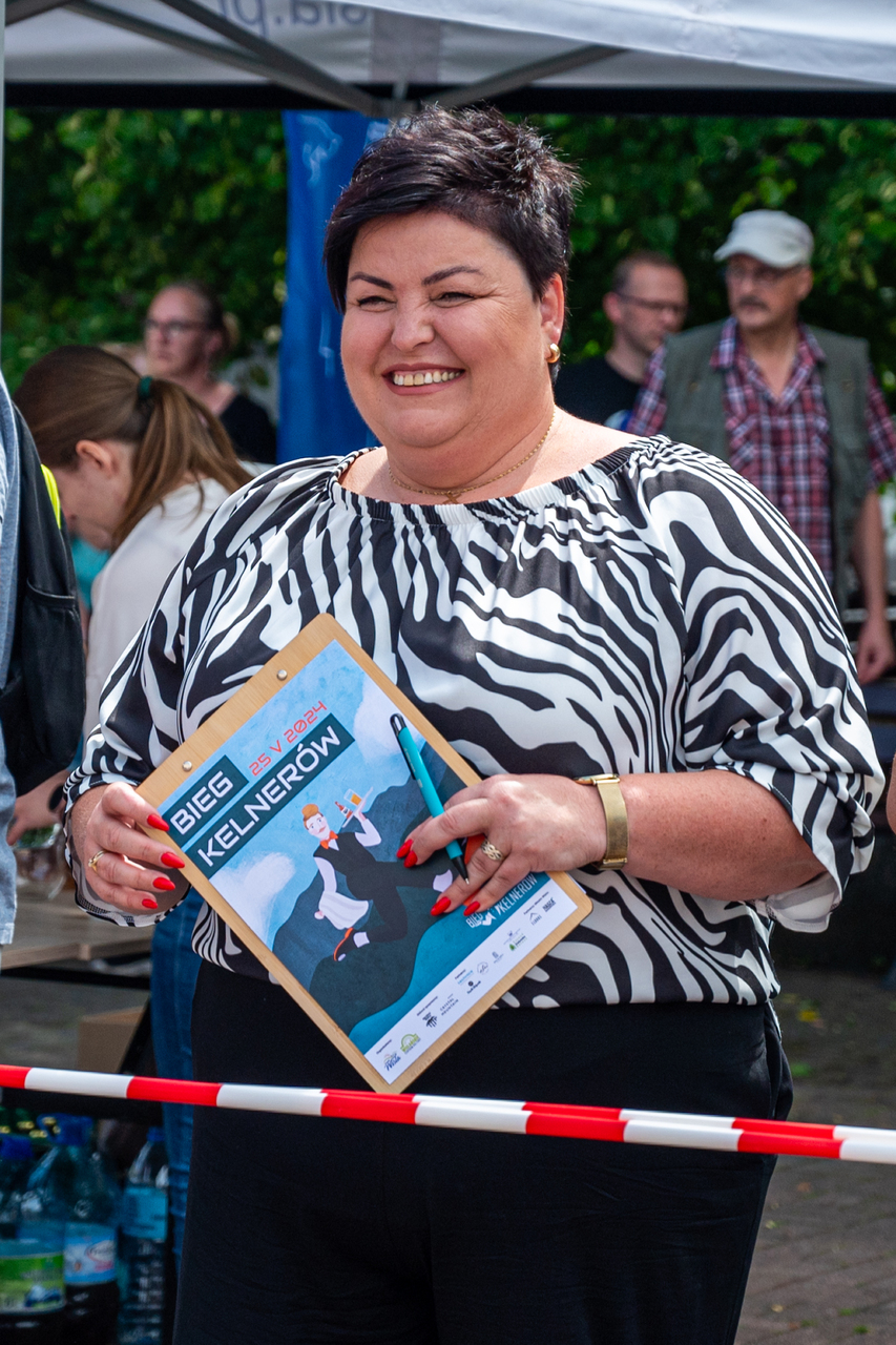 Uczestników i kibiców biegu tuż przed startem przywitała wiceburmistrzyni Katarzyna Czyż-Kaźmierczak, która życzyła kelnerkom i kelnerom połamania tac.