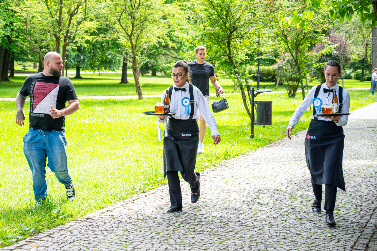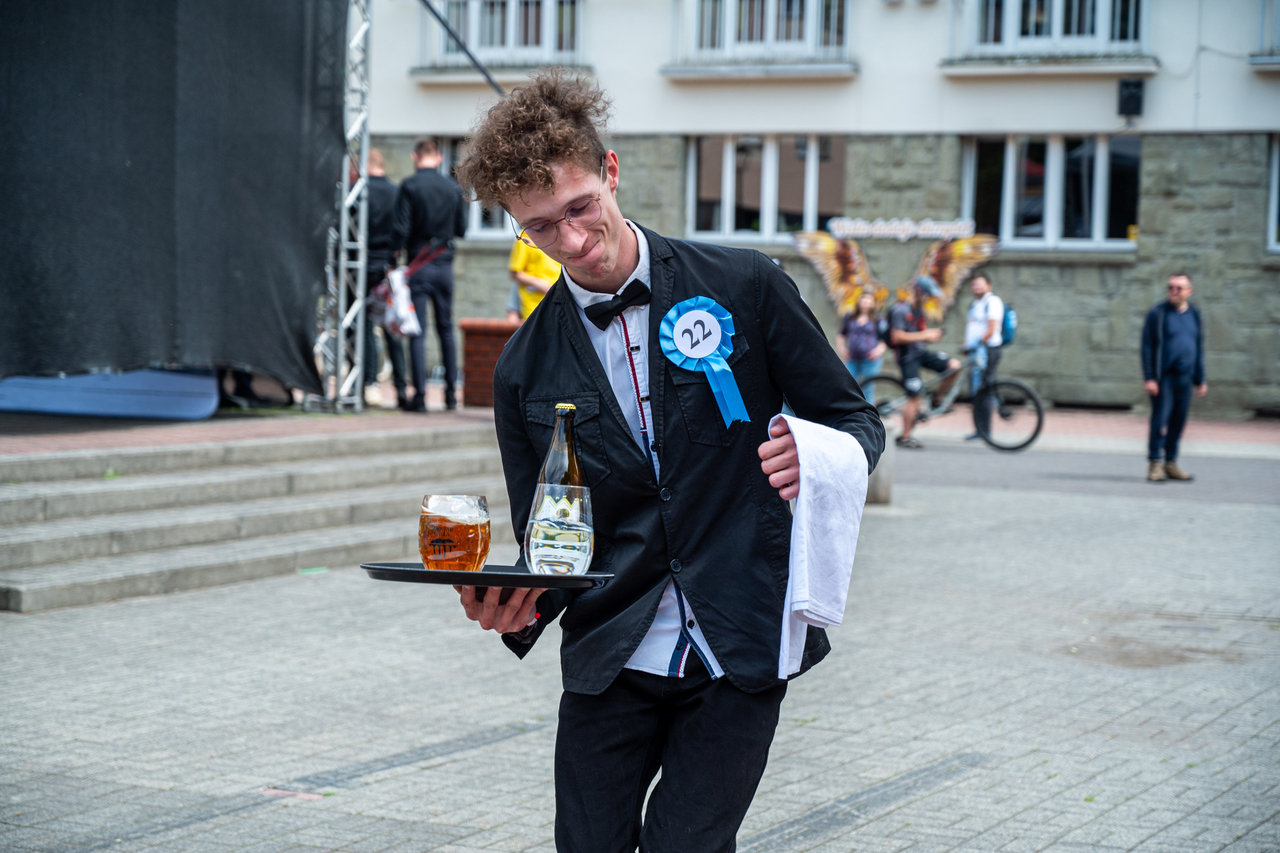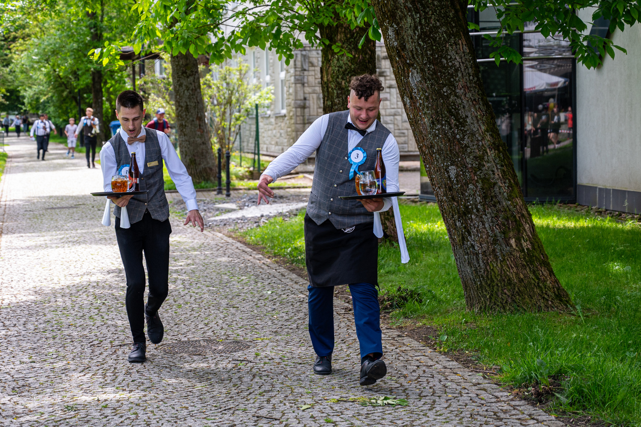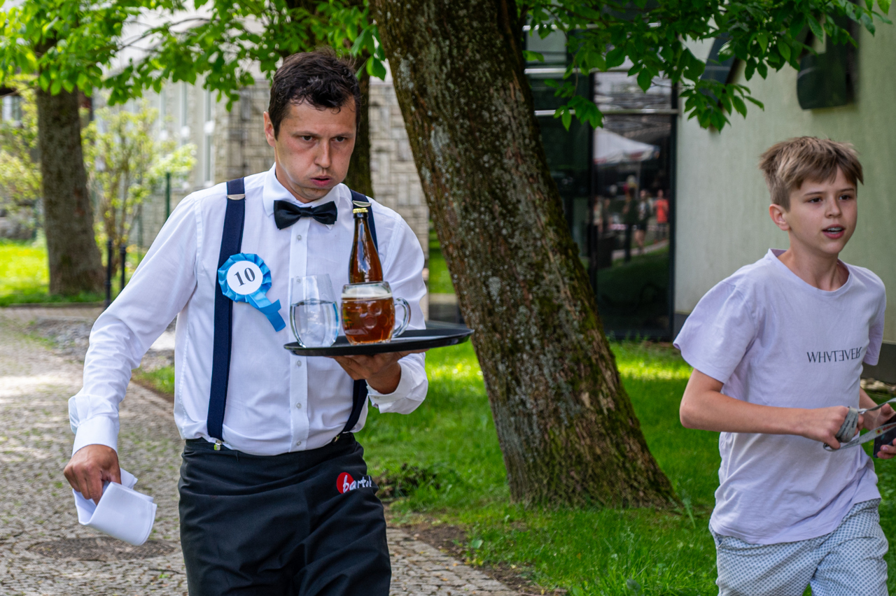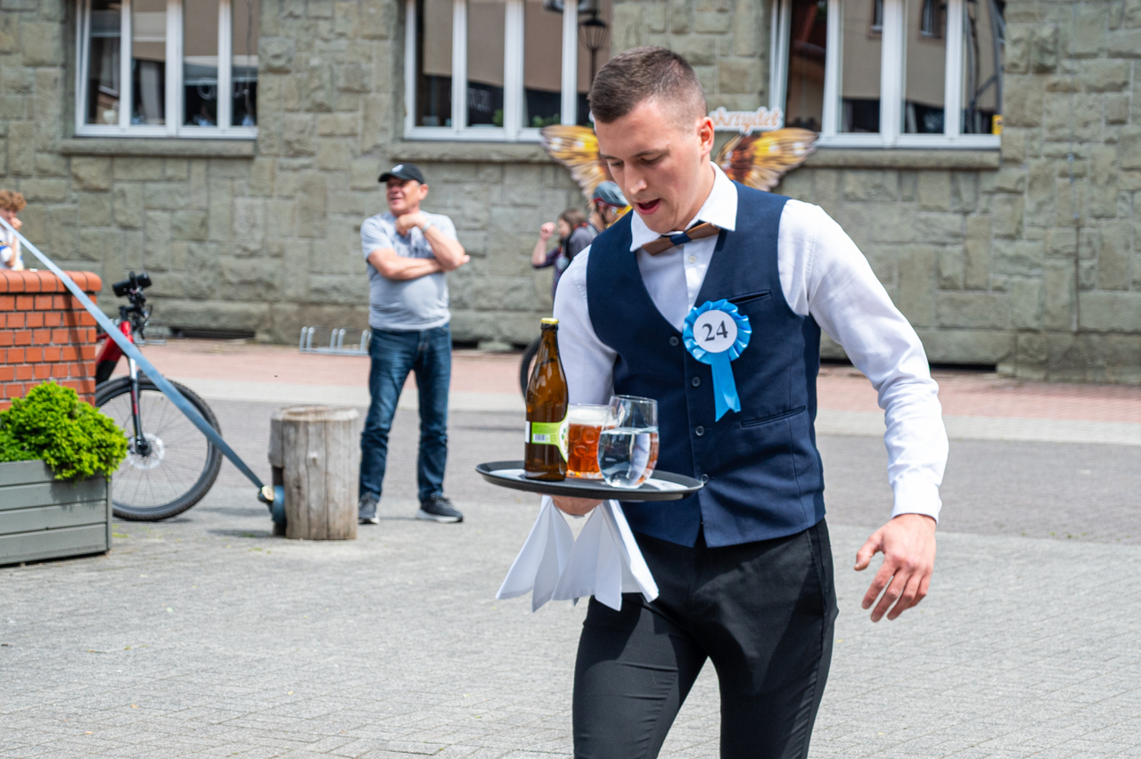Zawodniczki i zawodnicy mieli do pokonania trasę o długości około 1km z tacą, niesioną jedną ręką, na której znalazł się kufel piwa, szklanka wody i butelka piwa w przypadku kelnerów. Reprezentacja pań nie musiała na swojej tacy nieść szklanki z wodą. Za każdy rozlany milimetr sędziowie do czasu biegu doliczali karne sekundy, podobnie za braki regulaminowe w stroju kelnerskim. Za podtrzymywanie tacy drugą ręką i rozbicie, któregoś z elementów niesionych na tacy groziła dyskwalifikacja, co wyłapywali sędziowie liniowi rozstawieni na trasie.