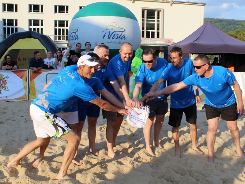 Hitem dnia był także pokazowy mecz Wisła kontra Reszta Świata. Reprezentacja naszego miasta wystąpiła w składzie: Tomasz Bujok - burmistrz, Piotr Żyła - skoczek WSS Wisła i reprezentacji Polski, Andrzej Kudełka - nadleśniczy Nadleśnictwa Wisła, druh Jan Pilch - komendant miejski OSP w Wiśle, Zdzisław Pilch i Sławomir Wantulok - radni Rady Miasta Wisła i Łukasz Bielski - pracownik Referatu Promocji Urzędu Miasta Wisła. W przeciwnej drużynie zagrali m.in. zawodnicy BBTS Bielsko-Biała Marcin Wika i Sergii Kapelus. Towarzyską potyczkę wygrali gospodarze turnieju, choć nie wynik był tutaj ważny, tylko dobra zabawa. Z grającymi na boisku zawodnikami świetnie bawiła się publiczność, a wszystkim "sterował" pełniący rolę spikera, sędziego, a czasami nawet... siódmego gracz Rafał "Rufi" Polak, który prowadzi w Wiśle Beskidzką Plażę.