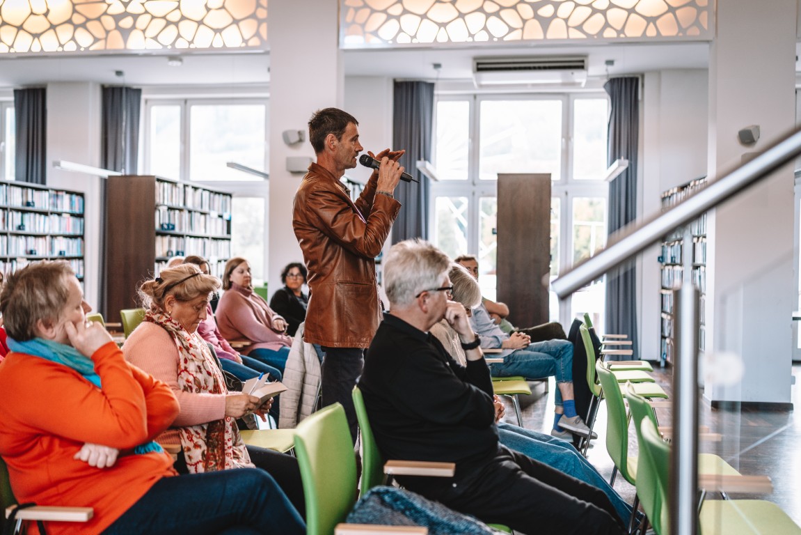 Popołudniowe wydarzenia przeniosły się do Miejskiej Biblioteki Publicznej im. Jana Śniegonia. Tu odbyła się rozmowa „O chłopach i chłopkach nie tylko reymontowskich”, w której udział wzięli Antonina Tosiek, Ryszard Koziołek i Wojciech Śmieja. Dyskusja toczyła się wokół współczesnego odczytania wiejskiej tożsamości, literackich klisz i sposobów ich przełamywania. Festiwal zamknęło spotkanie z Zbigniewem Rokitą, autorem książki „Aglom. Bańka po Śląsku”, które poprowadził Andrzej Drobik.