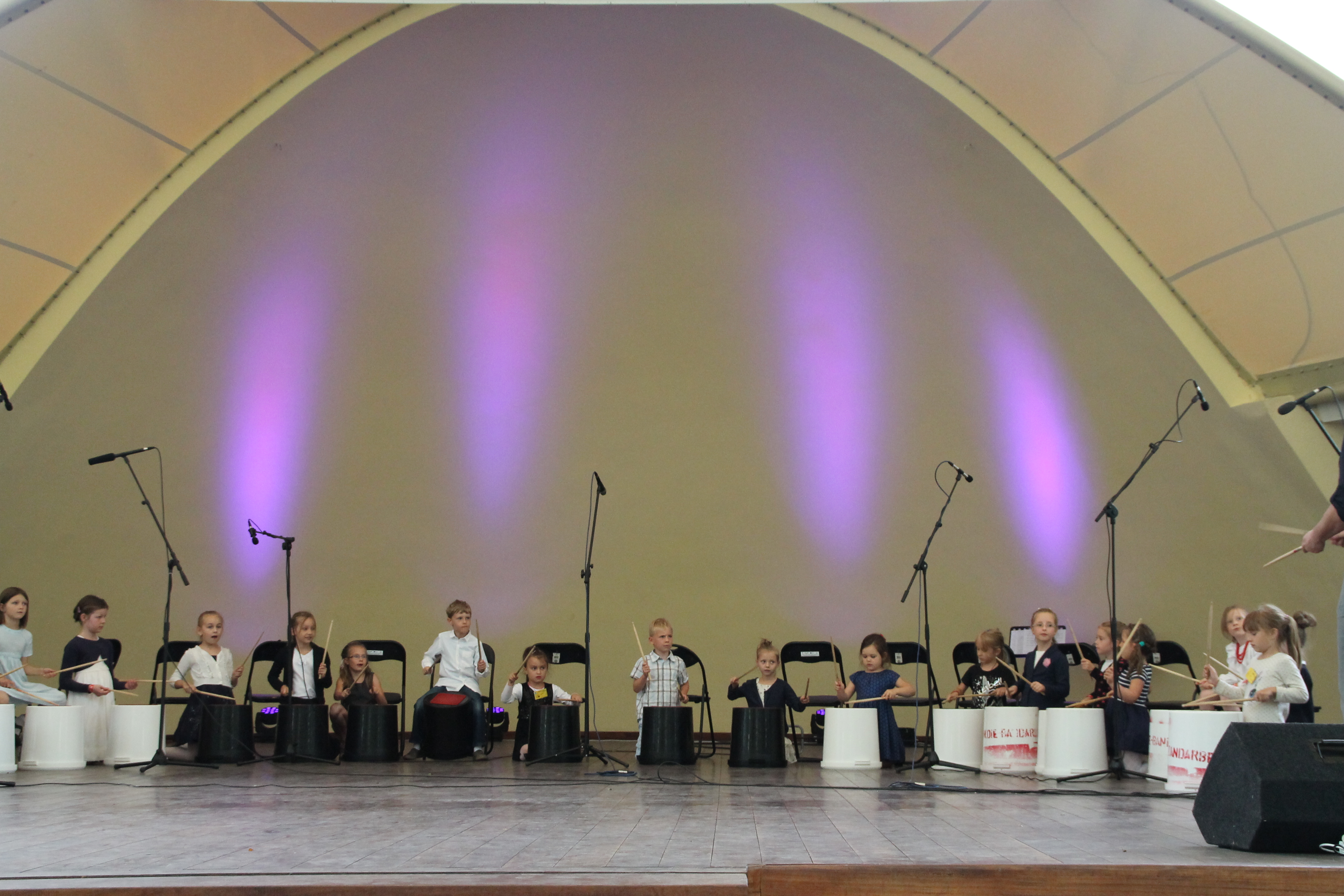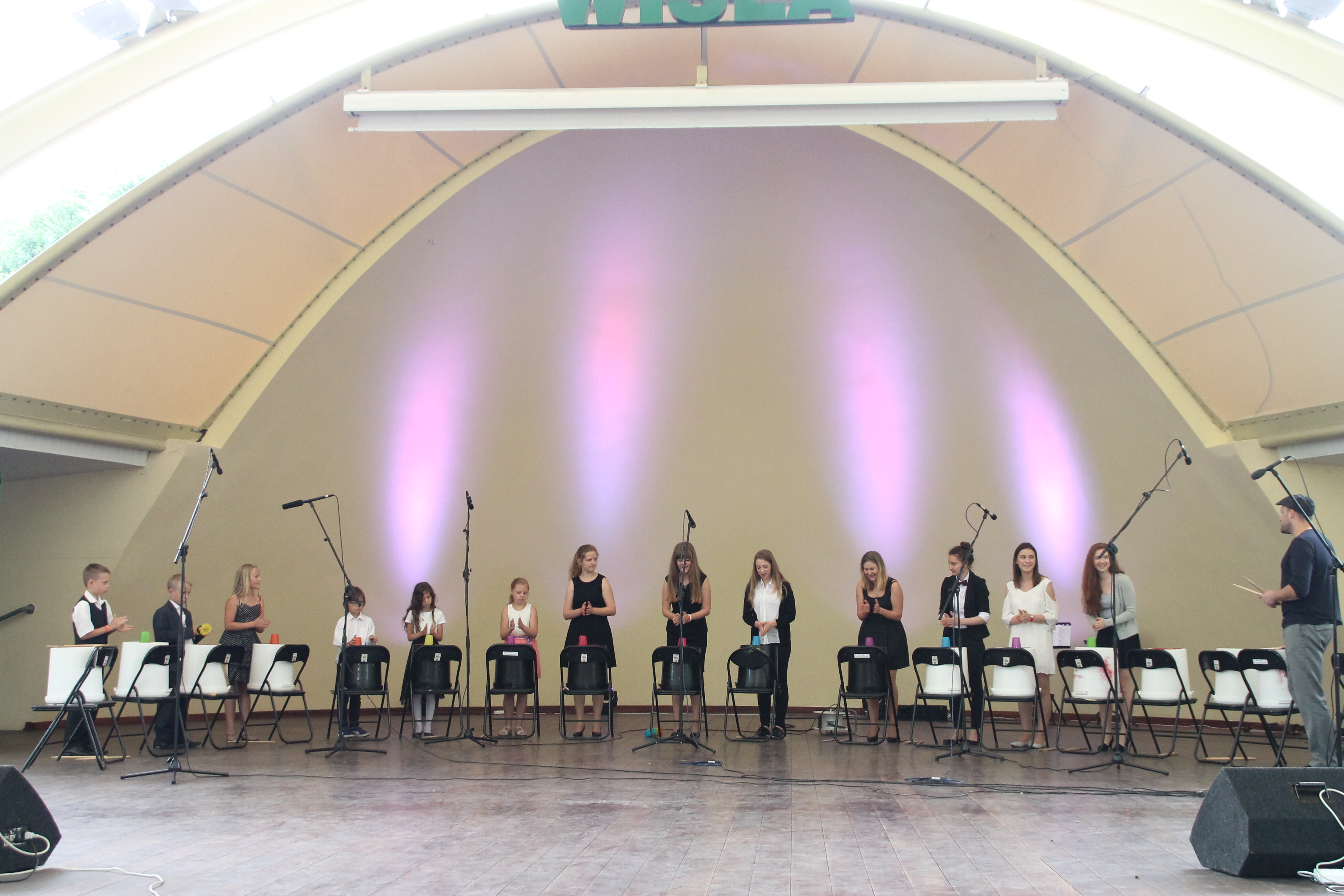 Uczestnicy warsztatów zaprezentowali również na scenie elementy Body Percussion oraz Bucket Drums, nad którymi pracowali przez cały tydzień warsztatów.