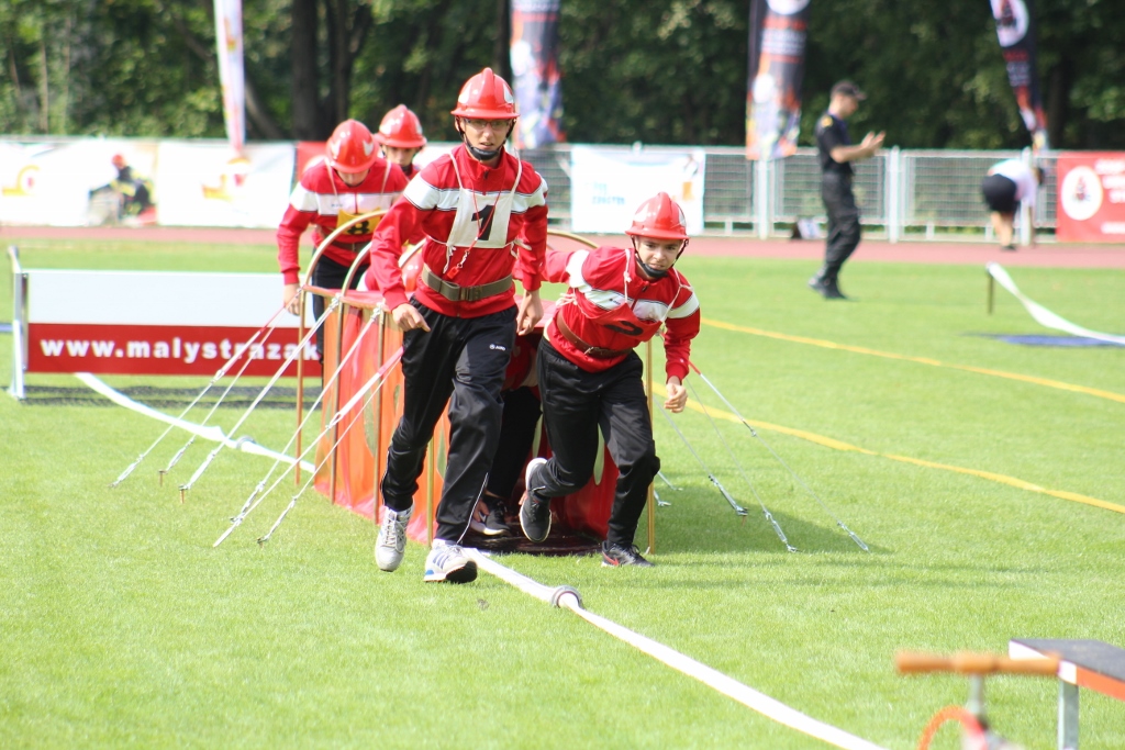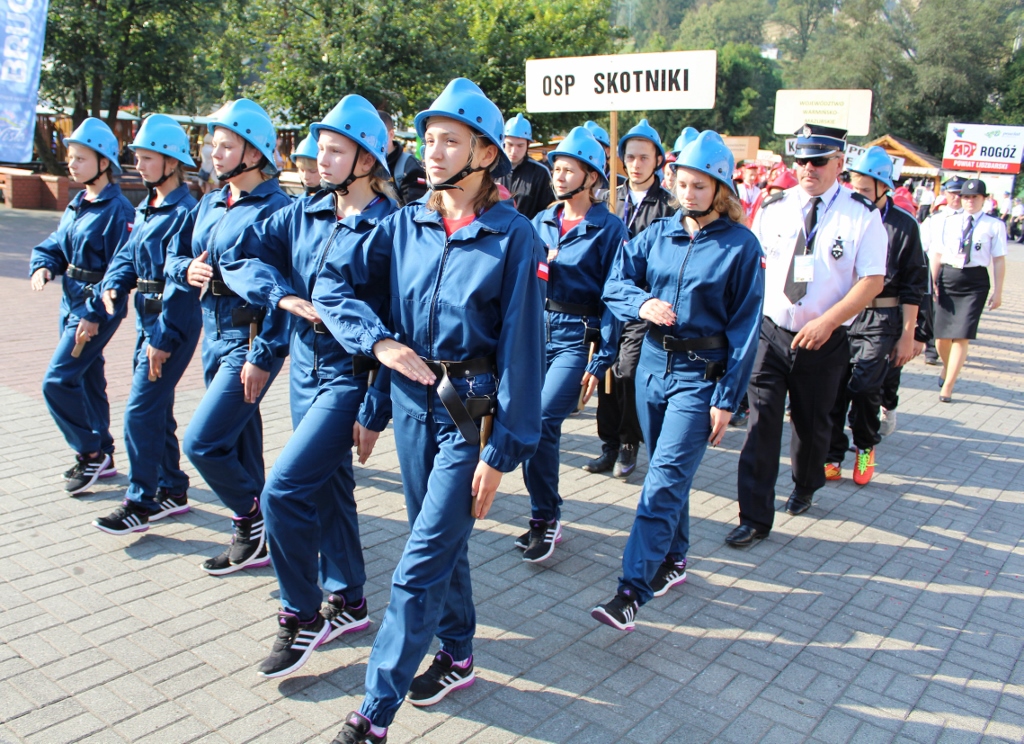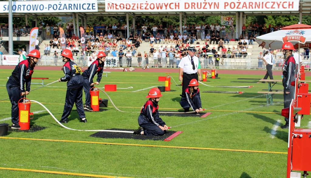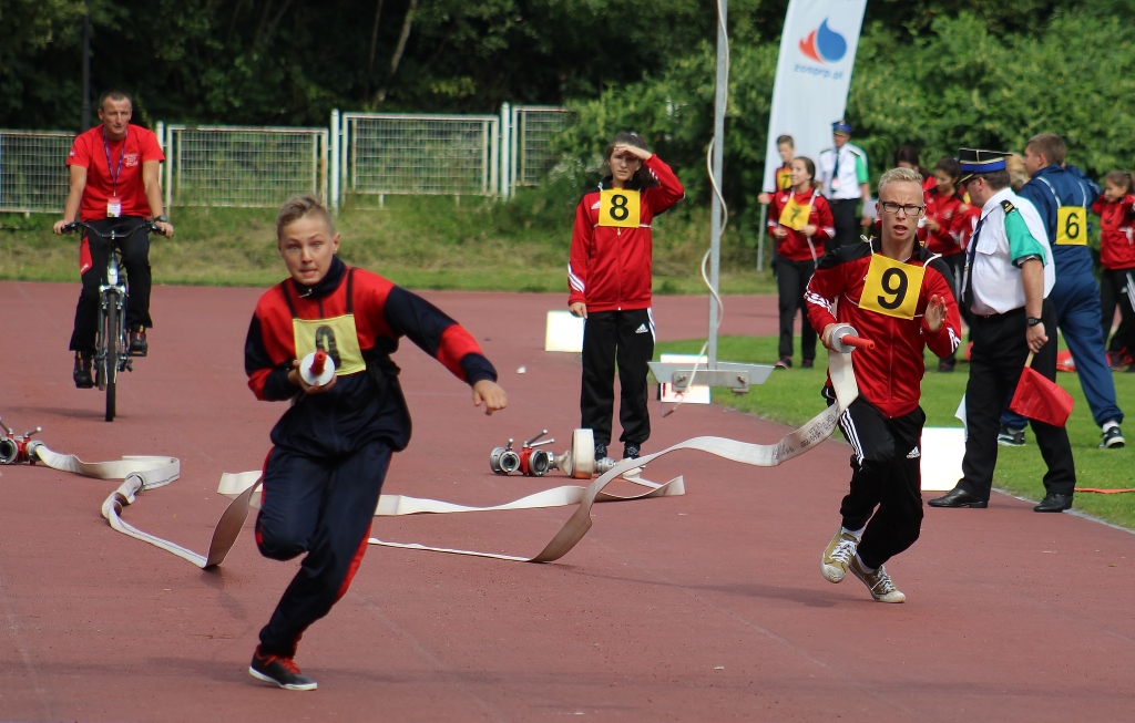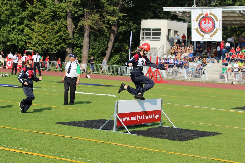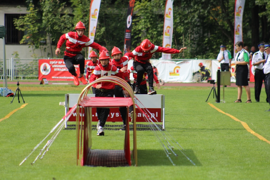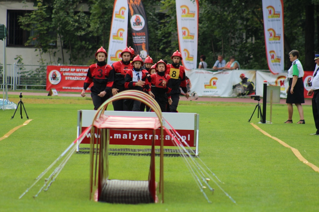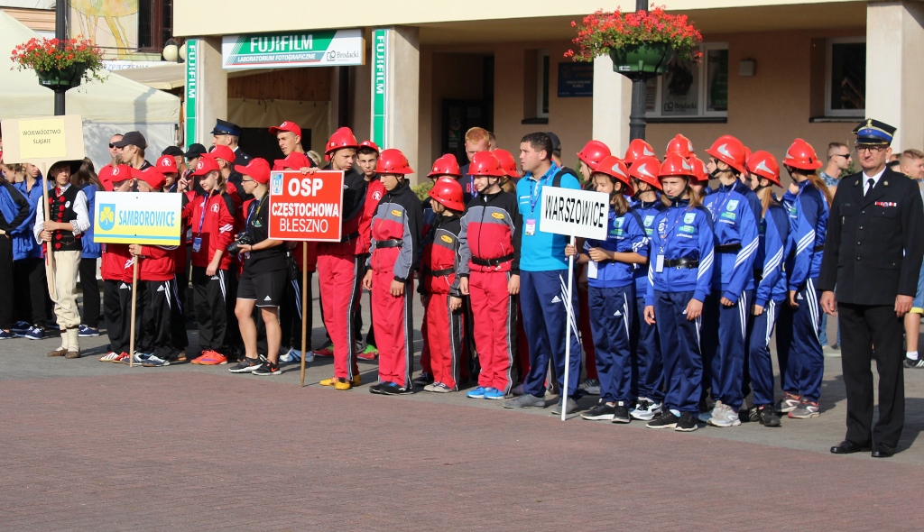 Po uroczystości na placu Hoffa wszystkie Młodzieżowe Drużyny Pożarnicze przegrupowały się na miejsce zawodów, czyli na stadion Ośrodka Przygotowań Paraolimpijskich przy ul. Olimpijskiej. Tam każda z drużyn rywalizowała w trzech konkurencjach. Były to musztra, ćwiczenie bojowe i sztafeta pożarnicza. Sędziowie skrupulatnie mierzyli czas i oceniali musztrę w wykonaniu drużyn. Zawody obserwował również Waldemar Pawlak, prezes Zarządu Głównego Związku OSP RP. Po zawodach ich uczestnicy przenieśli się do Amfiteatru im. Stanisława Hadyny, gdzie odbyła się prezentacja województw i koncert orkiestry OSP Mykanów.