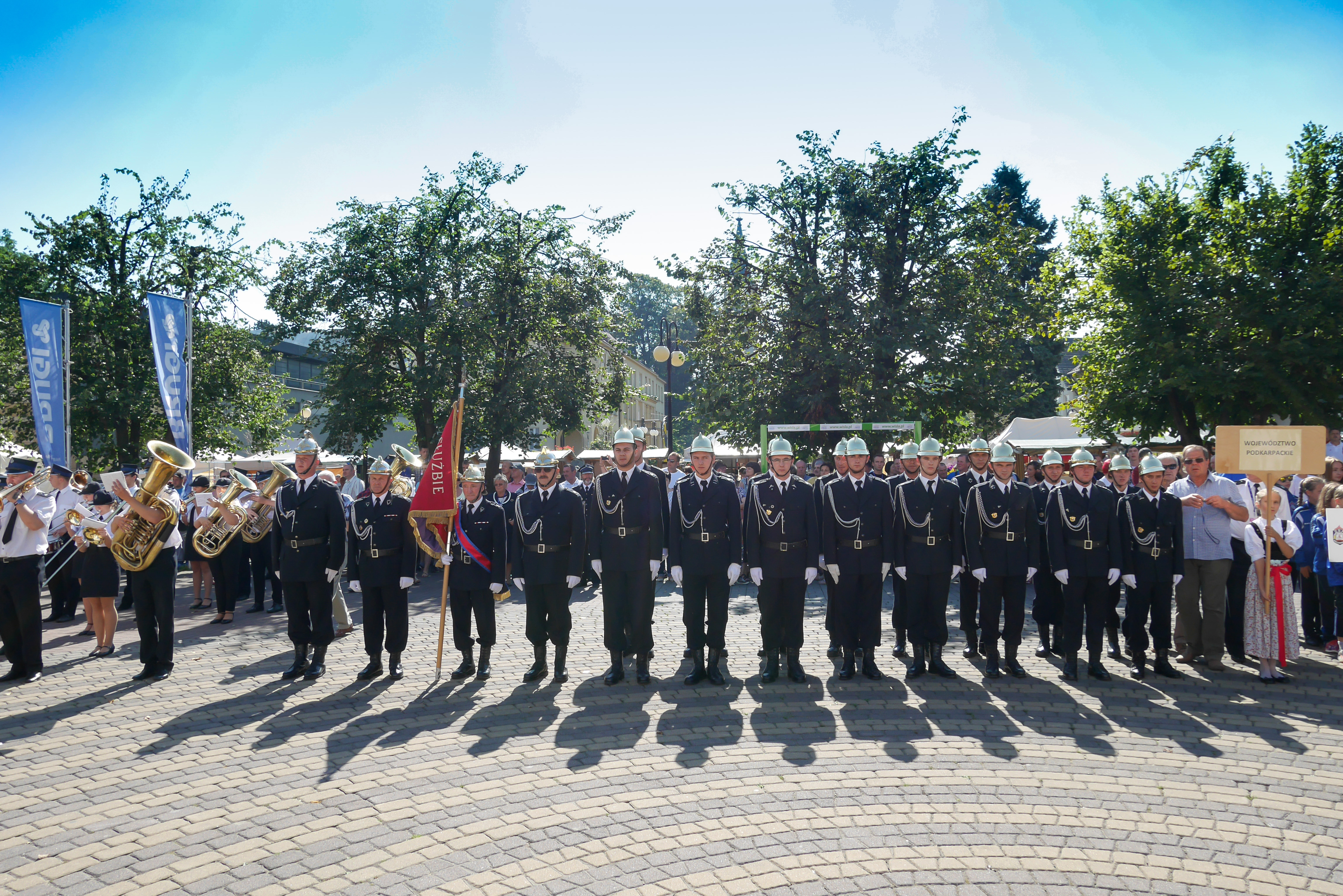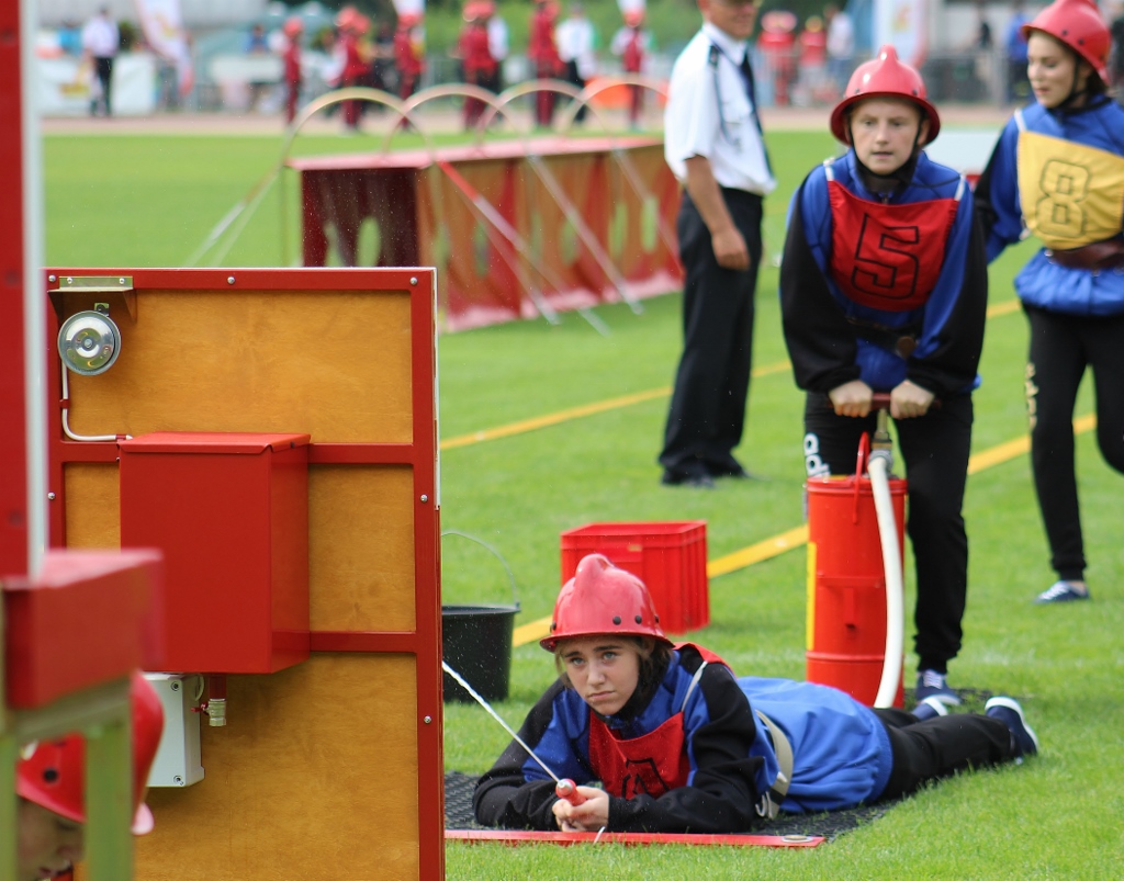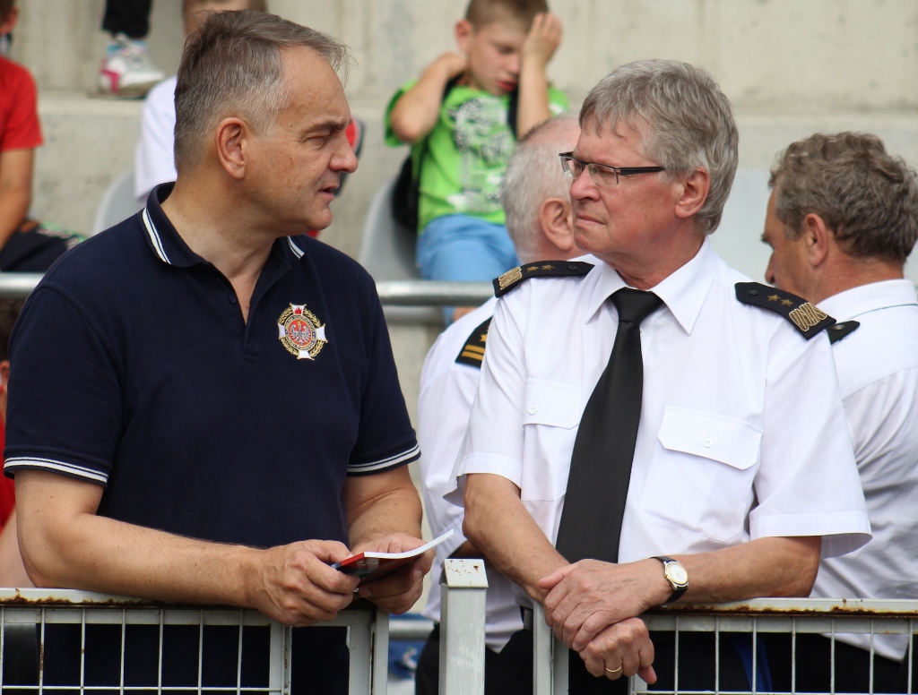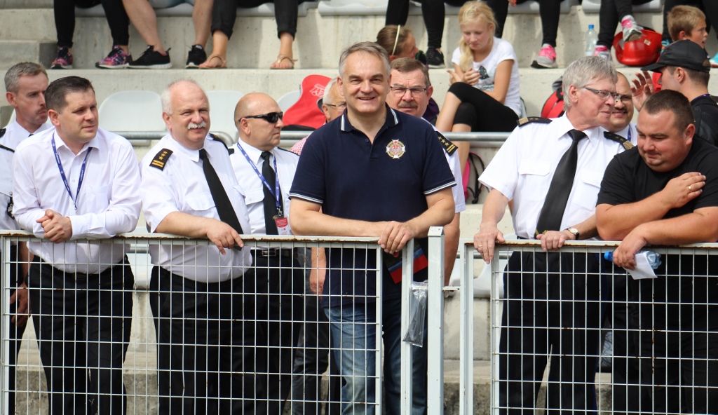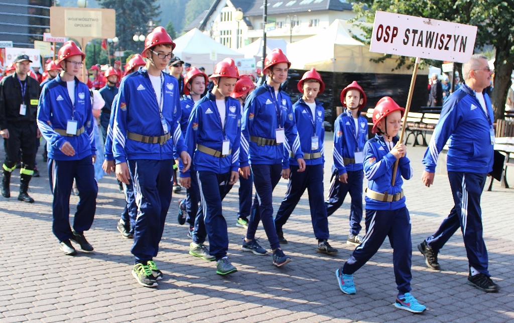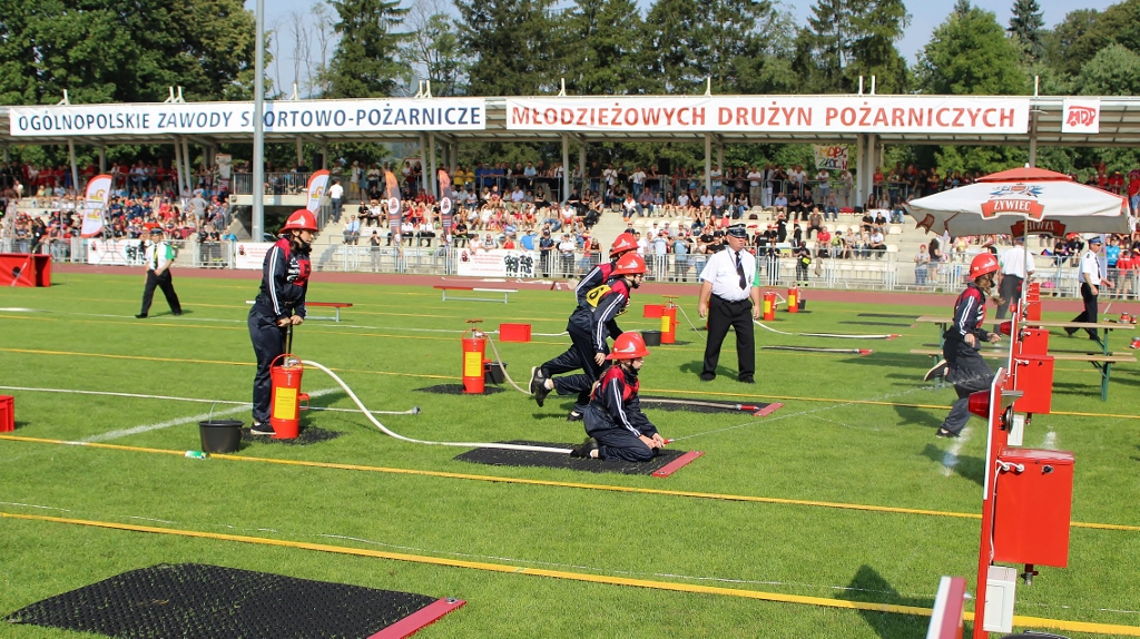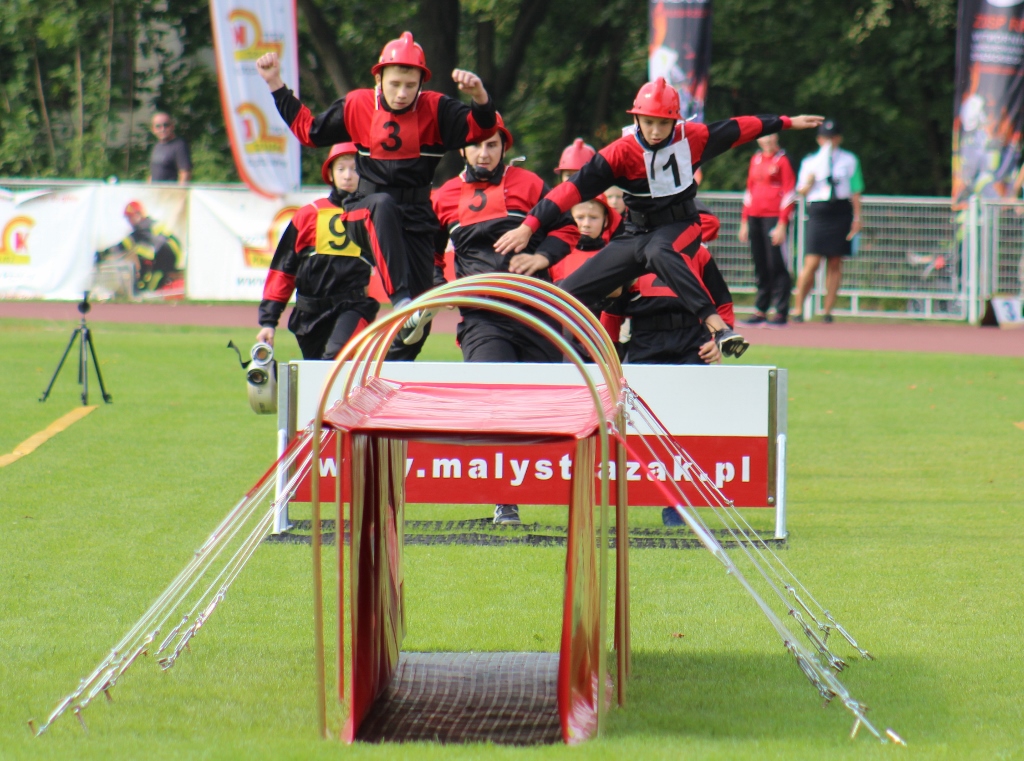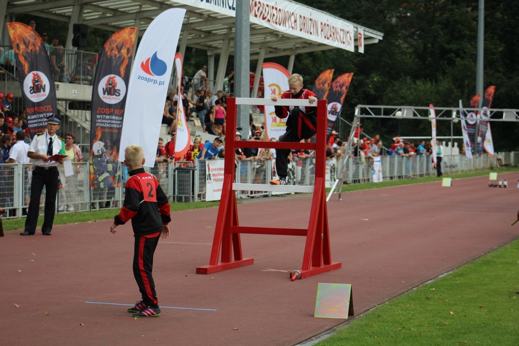 Po uroczystości na placu Hoffa wszystkie Młodzieżowe Drużyny Pożarnicze przegrupowały się na miejsce zawodów, czyli na stadion Ośrodka Przygotowań Paraolimpijskich przy ul. Olimpijskiej. Tam każda z drużyn rywalizowała w trzech konkurencjach. Były to musztra, ćwiczenie bojowe i sztafeta pożarnicza. Sędziowie skrupulatnie mierzyli czas i oceniali musztrę w wykonaniu drużyn. Zawody obserwował również Waldemar Pawlak, prezes Zarządu Głównego Związku OSP RP. Po zawodach ich uczestnicy przenieśli się do Amfiteatru im. Stanisława Hadyny, gdzie odbyła się prezentacja województw i koncert orkiestry OSP Mykanów.