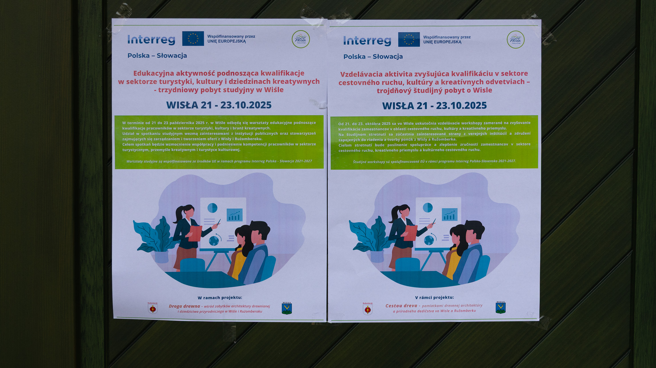 W dniach 21–23 października 2025 roku Wisła gościła delegację ze słowackiego miasta partnerskiego Rużemberk. Wizyta odbyła się w ramach projektu „Droga drewna wśród zabytków architektury drewnianej i dziedzictwa przyrodniczego w Wiśle i Rużomberku” (nr projektu PLSK.03.01-IP.01-0004/23), realizowanego w ramach programu Interreg Polska–Słowacja. Celem trzydniowego pobytu studyjnego było podniesienie kwalifikacji uczestników w sektorze turystyki, kultury i dziedzictwa kreatywnego oraz wymiana doświadczeń między polskimi i słowackimi partnerami.