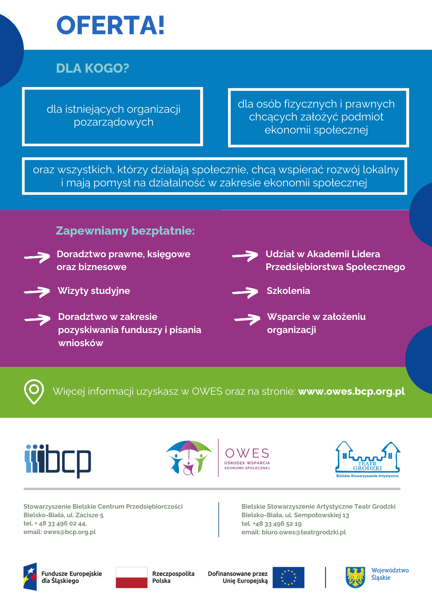 Dodatkowo organizacje pozarządowe mogą korzystać ze szkoleń, doradztwa i wziąć udział w Akademii Lidera Przedsiębiorstwa Społecznego oraz wizytach studyjnych. Oferta OWES skierowana jest do organizacji pozarządowych, grup inicjatywnych oraz wszystkich osób zainteresowanych tworzeniem podmiotów łączących przedsiębiorczość z celami społecznymi.