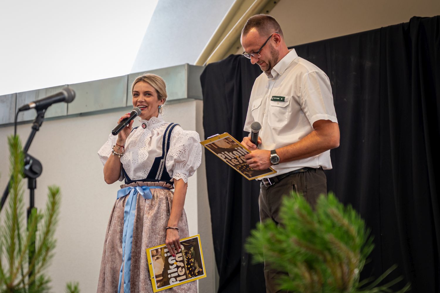 Popołudniowa część Pikniku przeniosła się do Amfiteatru im. Stanisława Hadyny, gdzie uczestników powitał burmistrz Tomasz Bujok. Na scenie wystąpił Zespół Regionalny Mała Wisła oraz Kapela Mała Wisła. W programie znalazły się również pokaz psów myśliwskich, konkurs wiedzy o lesie, a także prelekcja na temat grzybów prowadzona przez znanego mykologa – Justynę Kołkę. Całość dopełnił koncert Kapeli Zbójnicy.