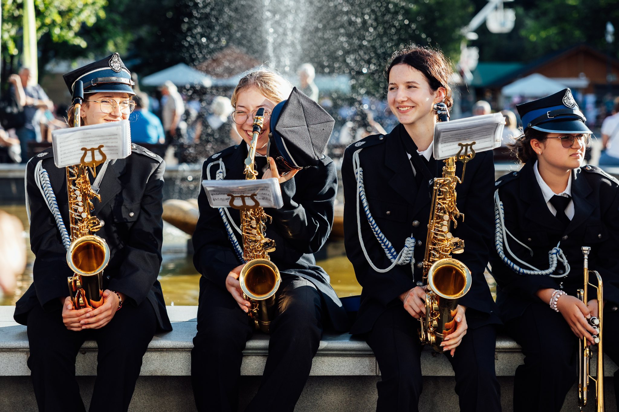 Po południu festiwal przeniósł się na wiślański deptak, gdzie odbył się konkurs gry w marszu. Kolorowe mundury, rytmiczne dźwięki i uśmiechy muzyków oraz publiczności stworzyły wyjątkową, radosną atmosferę.