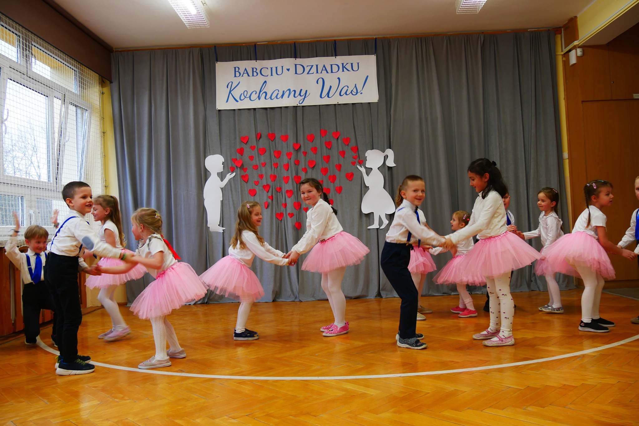 28.01.2025 roku gościliśmy u siebie w szkole wyjątkowe osoby, Dziadków i Babcie naszych uczniów. Z tej okazji dzieci oddziału przedszkolnego oraz uczniowie klas 1-3 przygotowali akademię, którą poprowadził Adam Pilch z klasy siódmej, przewodniczący Samorządu Uczniowskiego. Wszystkich zebranych przywitał piękną grą na saksofonie Andrzej Raszka z klasy drugiej. Nasi uczniowie zagrali na różnych instrumentach: klasa druga na dzwonkach chromatycznych, klasa pierwsza na bum bum rurkach i przedszkolaki na instrumentach perkusyjnych. Uczniowie złożyli Dziadkom serdeczne rymowane życzenia i zaśpiewali piosenki. Klasa trzecia przygotowała piosenkę: „Dzień Babci i Dziadka”, klasa pierwsza „Pomaluję cały świat”, a zerówka: „Podzielone serce”. Nasi najmłodsi zaprezentowali jeszcze rock&rolowy taniec „Wesoła gromadka’, który zauroczył wszystkich.