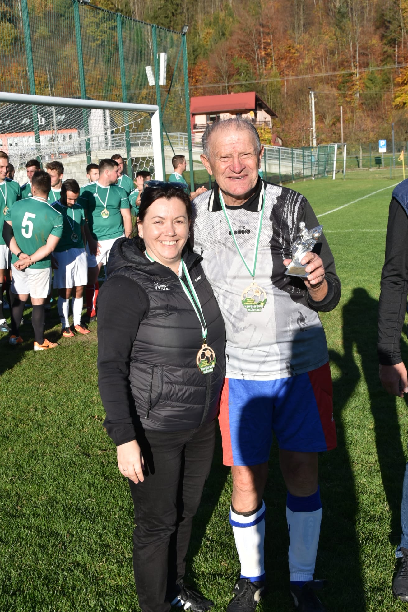 Był to również idealny moment, aby docenić osoby związane mocno z tą inicjatywą. Okolicznościowe statuetki z wyrazami wdzięczności otrzymał pan Jan Wrzecionko – najstarszy uczestnik meczu, który w tym roku skończył 80 lat, a także pan Leszek Szalbot – wieloletni koordynator meczu.