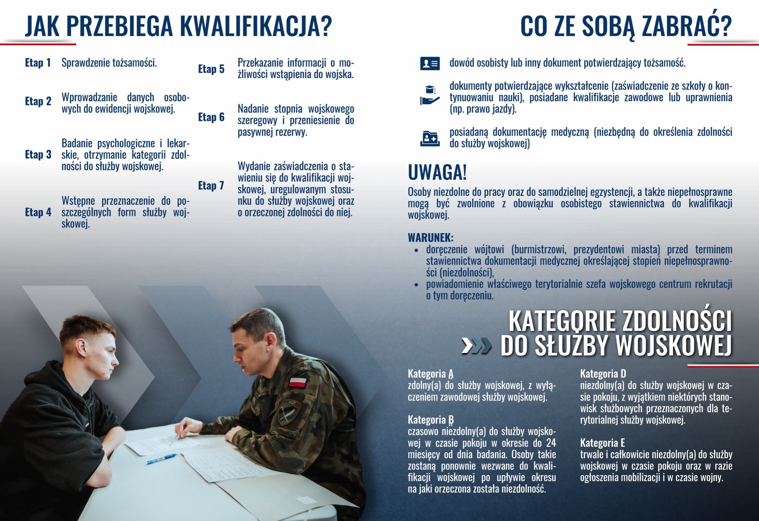 Kwalifikacja wojskowa w 2025 r. dla mężczyzn z terenu gminy Wisła urodzonych w 2006 r. oraz mężczyzn, którzy nie posiadają określonej kategorii zdolności do czynnej służby wojskowej, odbędzie się w dniach 10 i 11 marca 2025 r., natomiast dla kobiet w dniu 28 marca 2025 r.