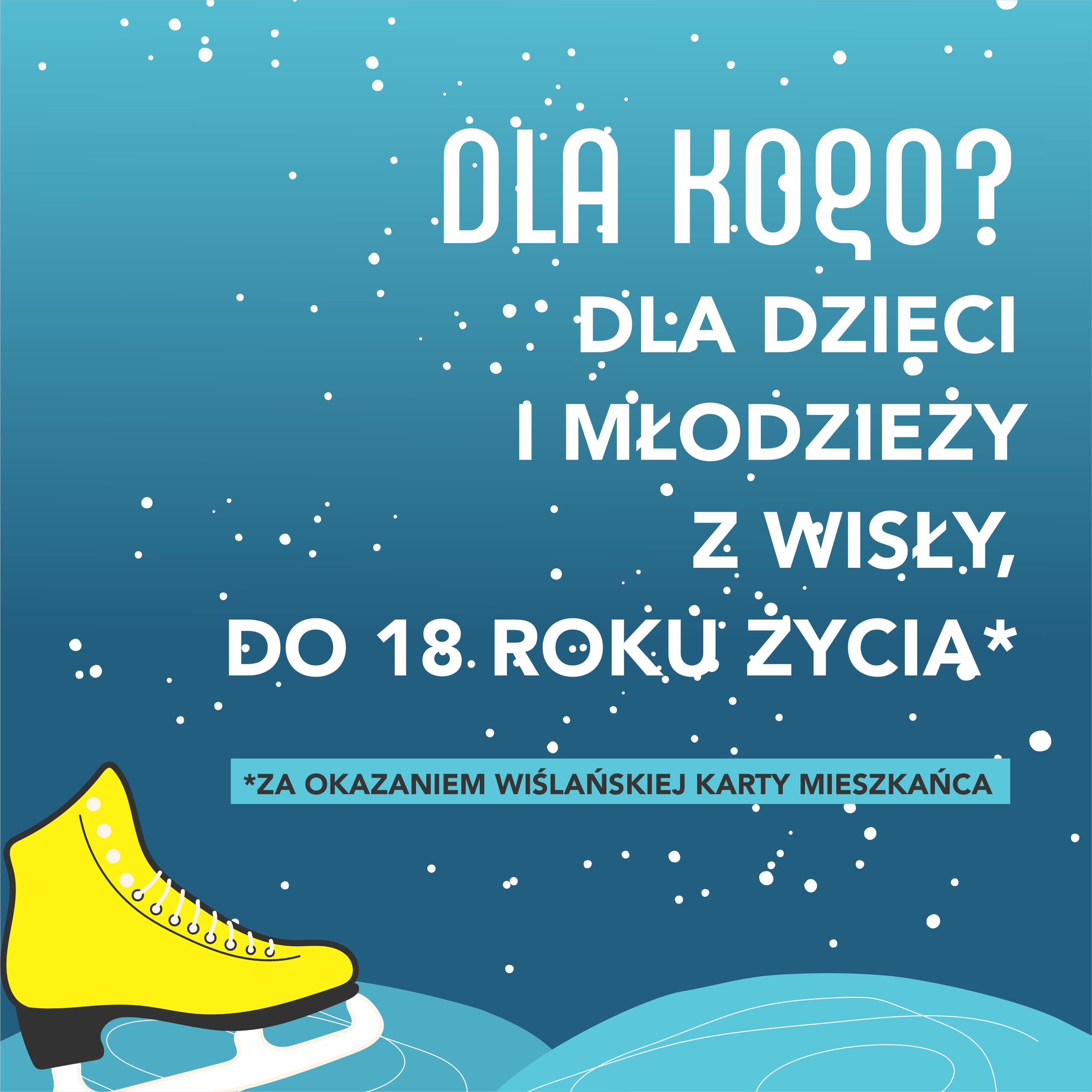 Mamy świetną wiadomość dla naszych najmłodszych mieszkańców! Od soboty 15 lutego, aż do niedzieli 2 marca za okazaniem Wiślańskiej Karty Mieszkańca wszystkie wiślanki i wiślanie poniżej 18 roku życia wejdą na lodowisko za darmo! Co więcej, nie będą płacić też za wypożyczenie łyżew!