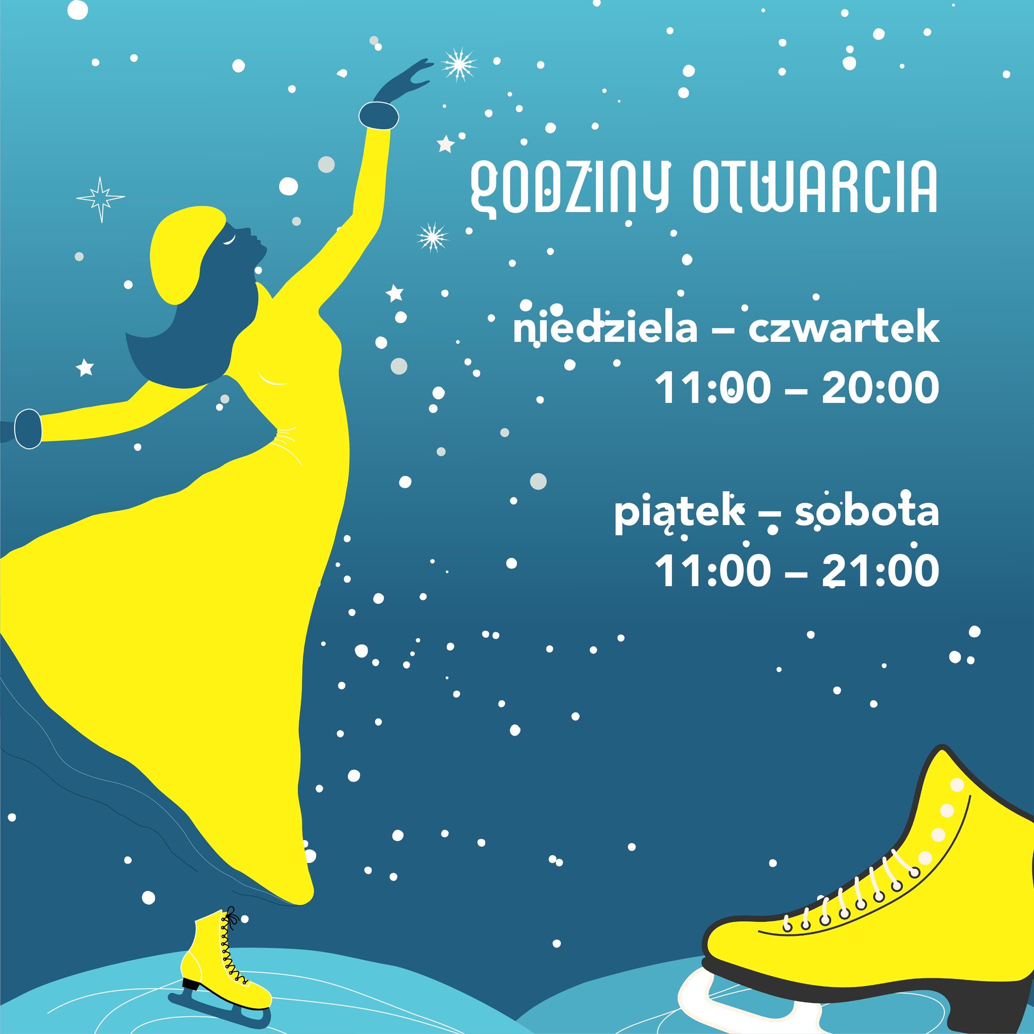 Lodowisko Wisła czynne jest codziennie od 11:00 do 20:00, a w piątki i soboty nawet do 21:00! Zachęcamy do aktywności na świeżym powietrzu!