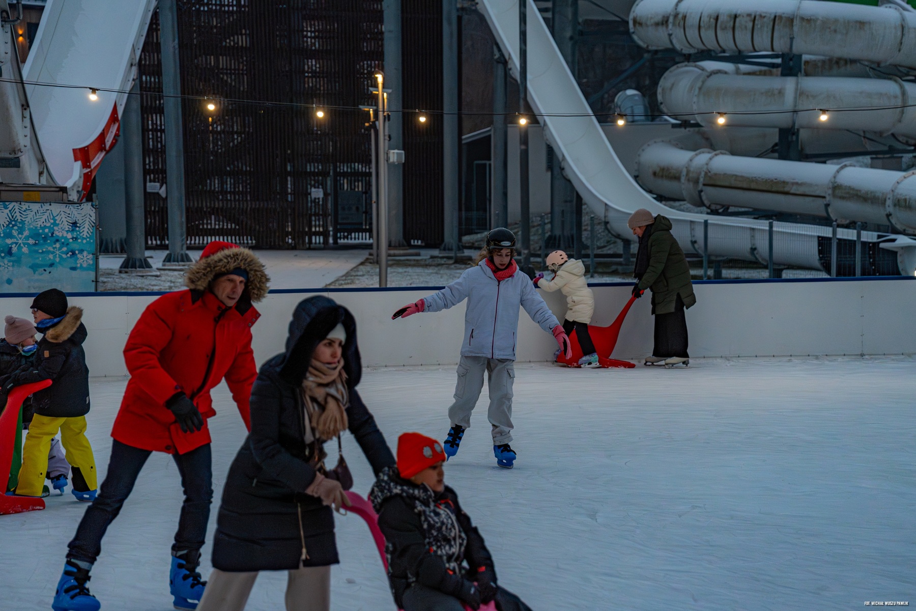 Na miejscu znajduje się wypożyczalnia łyżew – od rozmiaru 25 do 47. Bezpłatnie można też wypożyczyć kaski, a na lodowisku dostępne są misie i wieloryby, pomagające początkującym.