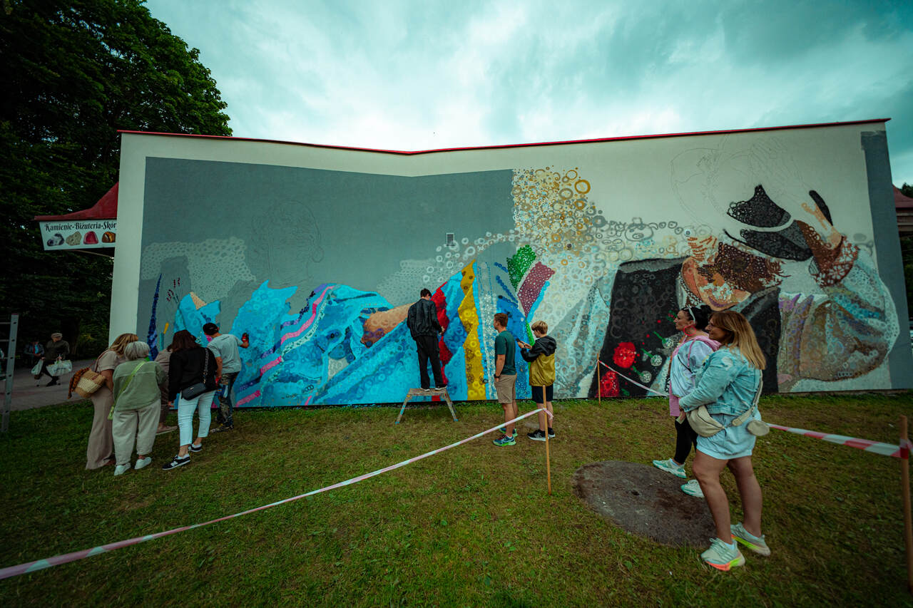Dokładnie 1075 osób - mieszkańców, turystów i uczestników Tygodnia Kultury Beskidzkiej, zostawiło tu swój kolor i swoją obecność. Wspólnie z artystą Mgr Morsem powstał obraz, w którym widać codzienność naszego miasta i różnorodność kultur z różnych stron świata.