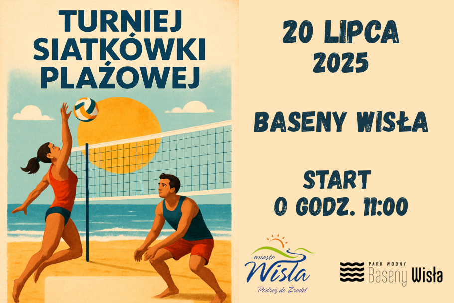Zachęcamy drużyny z wiślańskich dolin do zgłaszania się na Turniej Siatkówki Plażowej "O Puchar Burmistrza Miasta Wisła", który odbędzie się w niedzielę 20 lipca w Parku Wodnym Baseny Wisła.