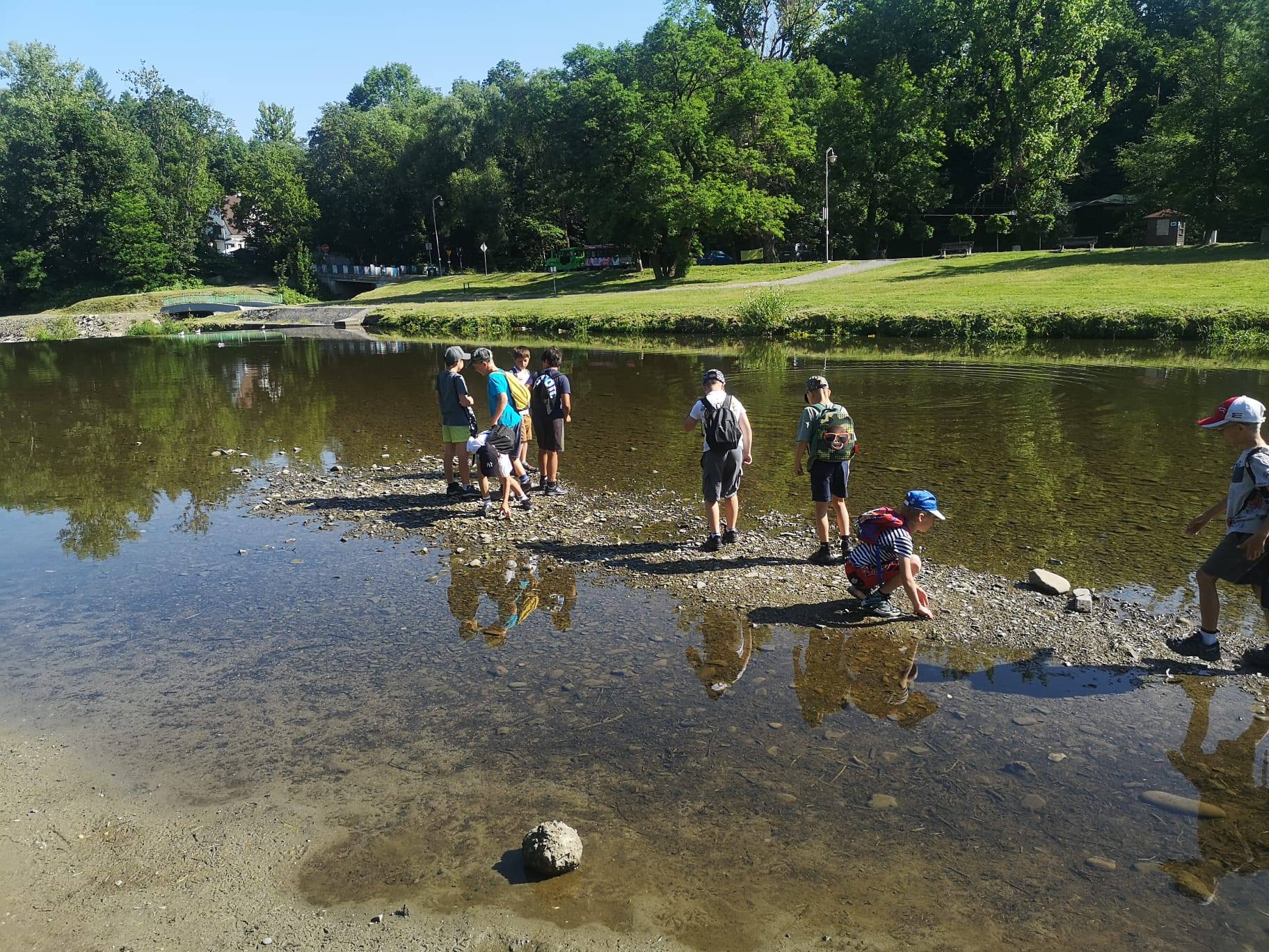 W podobną podróż w czwartek wybrała się klasa 2. A że był to bardzo upalny dzień, uczniowie pomoczyli też nogi w rzece Wiśle. Cóż to była za frajda!