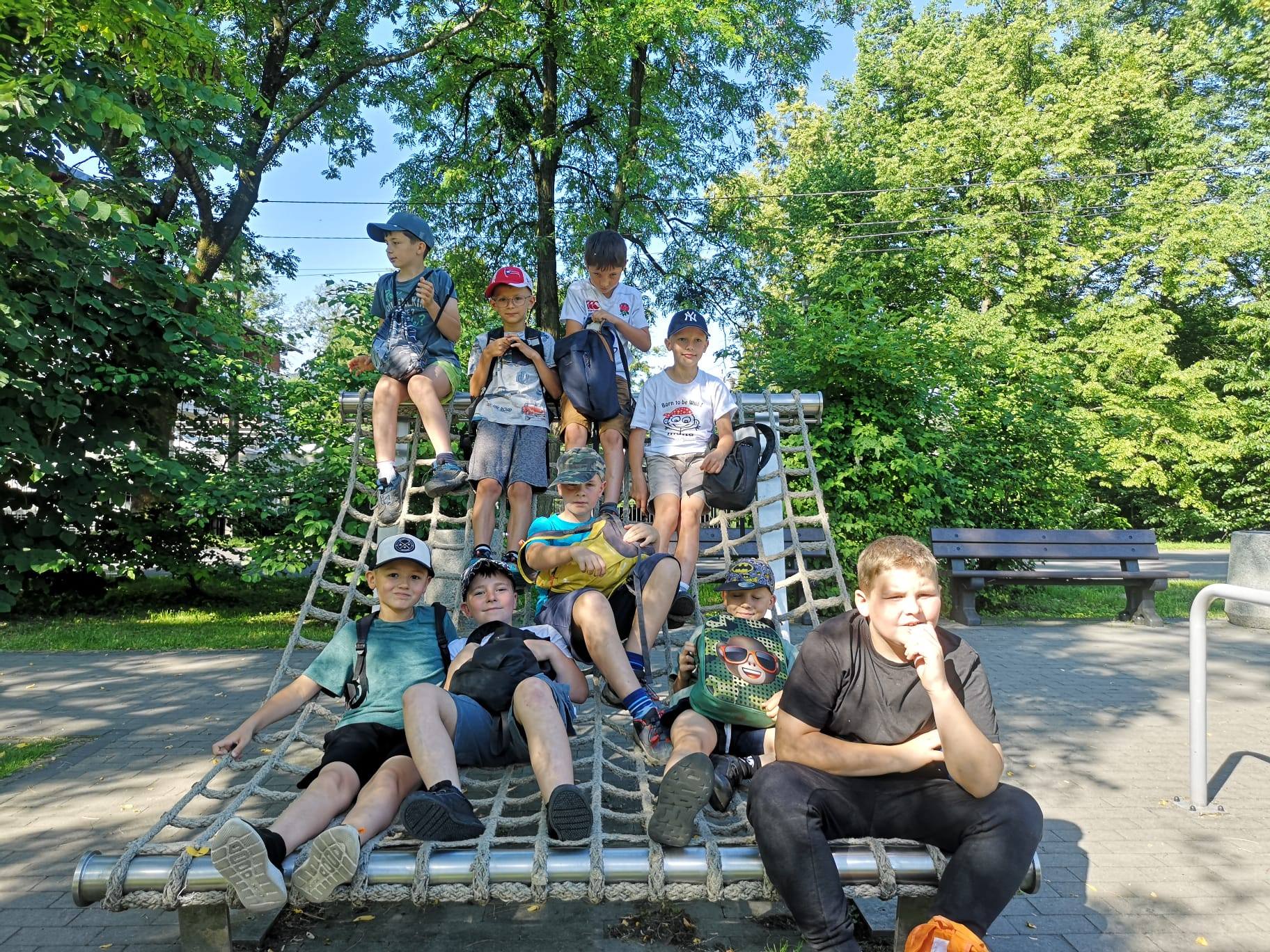 We wtorek, 24 czerwca, klasy 1–3 pojechały do Ośrodka H2O w Kiczycach, gdzie wraz ze wspaniałą animatorką Julką wracały do korzeni, czyli zabaw z dawnych lat. Uczniowie poznali m.in. zabawę w kapsle i kulki. W tym samym dniu klasy 4–8 pojechały na wycieczkę krajoznawczą do Ojcowa, gdzie zobaczyły Zamek w Pieskowej Skale, Maczugę Herkulesa, ekspozycję przyrodniczą Ojcowskiego Parku Narodowego oraz Jaskinię Nietoperzową.