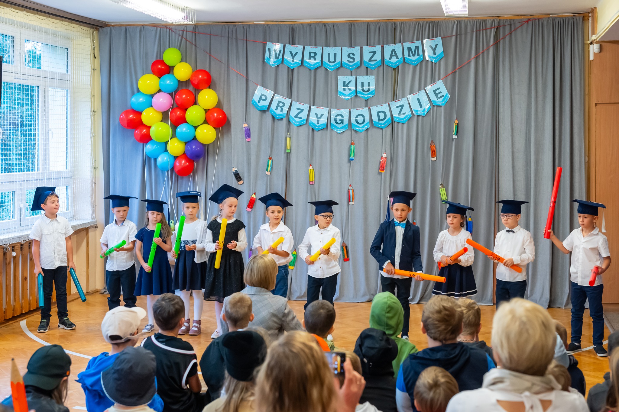 Po miesiącu nauki i wzajemnego poznawania uczniowie klasy pierwszej byli gotowi, żeby zostać pasowanymi na uczniów naszej szkoły. Uroczystość odbyła się 3.10.2024 roku i była wielkim wydarzeniem dla naszej szkolnej społeczności. Pierwszaki odświętnie ubrane zaprezentowały swoją wiedzę o Polsce, o literach alfabetu na podstawie wiersza Juliana Tuwima „Abecadło”, o zasadach zachowania w szkole i na ulicy. Uczniowie zaśpiewali pięknie piosenki: „Uroczyste ślubowanie” i „Hej, ho pierwsza klasa”, a także zagrali na bum bum rurkach prostą melodię. Klasa druga i trzecia przypomniała pierwszakom o ważnych szkolnych zasadach recytując wiersze i śpiewając rapowaną piosenkę: „Rap o zasadach”. Następnie Pani Dyrektor została poproszona o przystąpienie do uroczystego aktu pasowania. Wielkim ołówkiem każdego pierwszaka pasowała na ucznia Szkoły Podstawowej nr 2 im. Adama Mickiewicza w Wiśle.