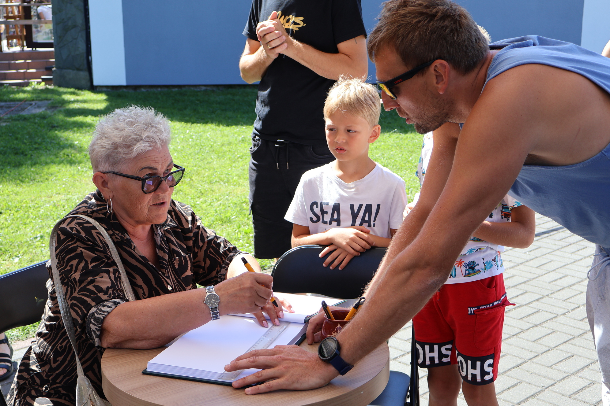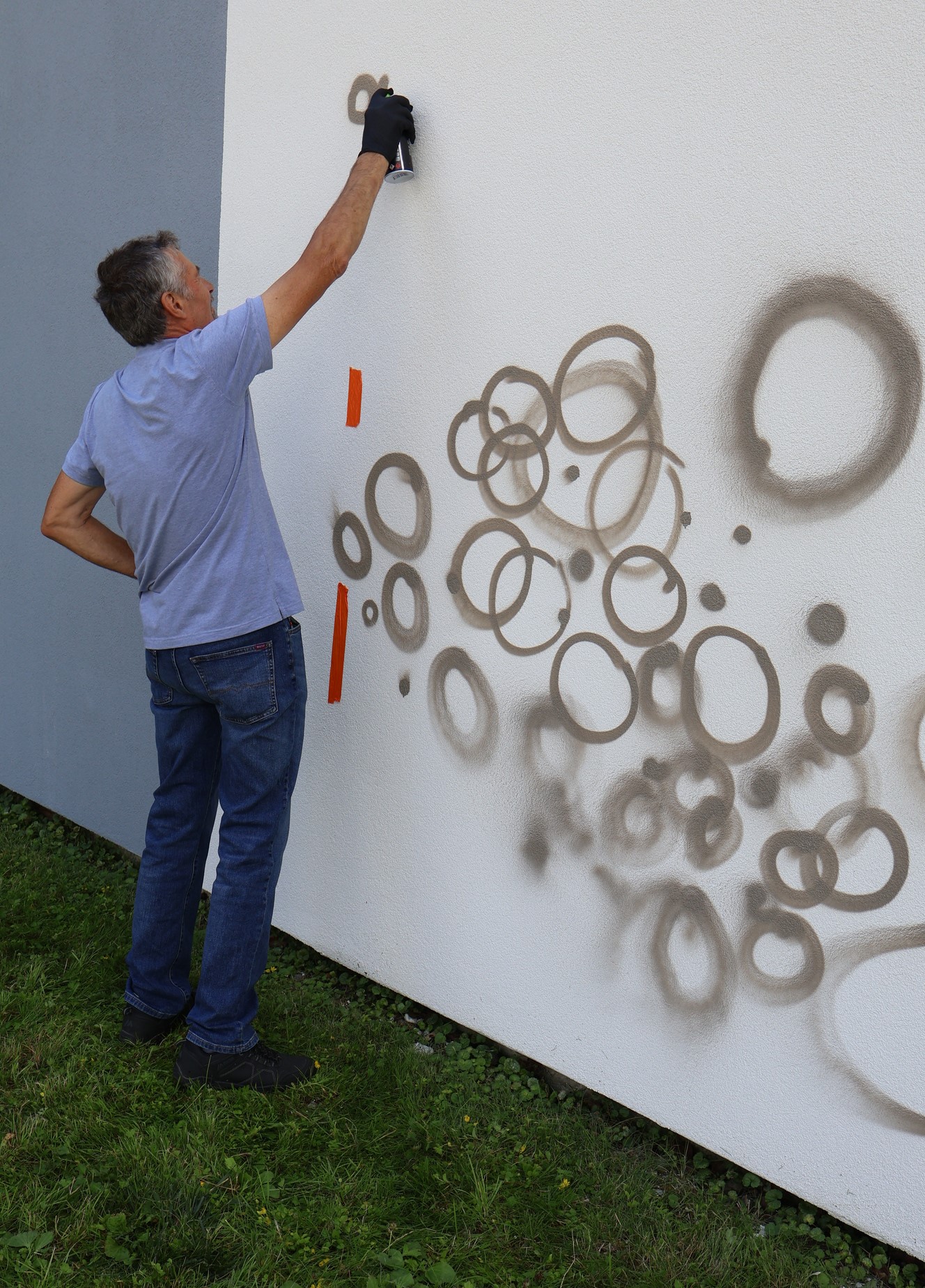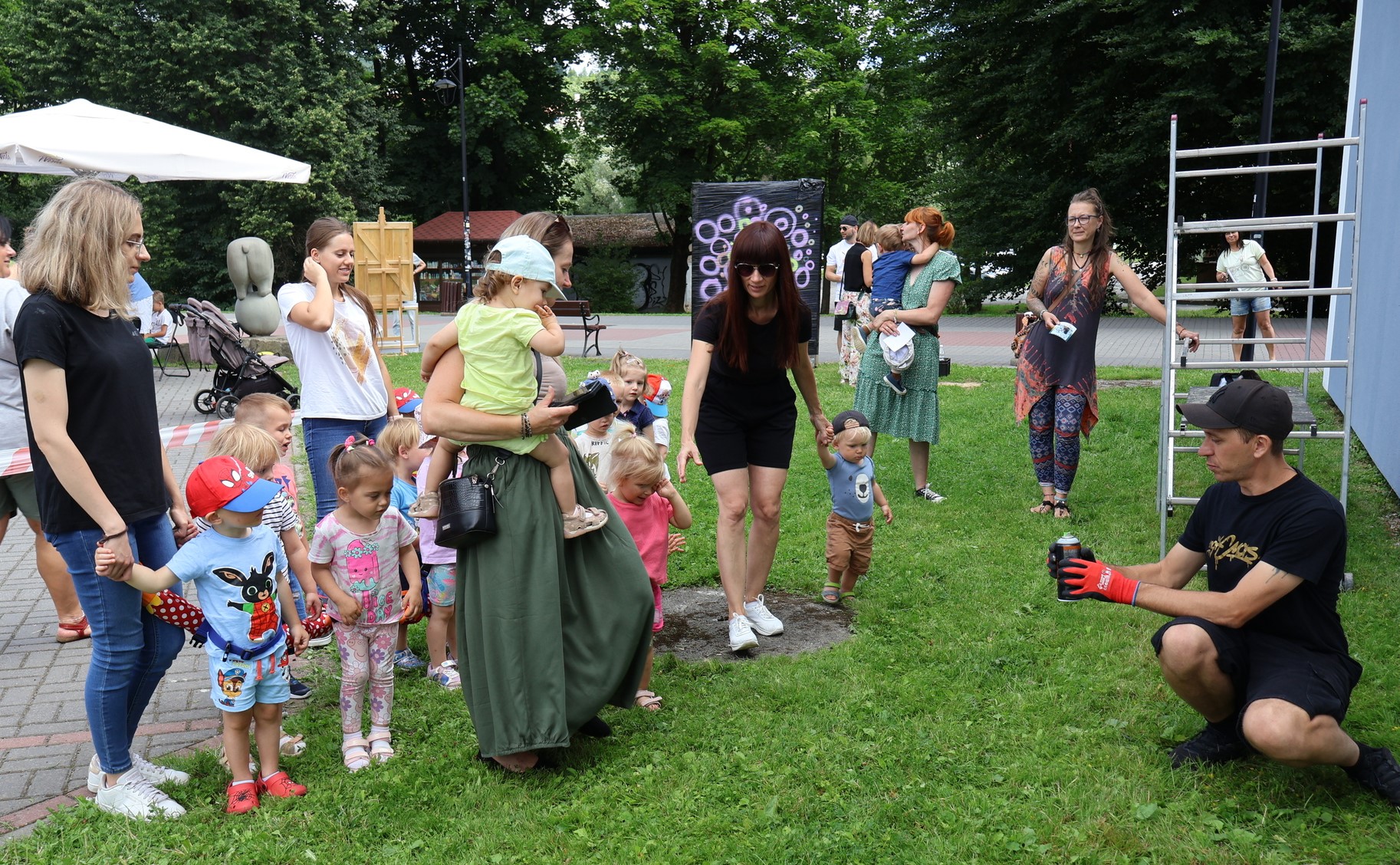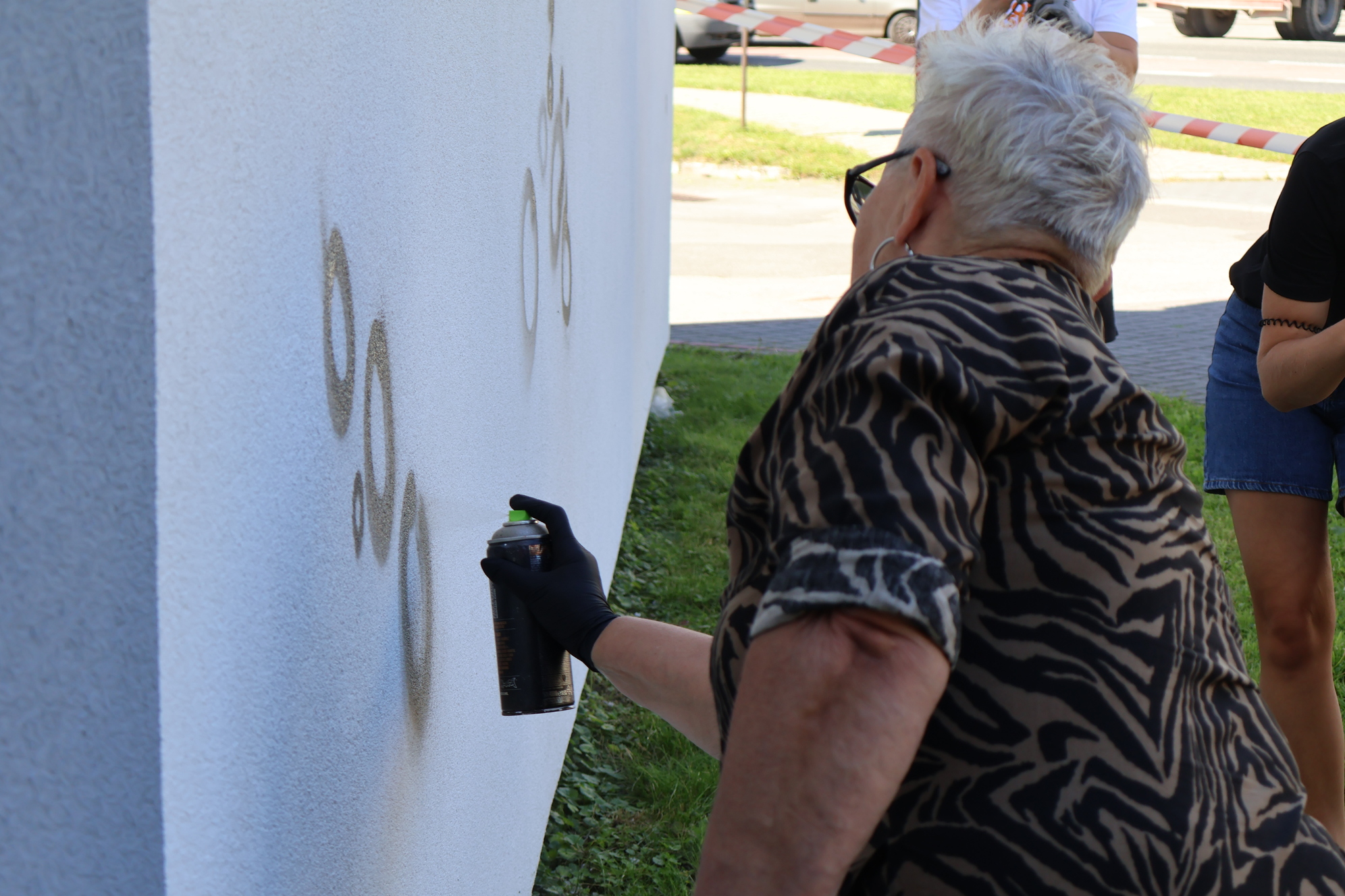 Już od pierwszych chwil na placu panowała niezwykła atmosfera. Było widać emocje – od ekscytacji po lekką tremę przed pierwszym "pociągnięciem pędzla". Mgr Mors z ogromnym wyczuciem wprowadzał uczestników w swój autorski styl pracy, a kolorowe kółka – charakterystyczny element jego twórczości – zaczęły wypełniać ścianę barwami, tworząc pierwsze warstwy tej niezwykłej opowieści.