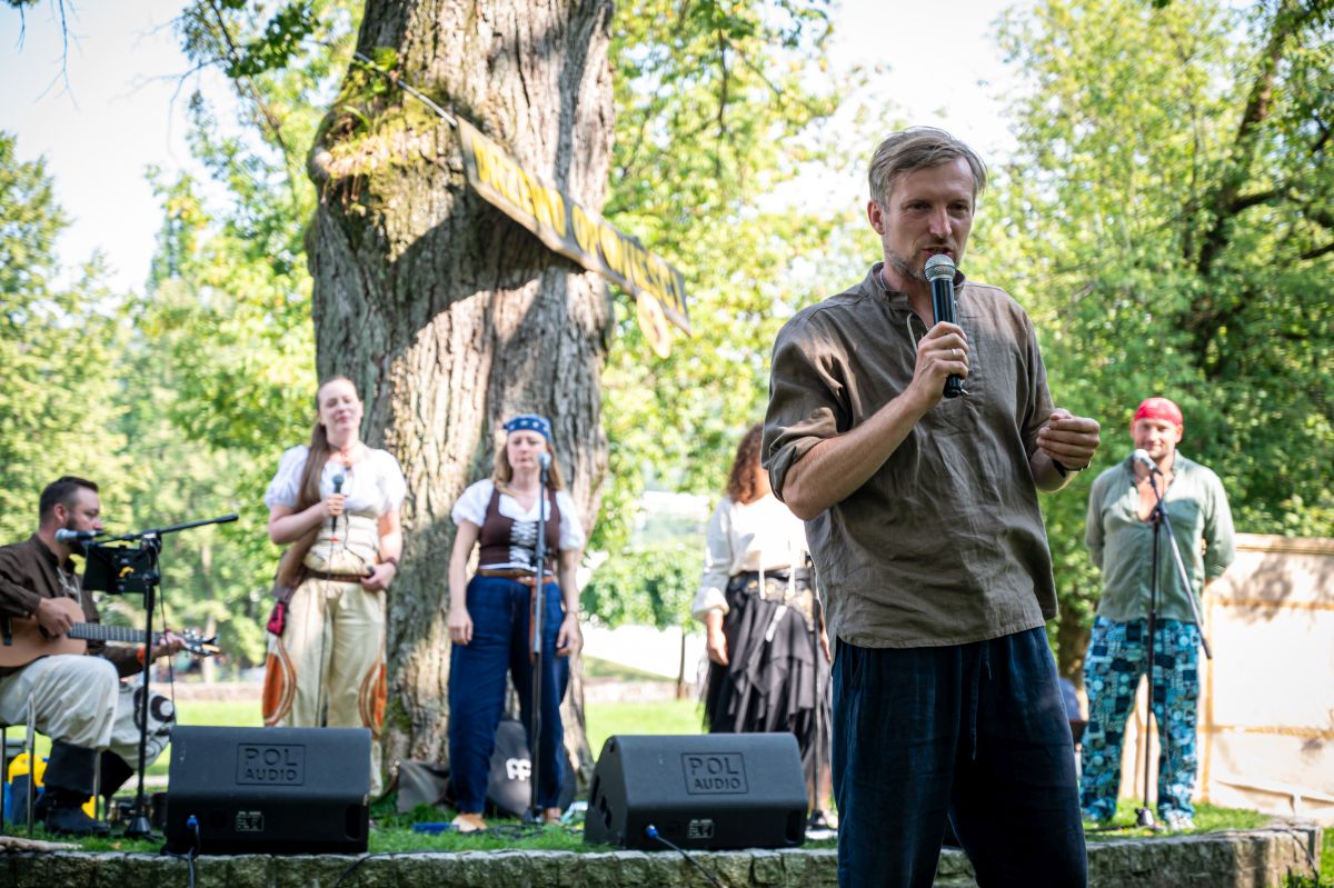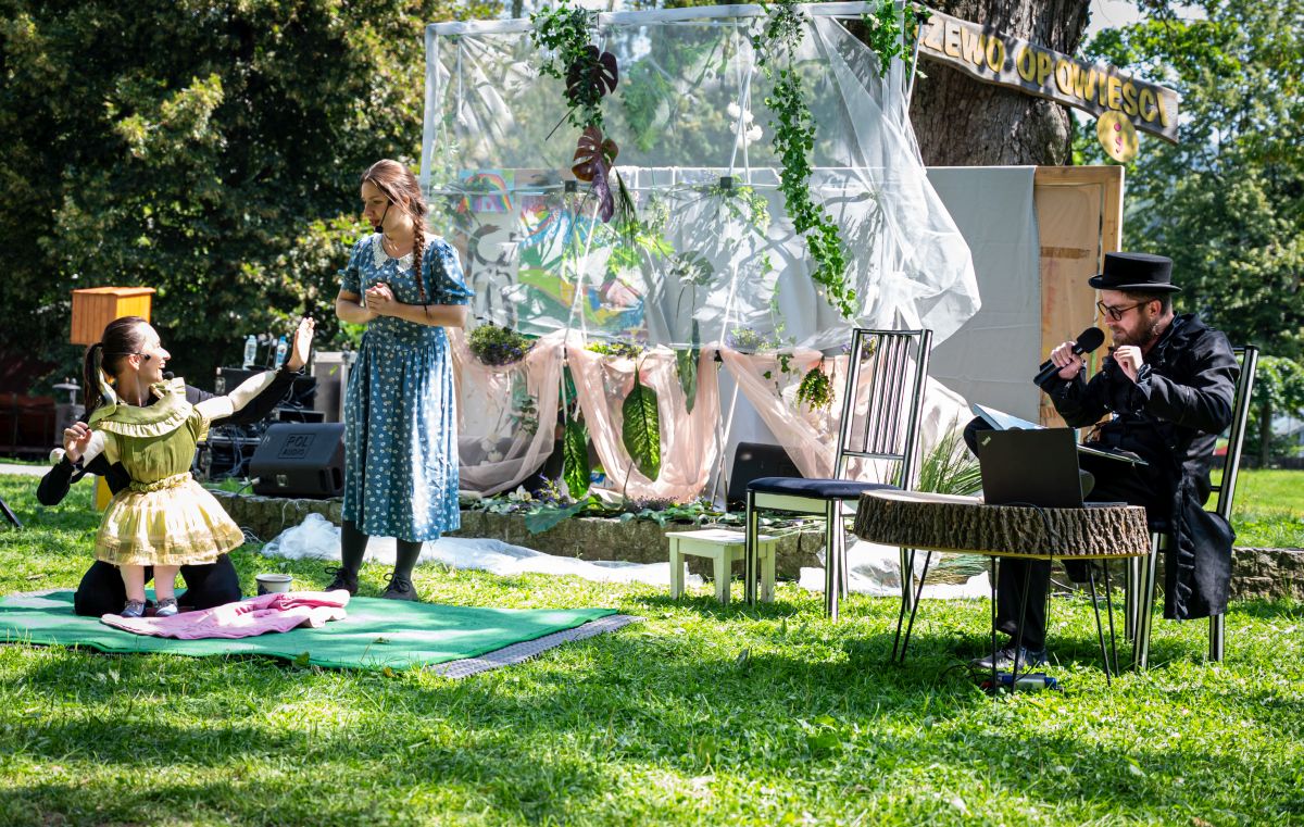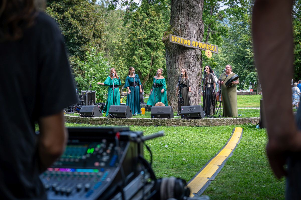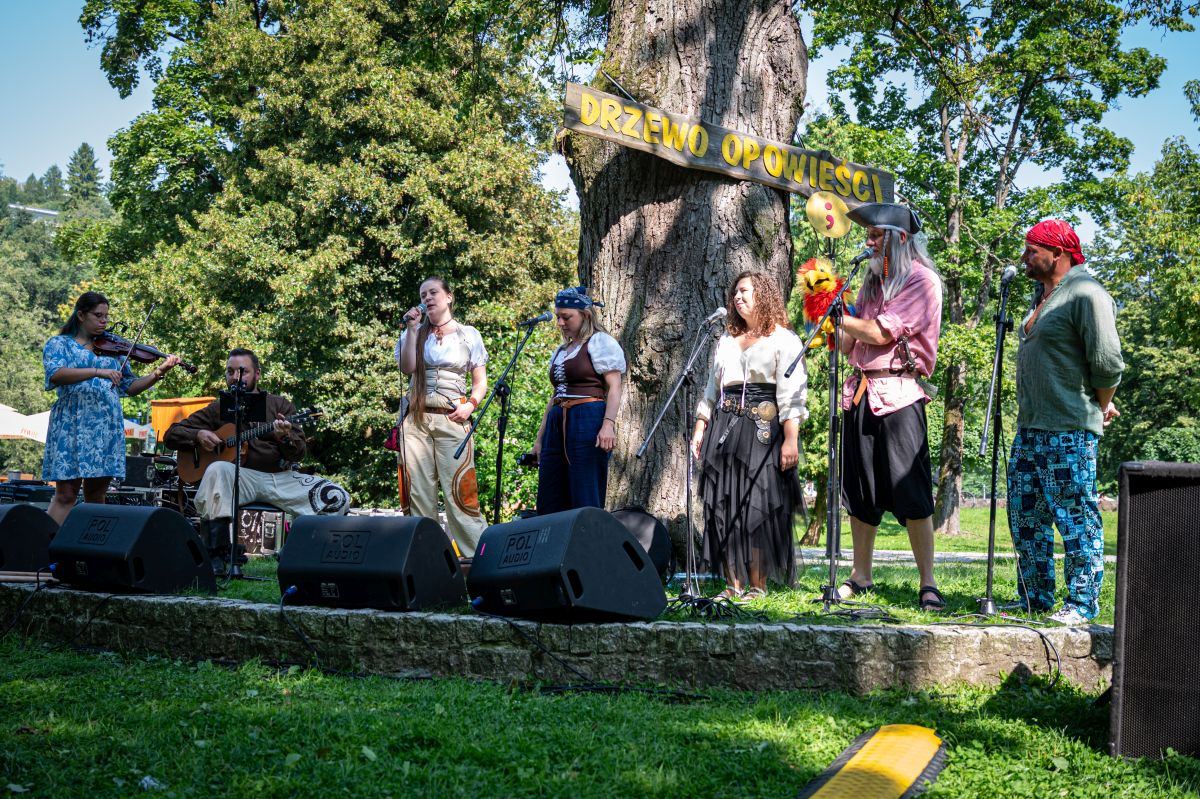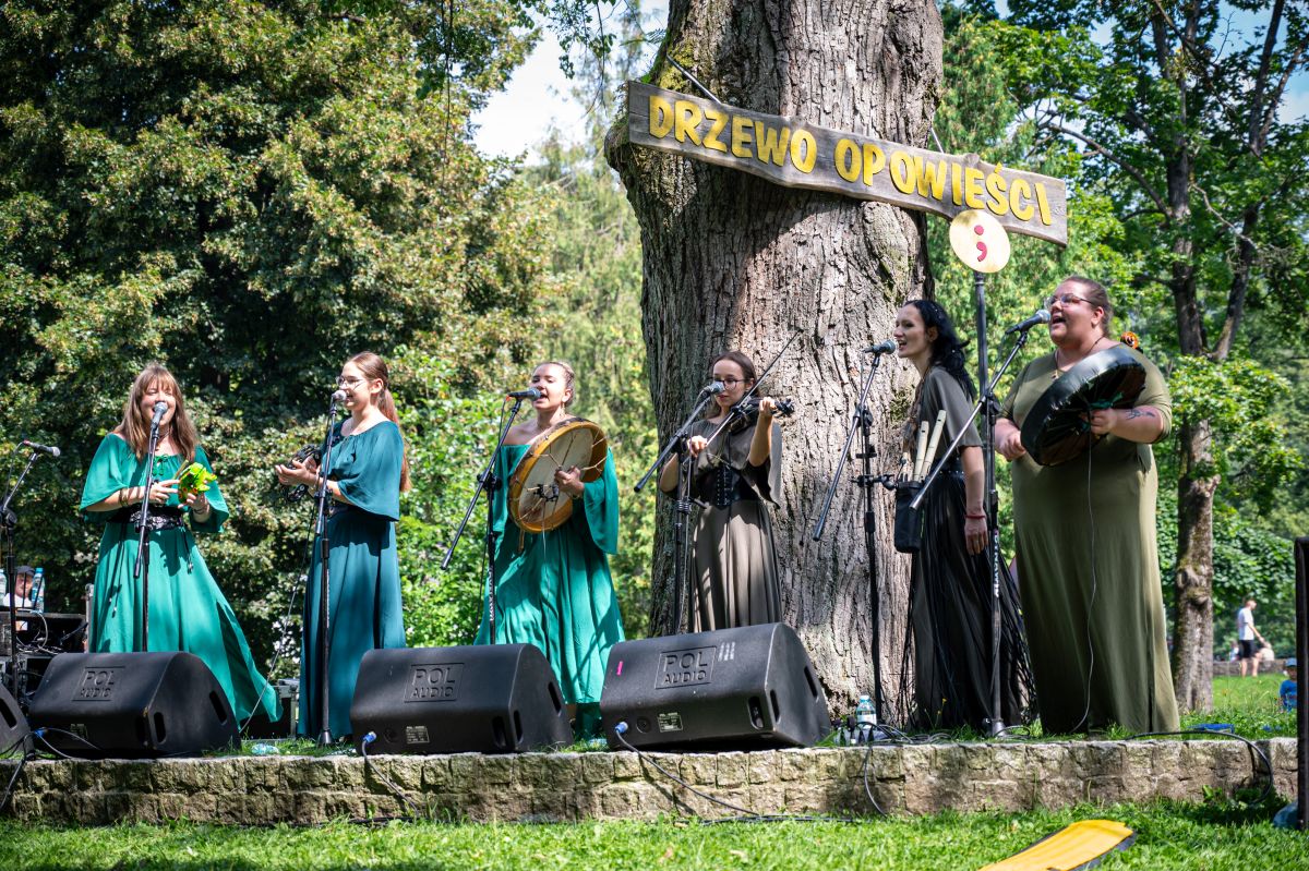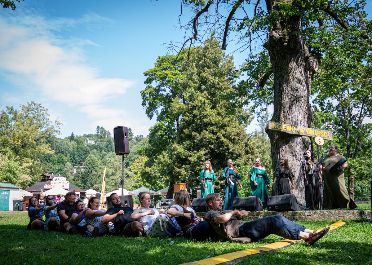 Pod Drzewem Opowieści rozbrzmiewały historie i muzyka. Poranne „Opowieści STELA” rozgrzały publiczność do dalszych spotkań – spektaklu familijnego w wykonaniu CALINECZKI , a chwilę później przestrzeń wypełnił koncert białego śpiewu w wykonaniu zespołu