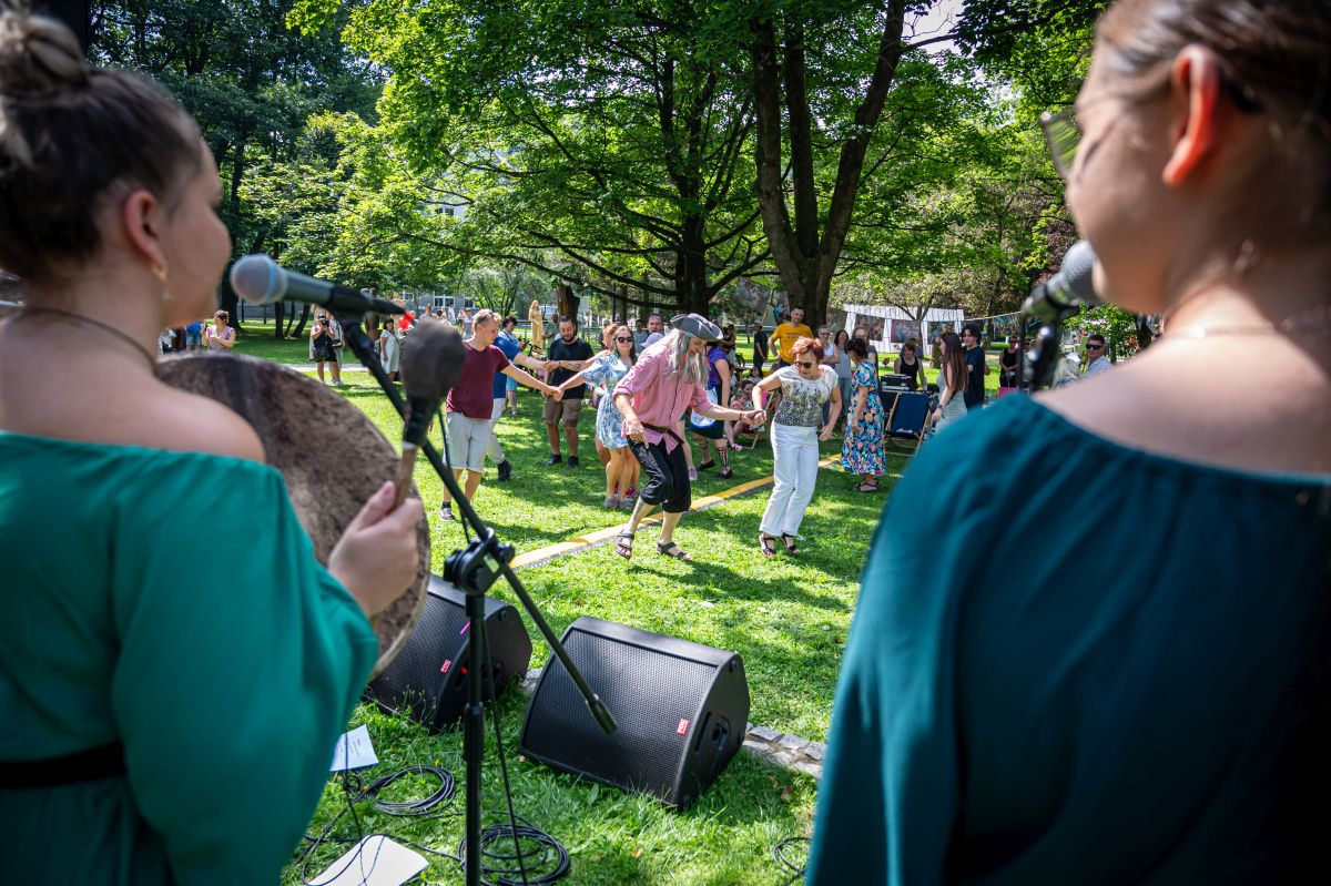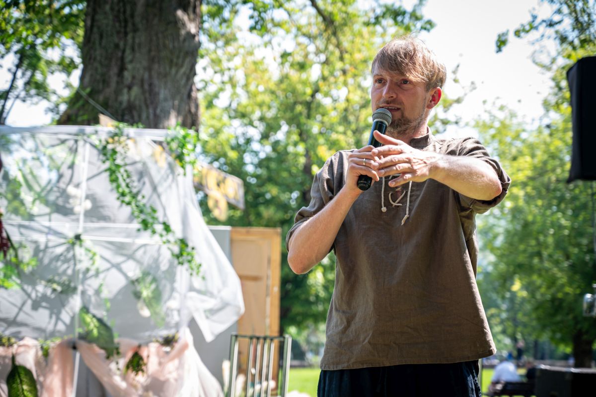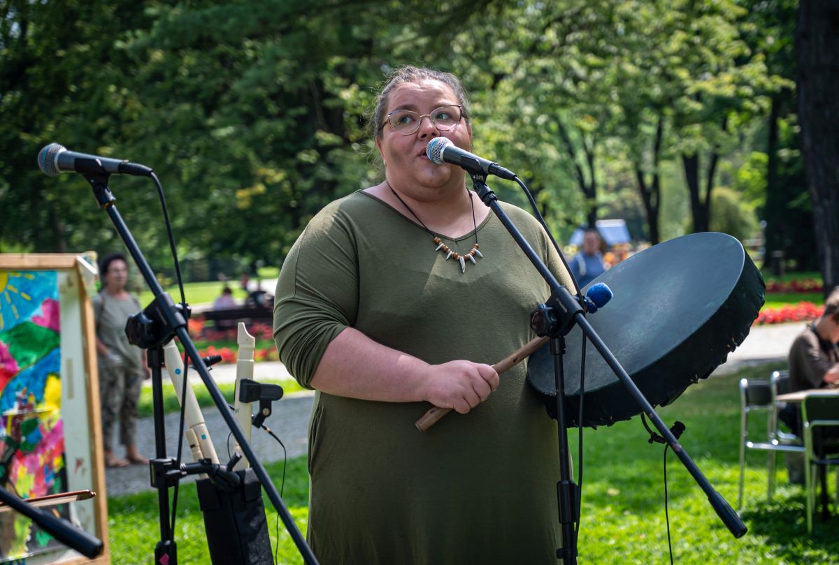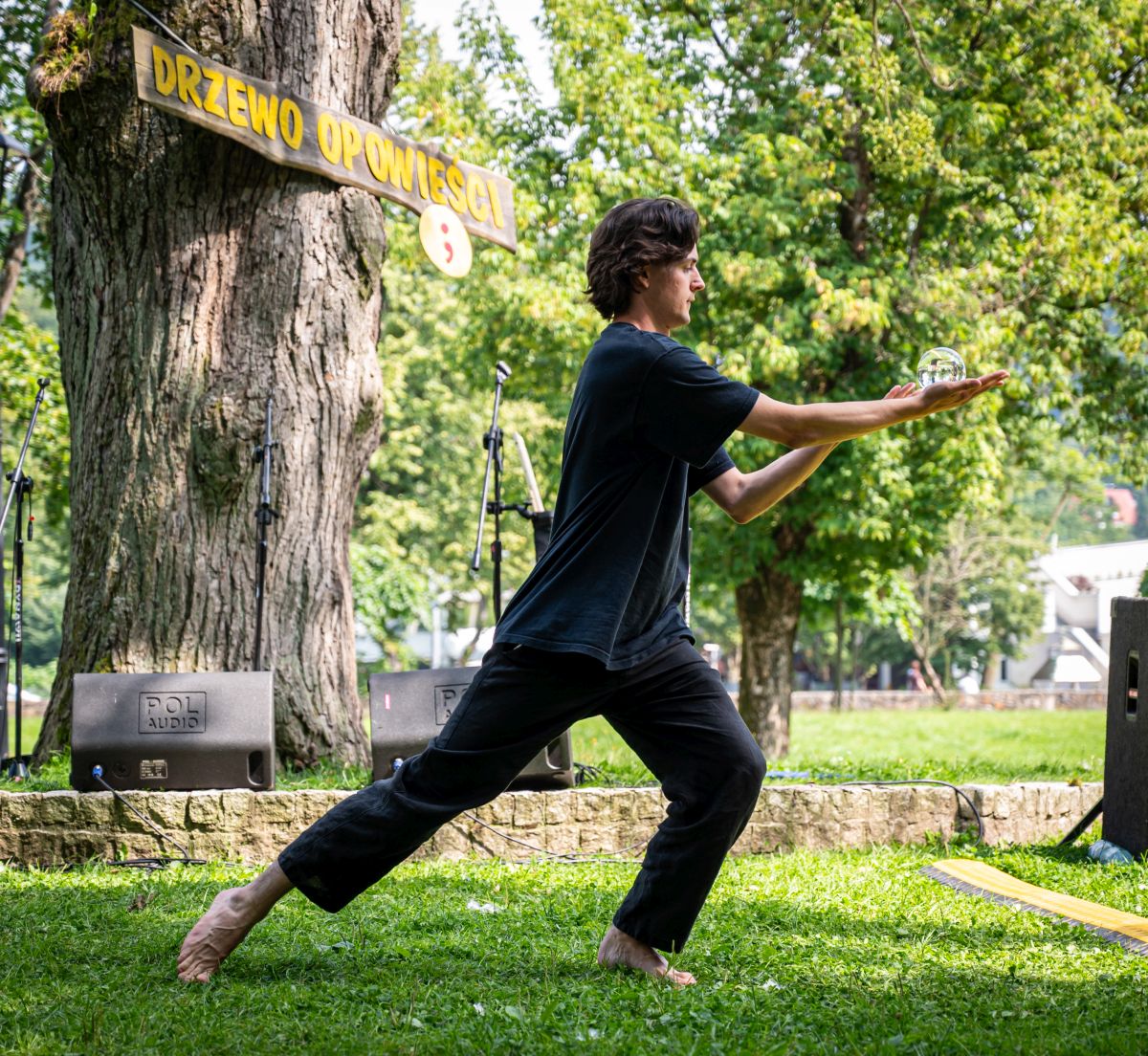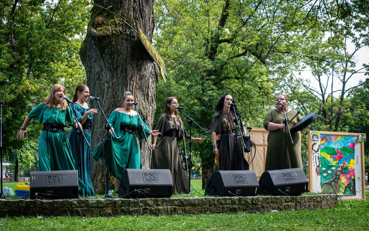 Pod Drzewem Opowieści rozbrzmiewały historie i muzyka. Poranne „Opowieści STELA” rozgrzały publiczność do dalszych spotkań – spektaklu familijnego w wykonaniu CALINECZKI , a chwilę później przestrzeń wypełnił koncert białego śpiewu w wykonaniu zespołu